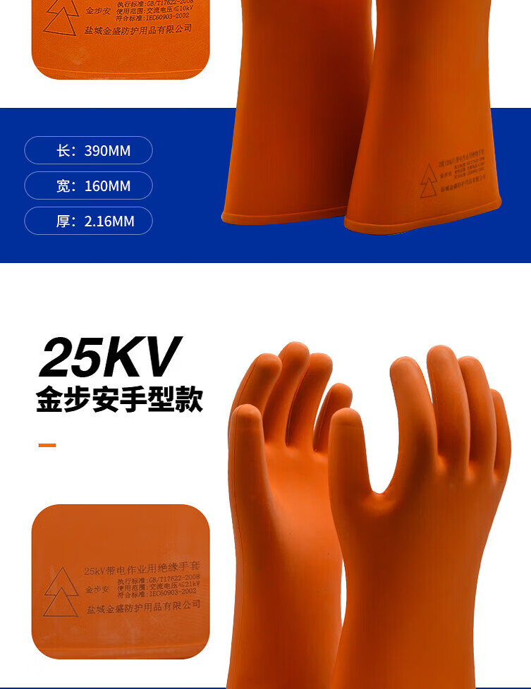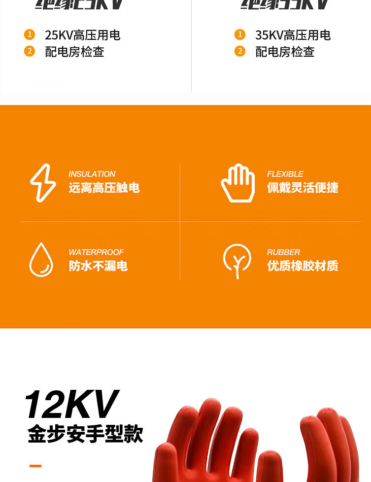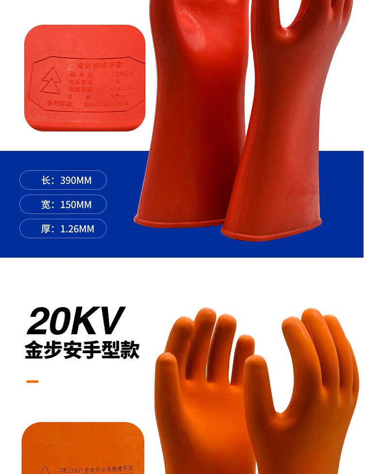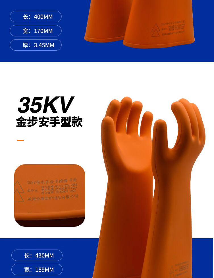 Jinbuan 12kv/20kv/25kv/35kv high voltage insulated gloves, live operation, rubber gloves, 400V hand-shaped low voltage gloves, Jinbuan 1000v double-sided insulated gloves