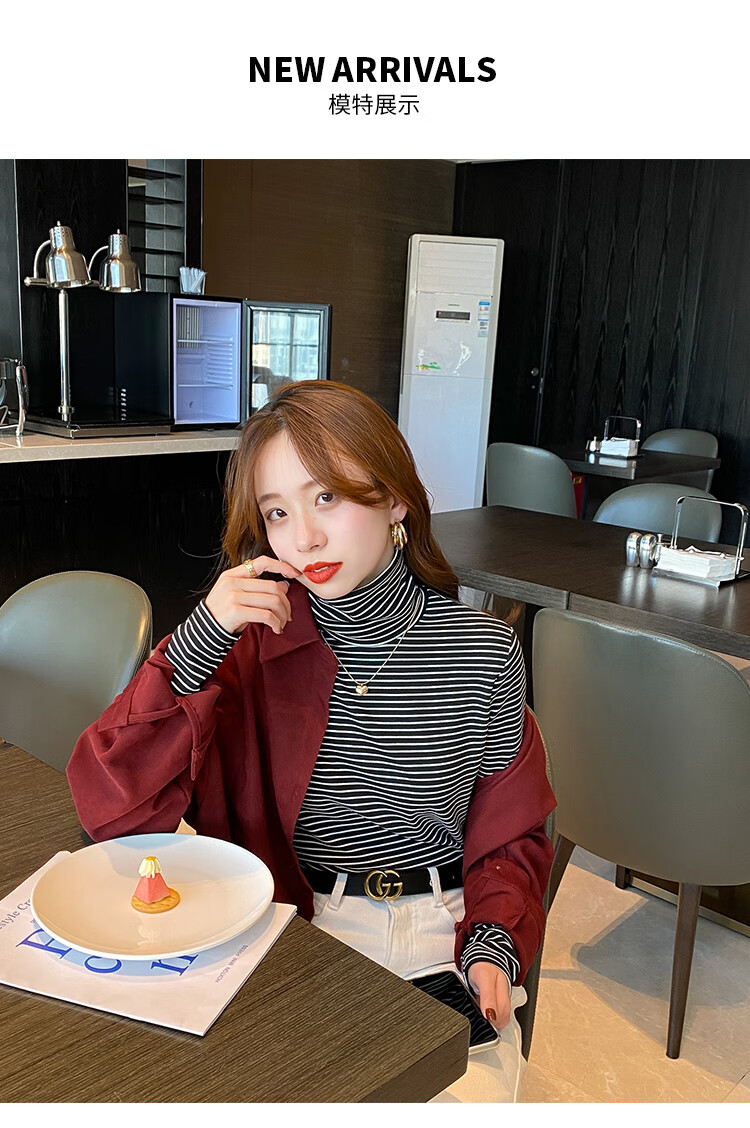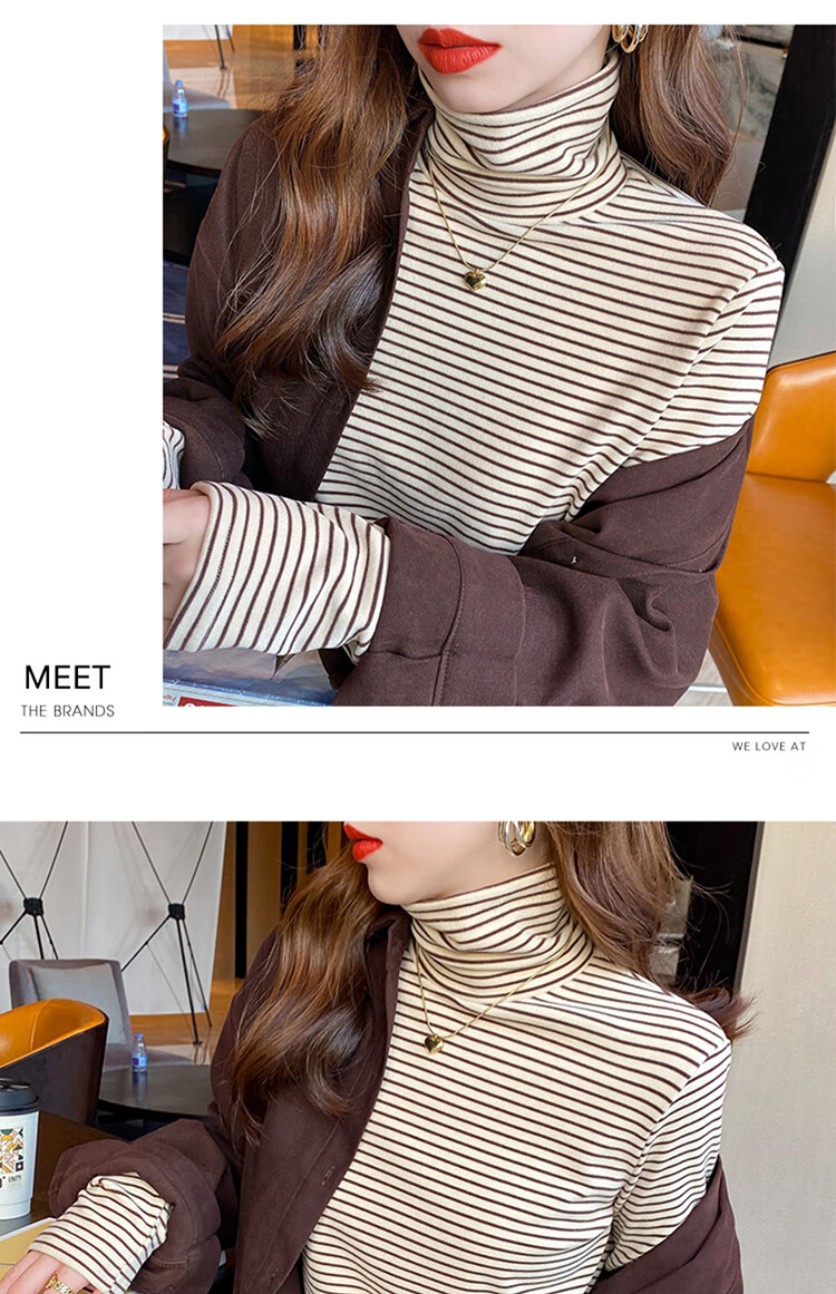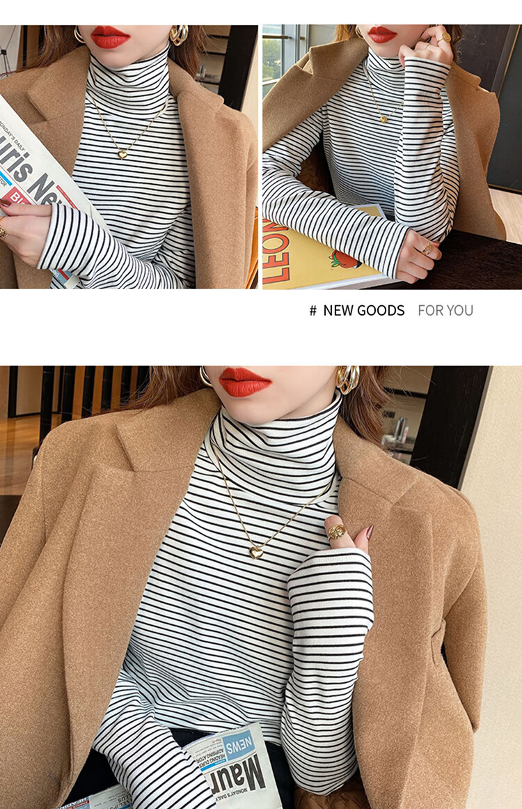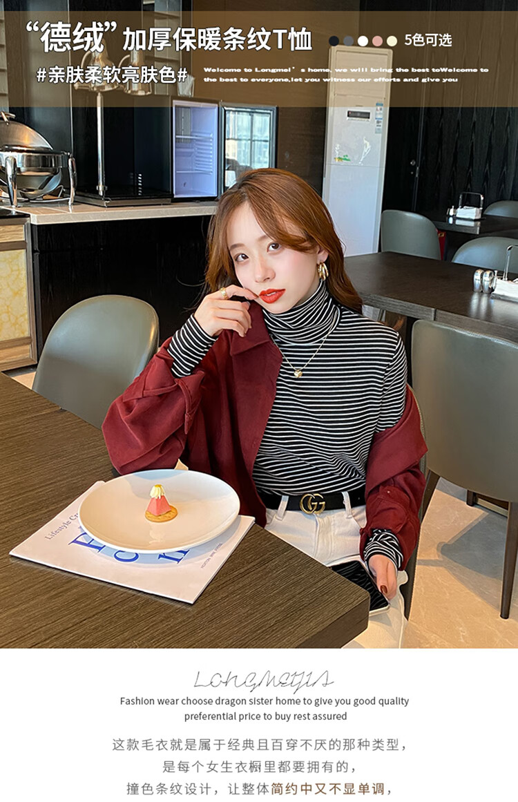 LangSha double-sided German velvet turtleneck bottoming shirt for women autumn and winter 2025 new velvet thickened striped long-sleeved T-shirt warm tops apricot S