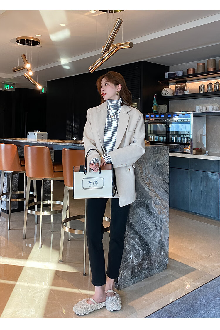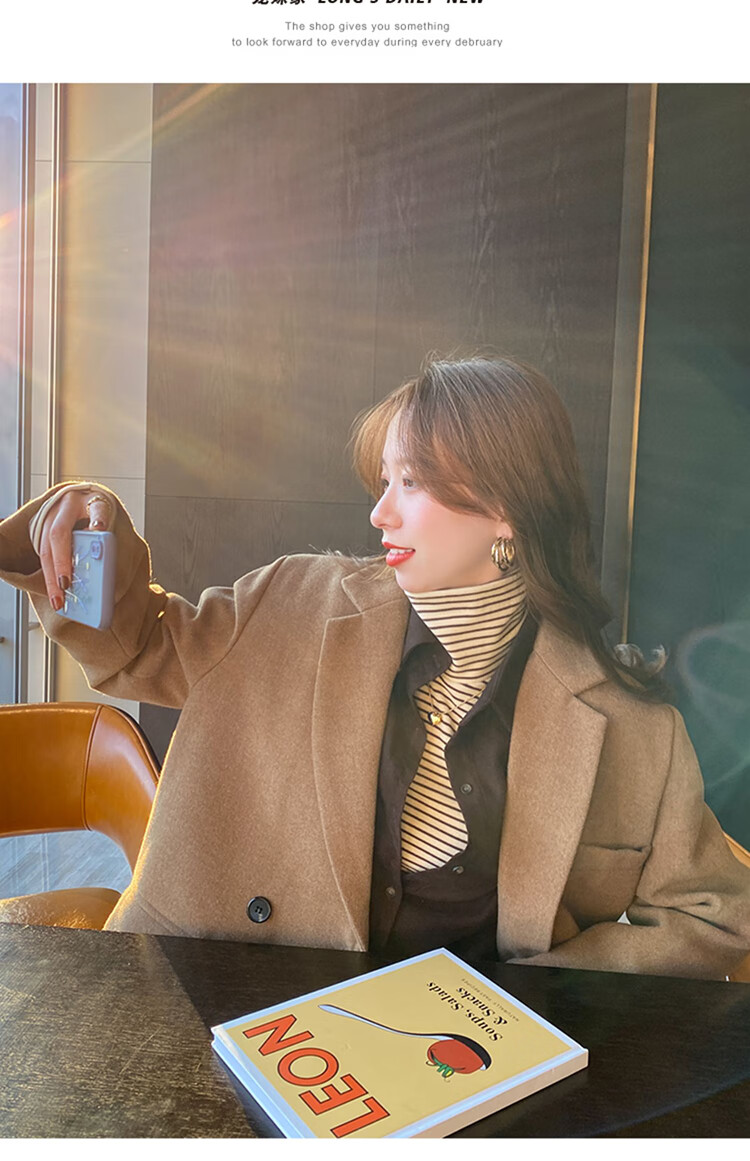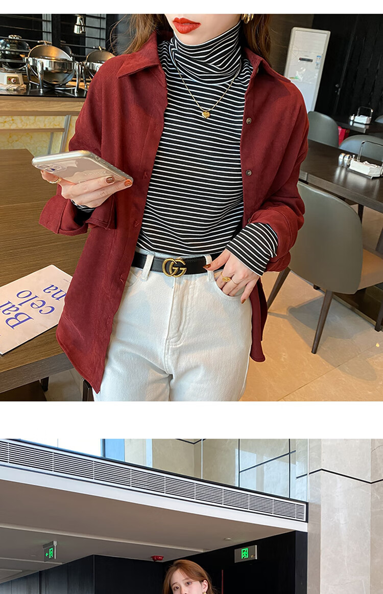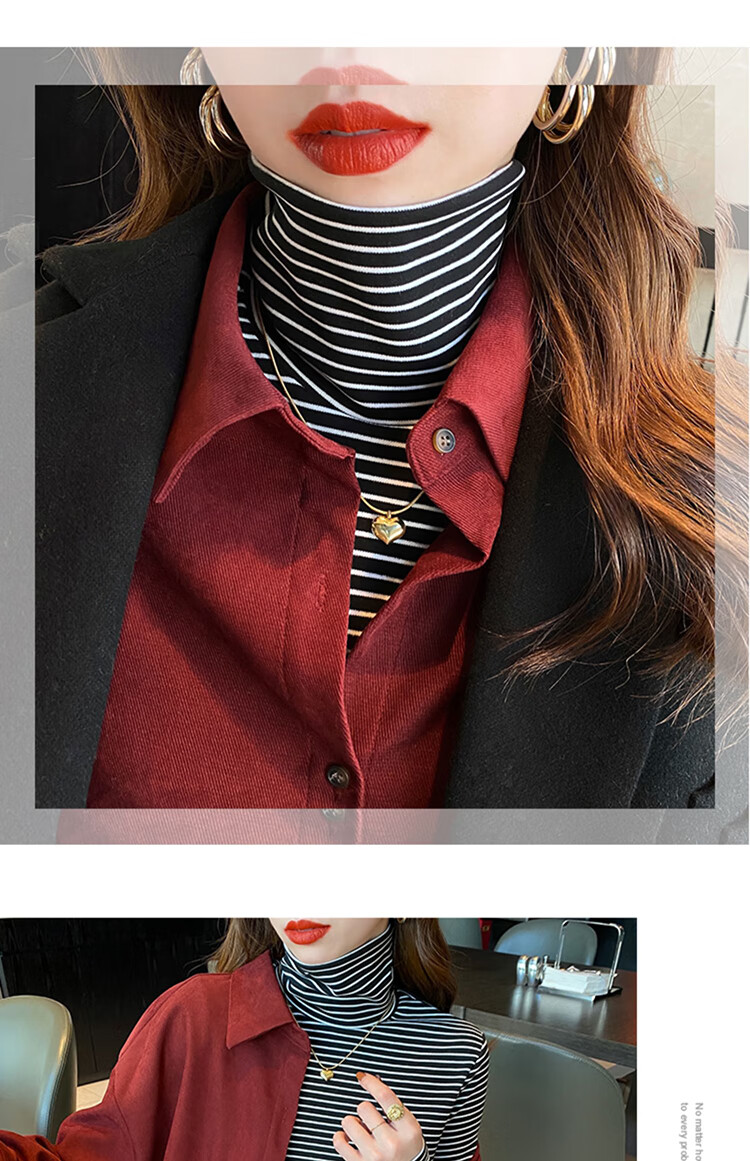 LangSha double-sided German velvet turtleneck bottoming shirt for women autumn and winter 2025 new velvet thickened striped long-sleeved T-shirt warm tops apricot S