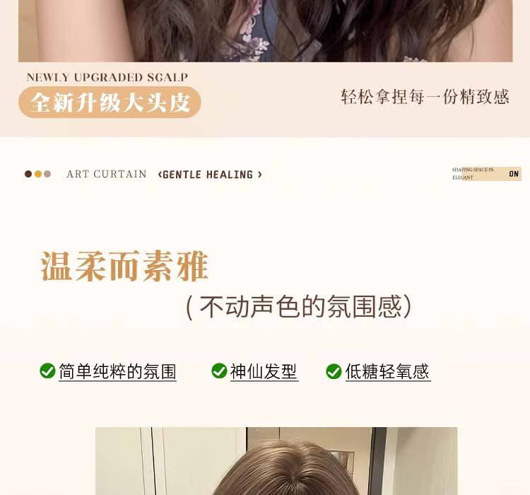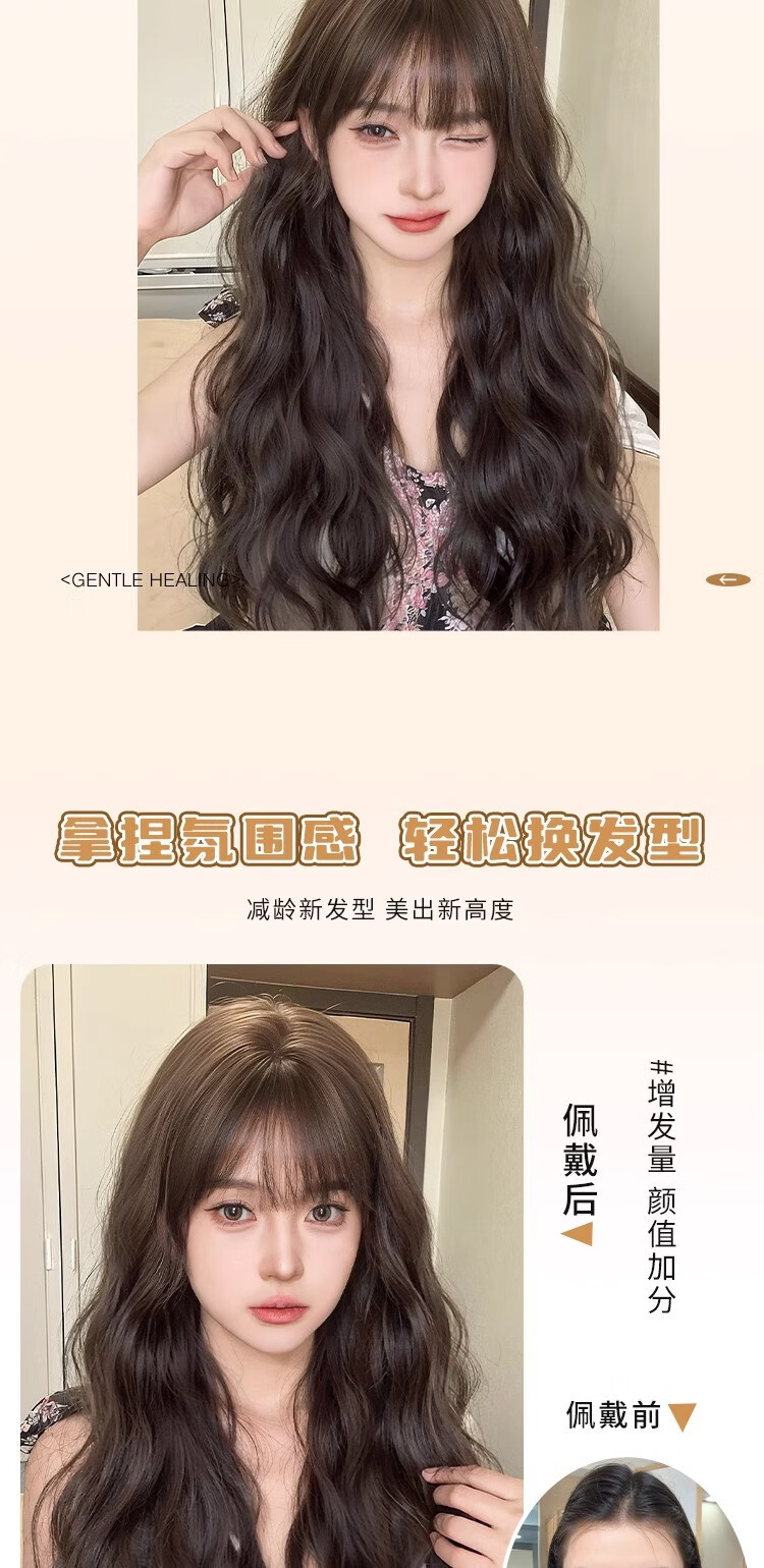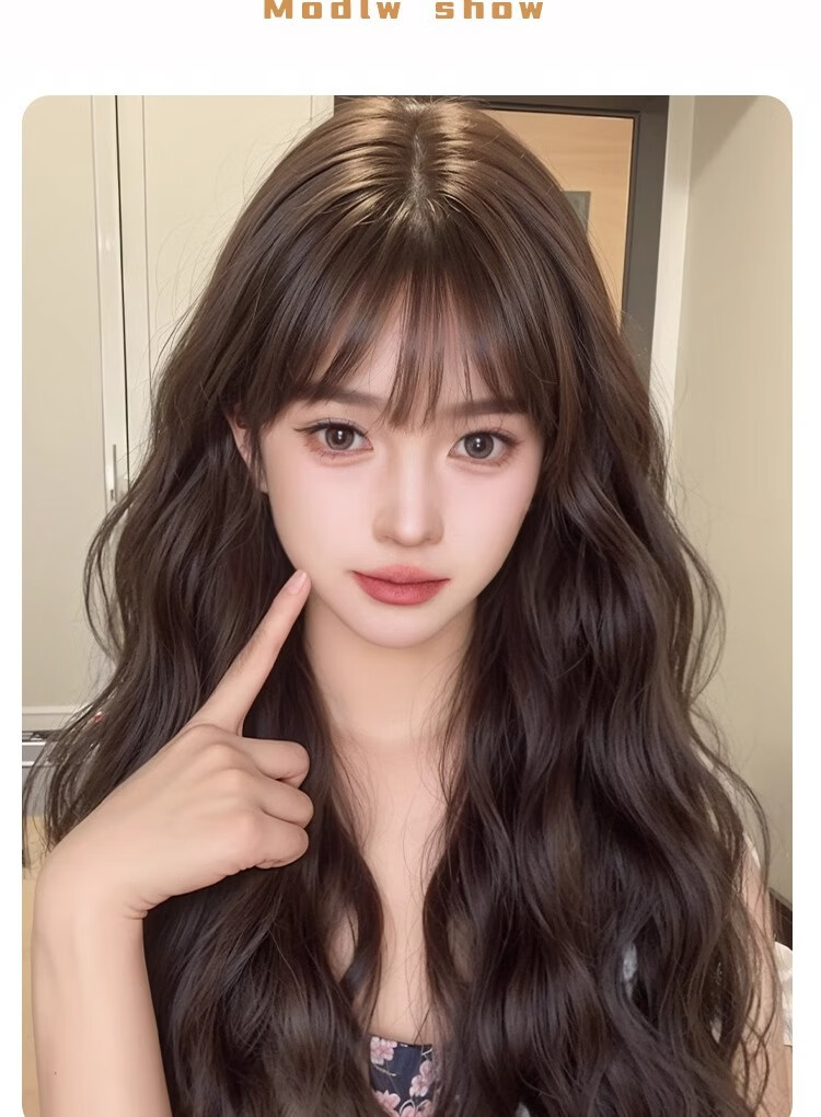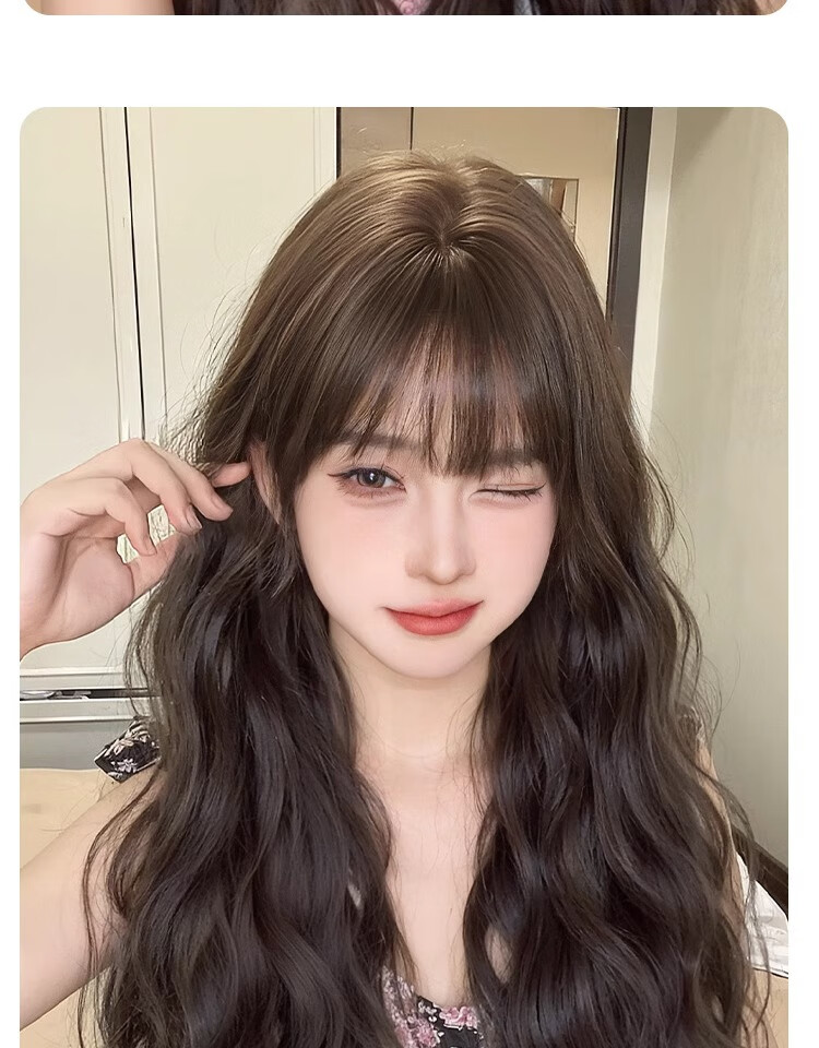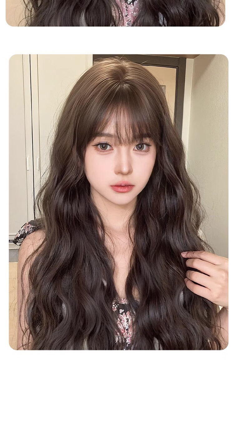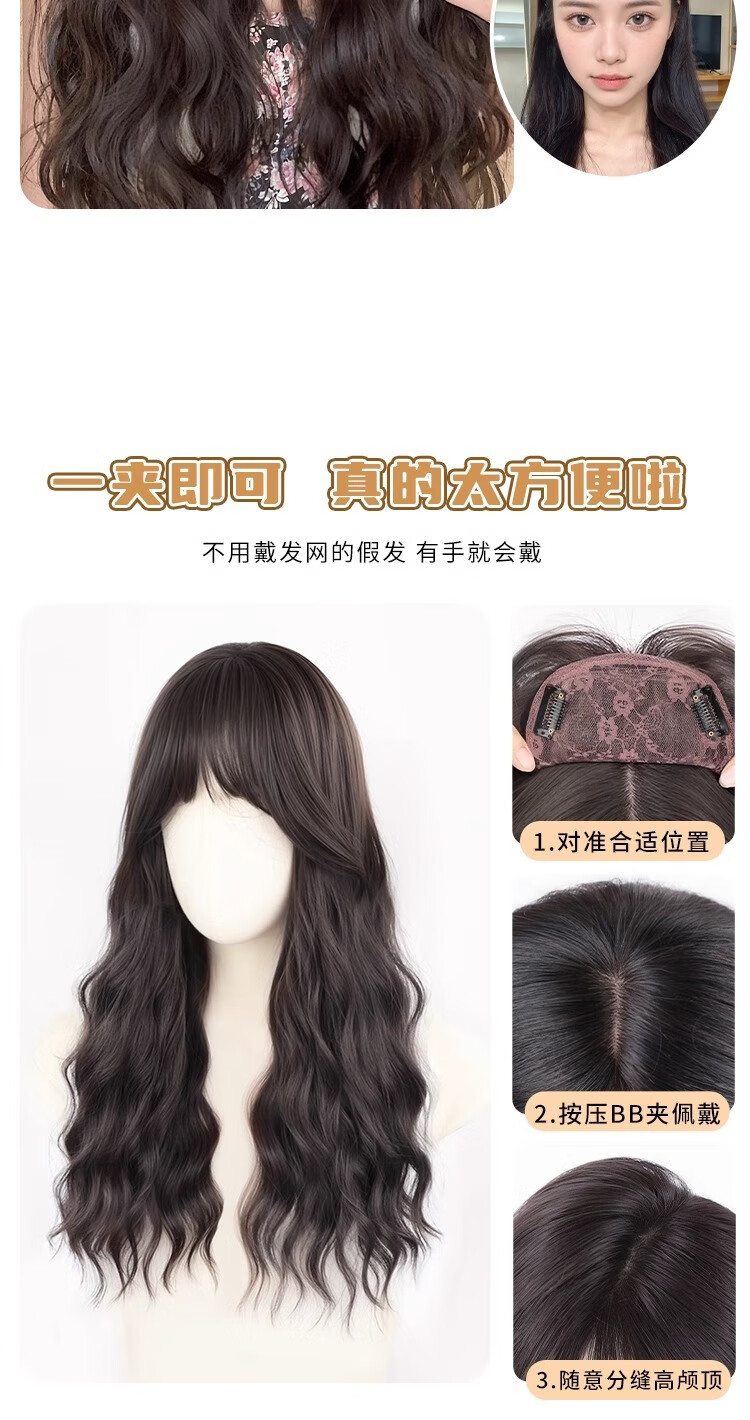 Yupinjia wig for women, no need to wear hair net, full head cover, water rippled curly hair, head replacement piece to increase hair volume, simulated hair, light and traceless, brown and black (net bottom black or red), long hair 55cm