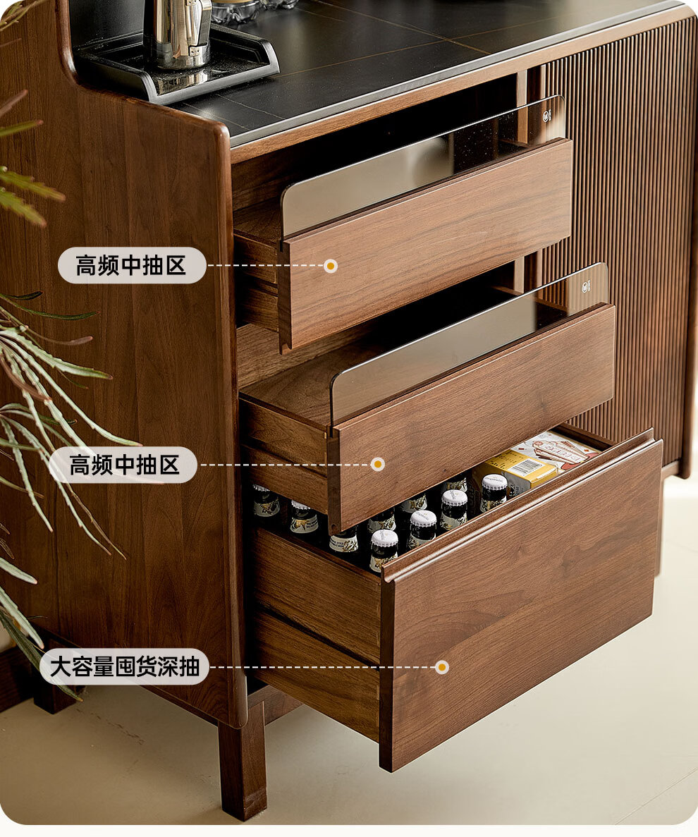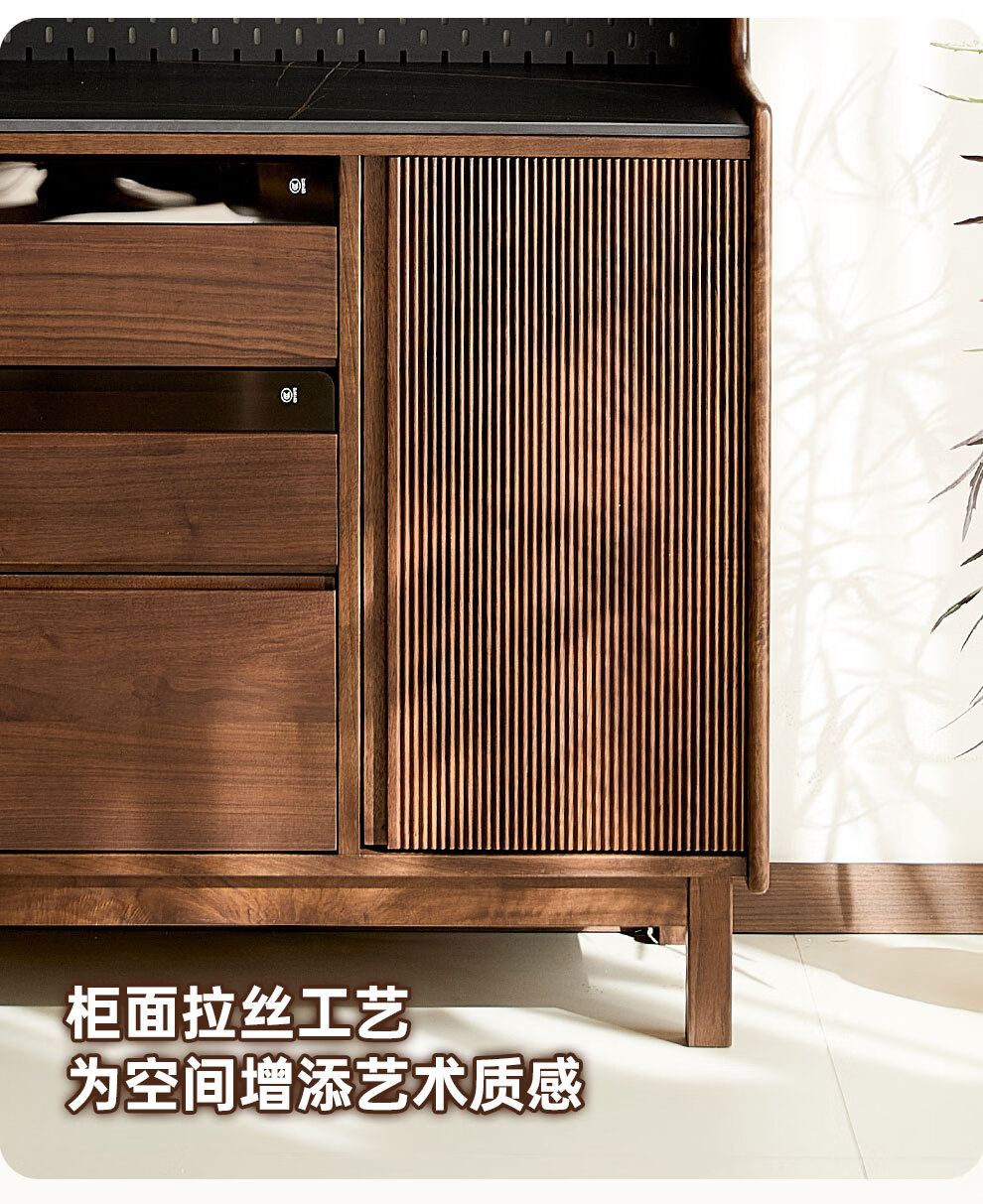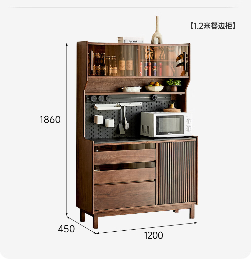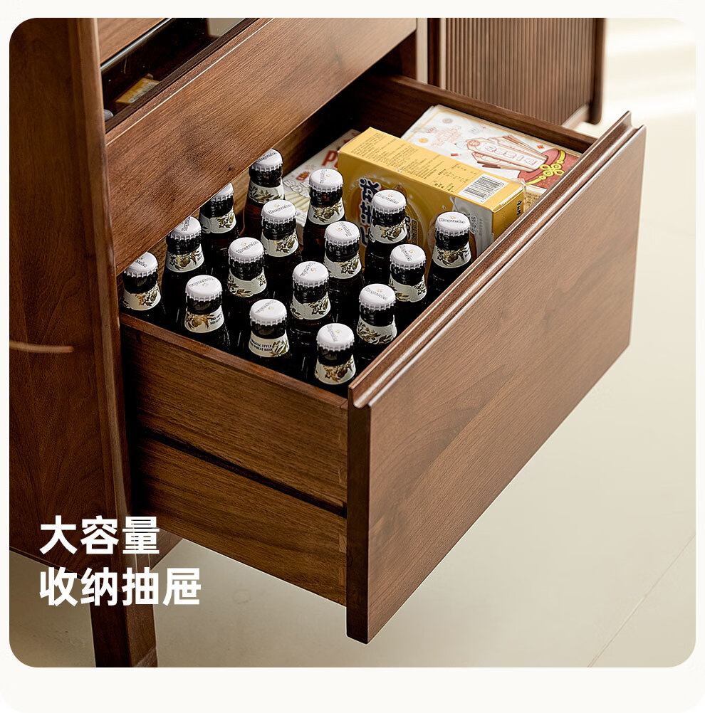 Zhidian North American black walnut sideboard small apartment high cabinet integrated wall solid wood narrow tea cabinet living room storage cabinet 1.5m rock slab e-commerce model
