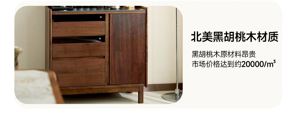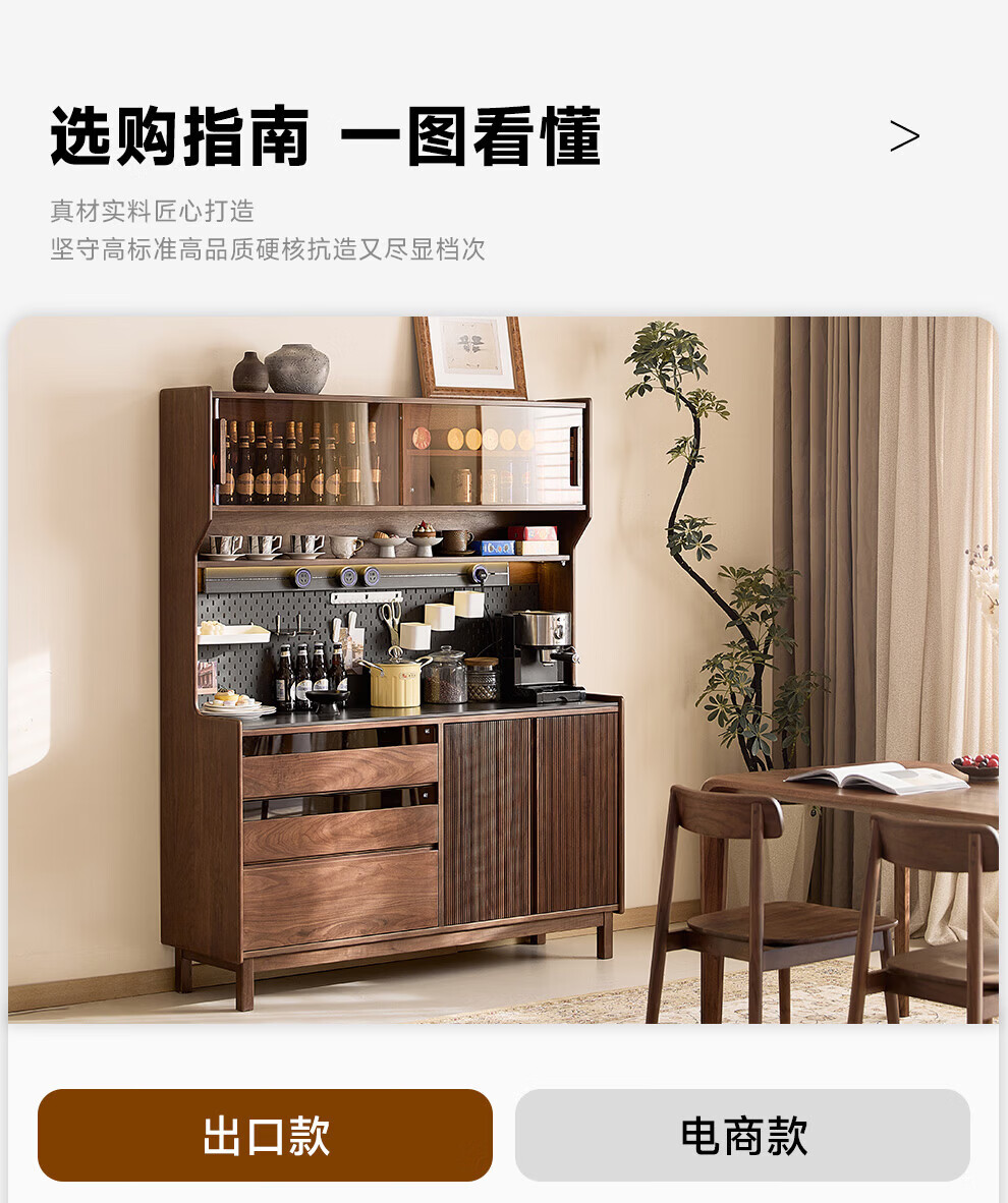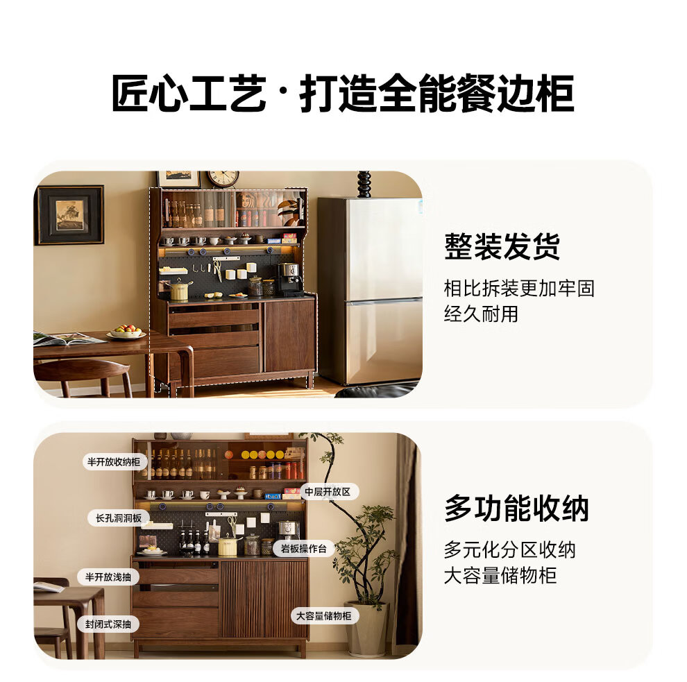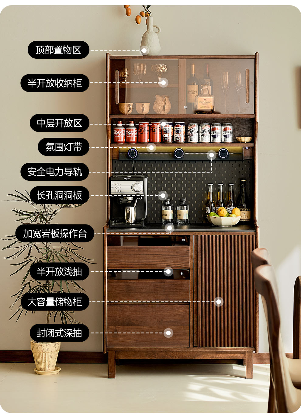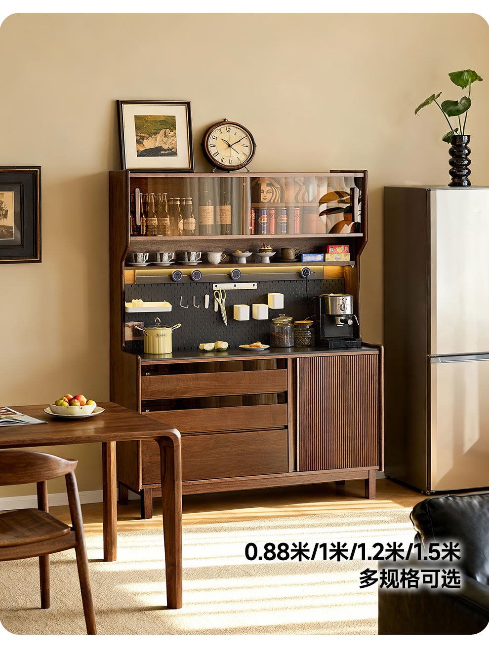 Zhidian North American black walnut sideboard small apartment high cabinet integrated wall solid wood narrow tea cabinet living room storage cabinet 1.5m rock slab e-commerce model