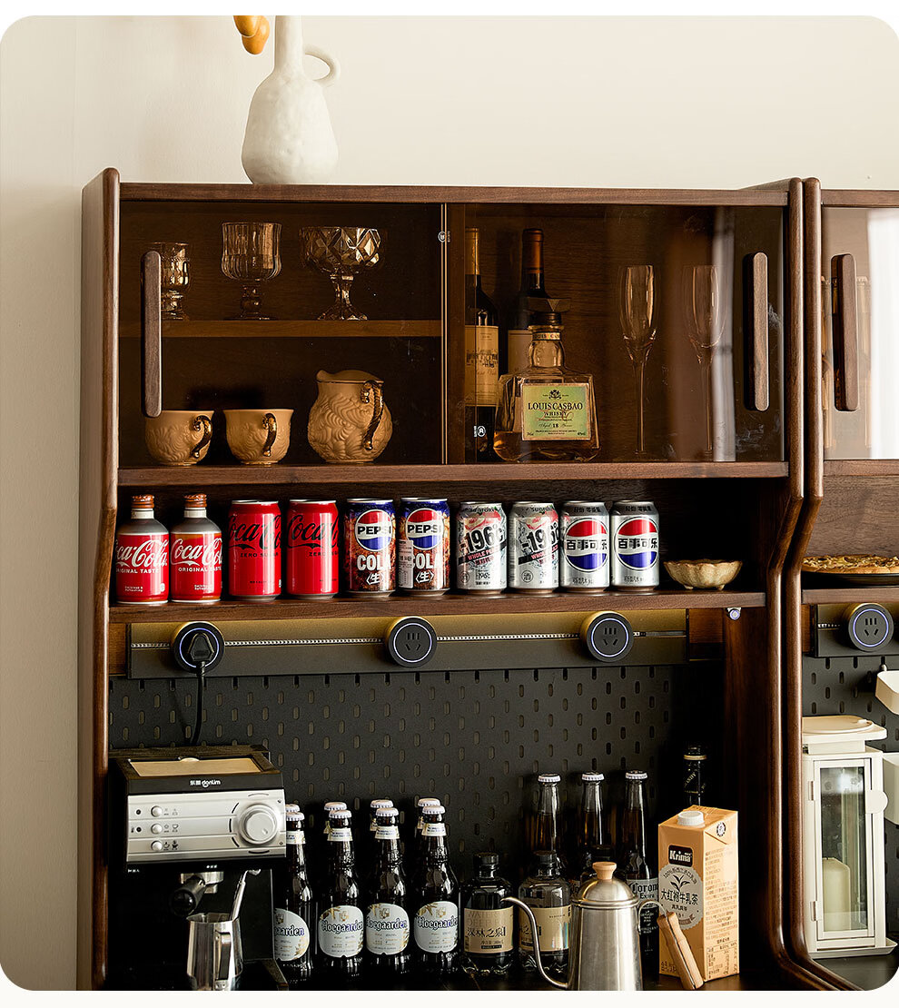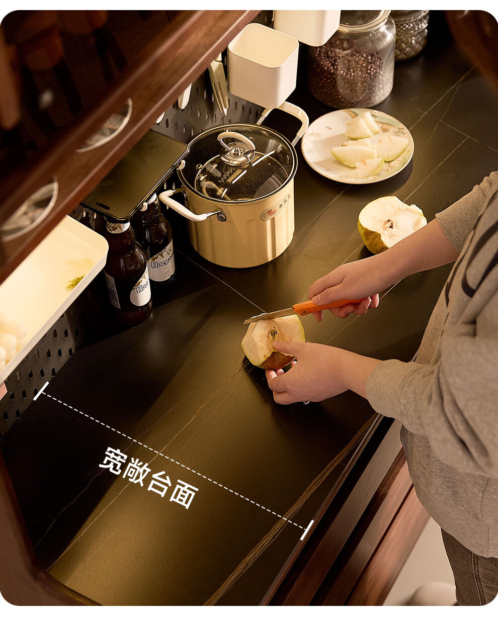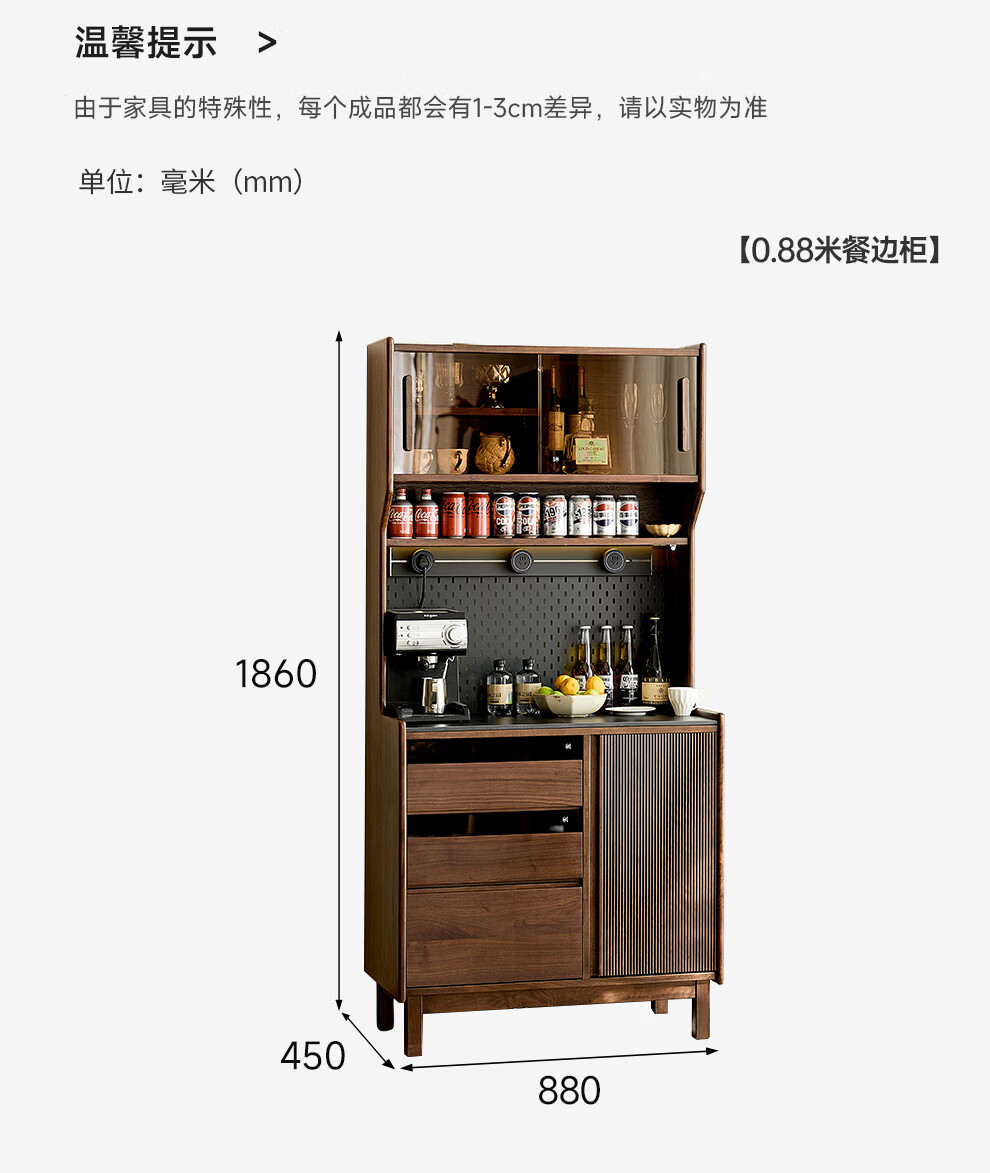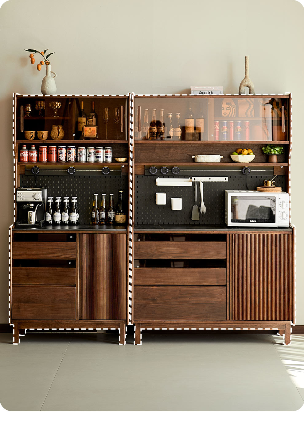 Zhidian North American black walnut sideboard small apartment high cabinet integrated wall solid wood narrow tea cabinet living room storage cabinet 1.5m rock slab e-commerce model