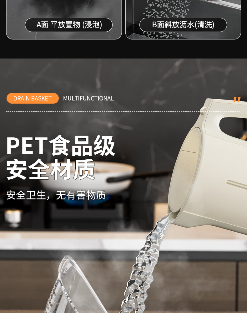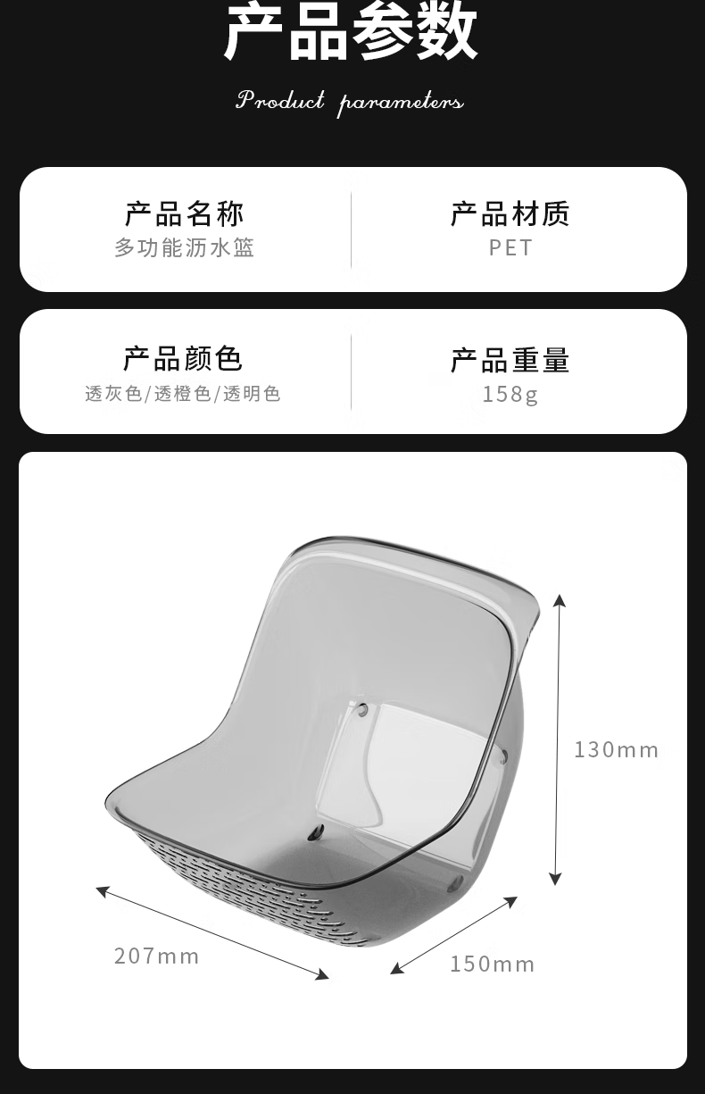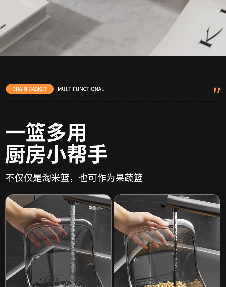 Harle Bear HA LE BEAR transparent multi-functional rice washing and draining basket kitchen basin new fruit washing and draining basin resistant to high temperature blanching basin transparent color 1 pack