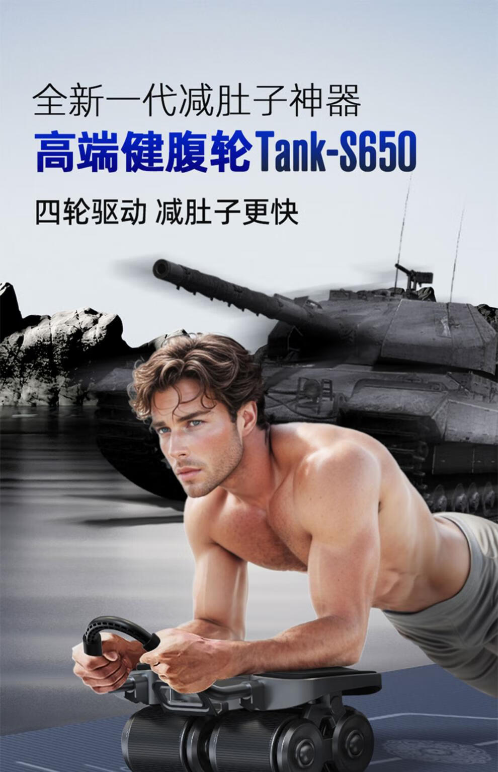 Qiao Senjian Abdominal Wheel Four-Wheel New Automatic Rebound Abdominal Crunches for Men and Women Fitness Abdominal Muscle Trainer Black TANK-S650 Abdominal Wheel + Belt