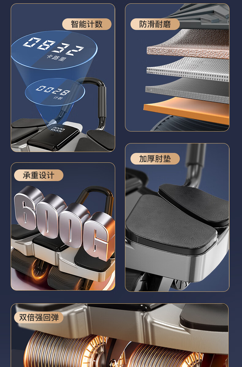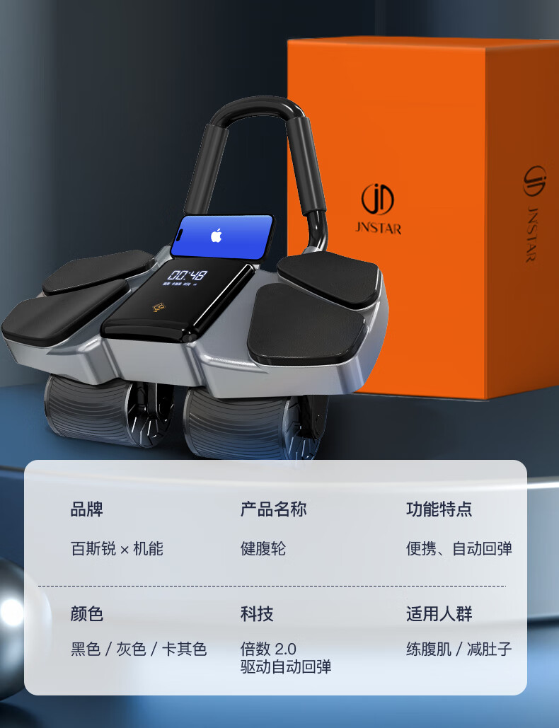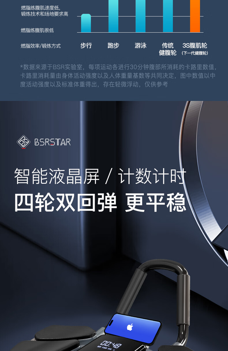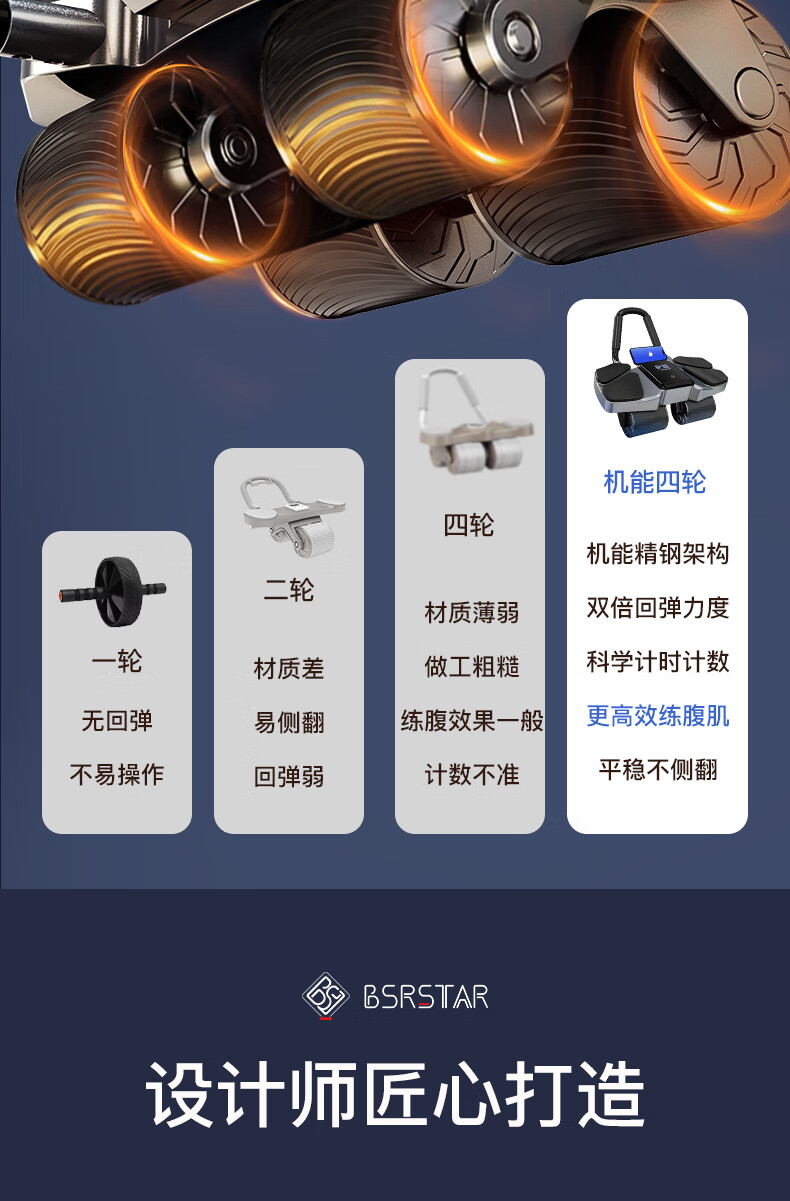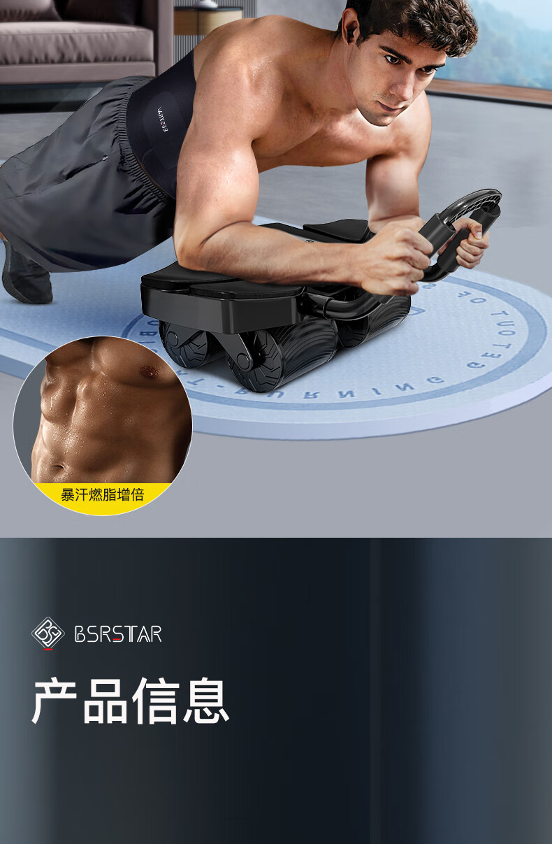 BSR Abdominal Wheel 2024 New Automatic Rebound Abdominal Muscle Magic Wheel Abdominal Training Device 2024 Upgraded Black-Four-Wheel Double Rebound Abdominal Wheel Free Kneeling Mat + Fat Burning