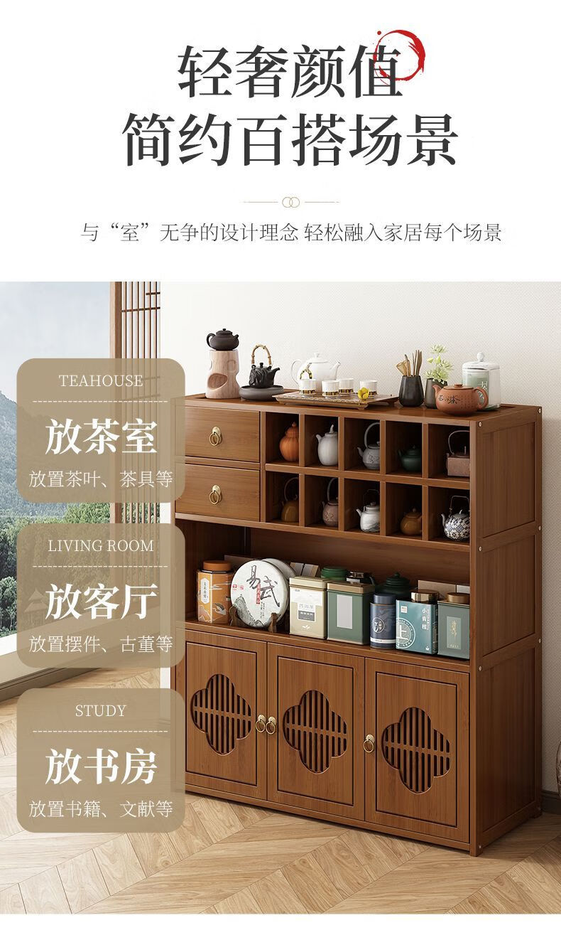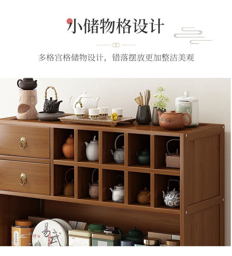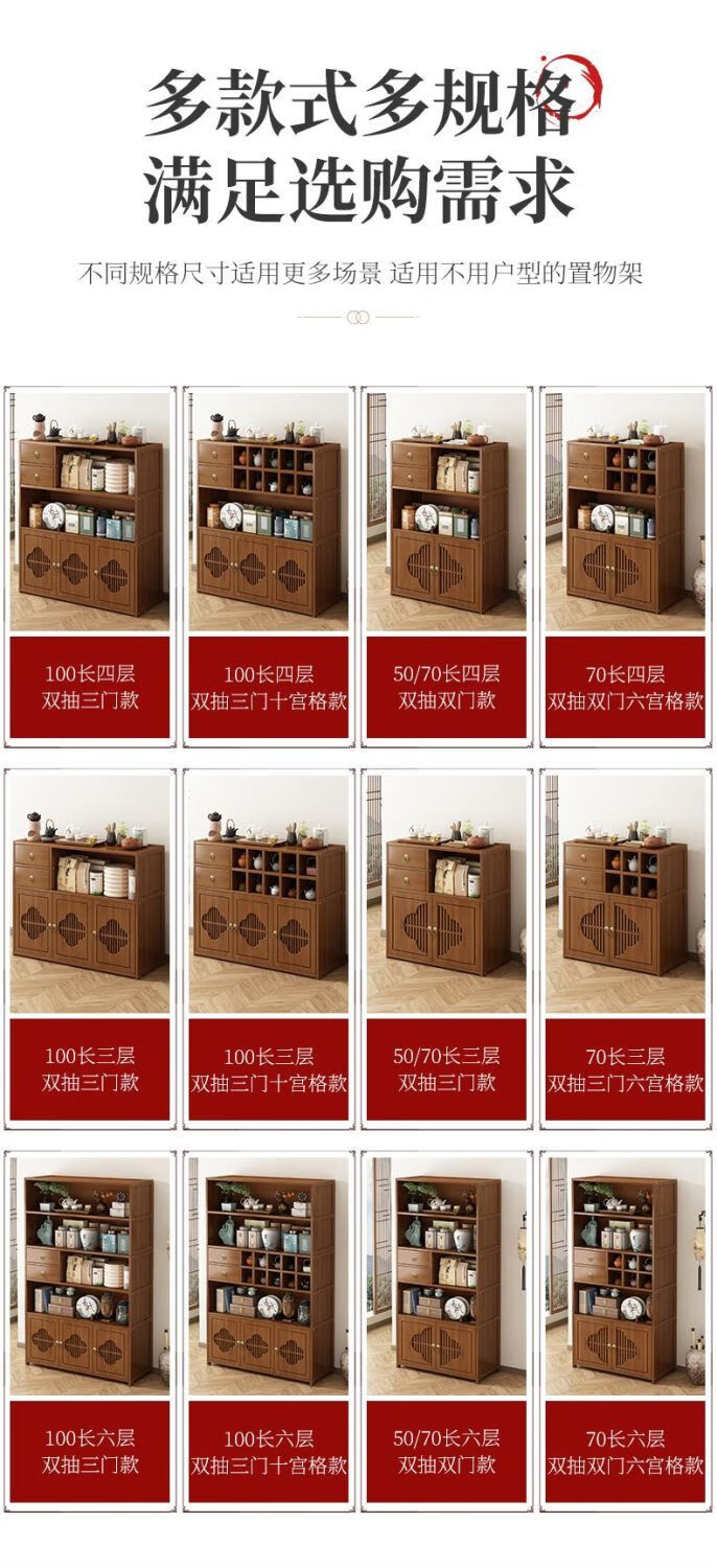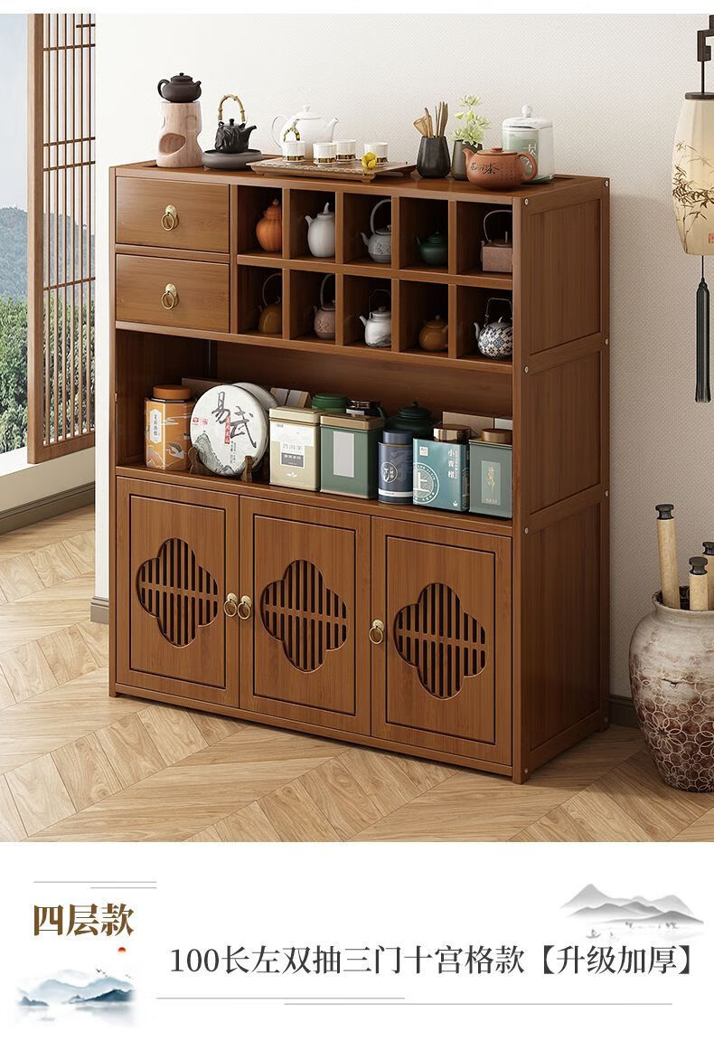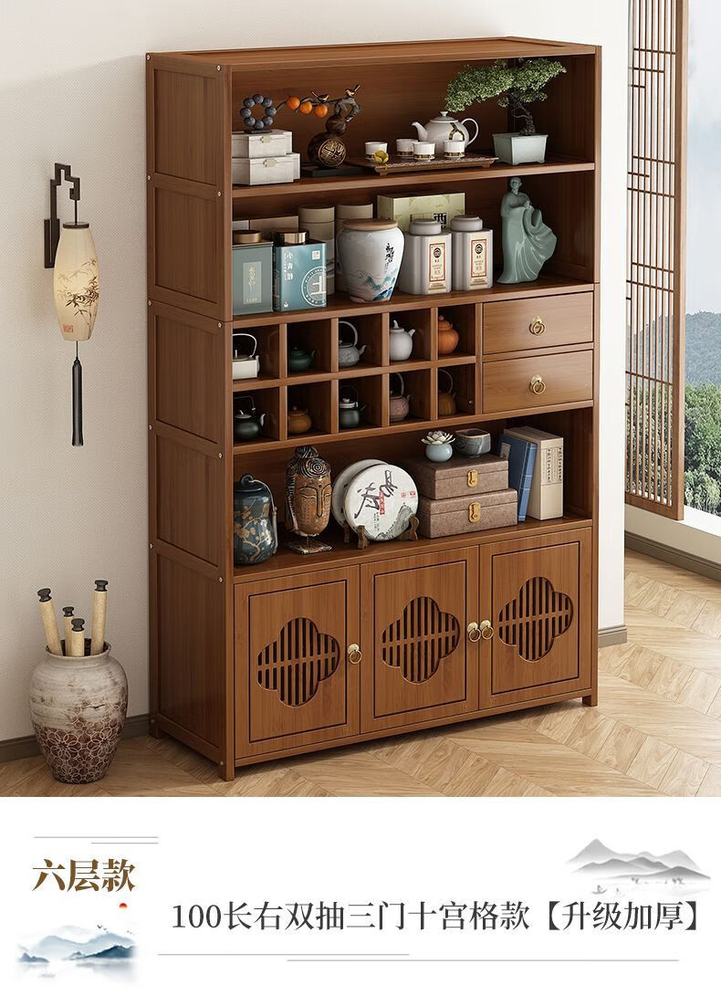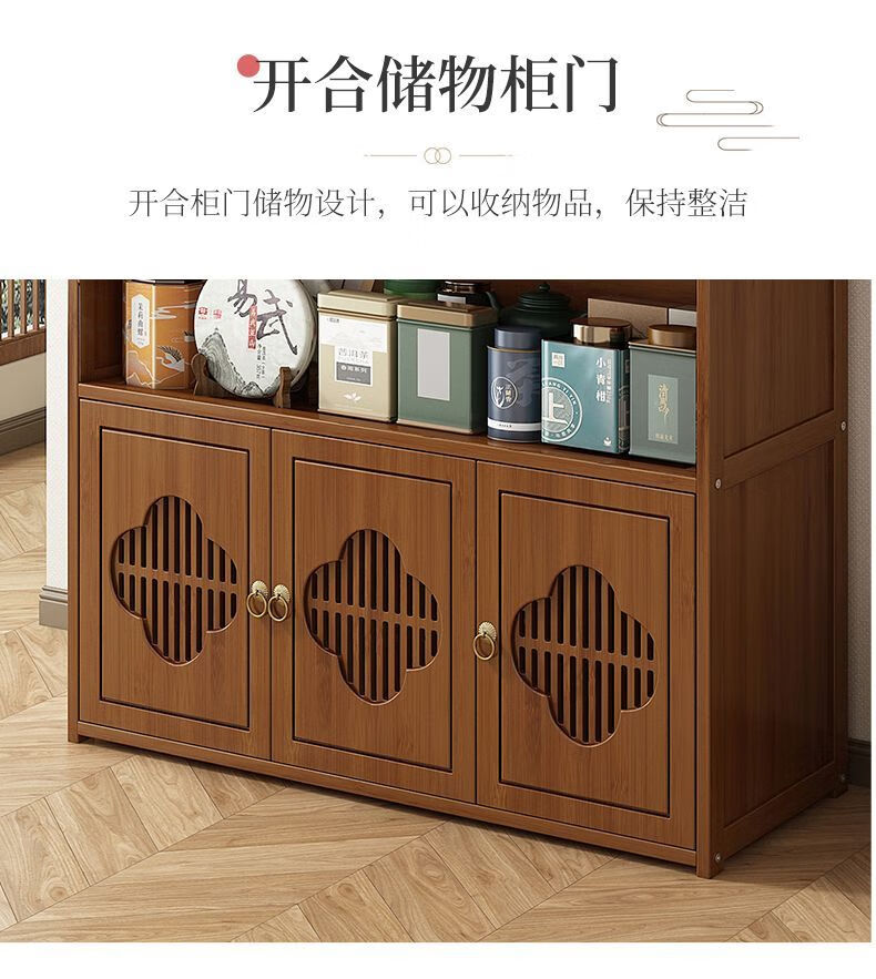 Jingci tea cabinet household tea room tea rack Bogu rack tea cabinet storage rack Chinese tea table table side cabinet tea set storage rack three layers long 50 left double drawer double door style thickened and reinforced