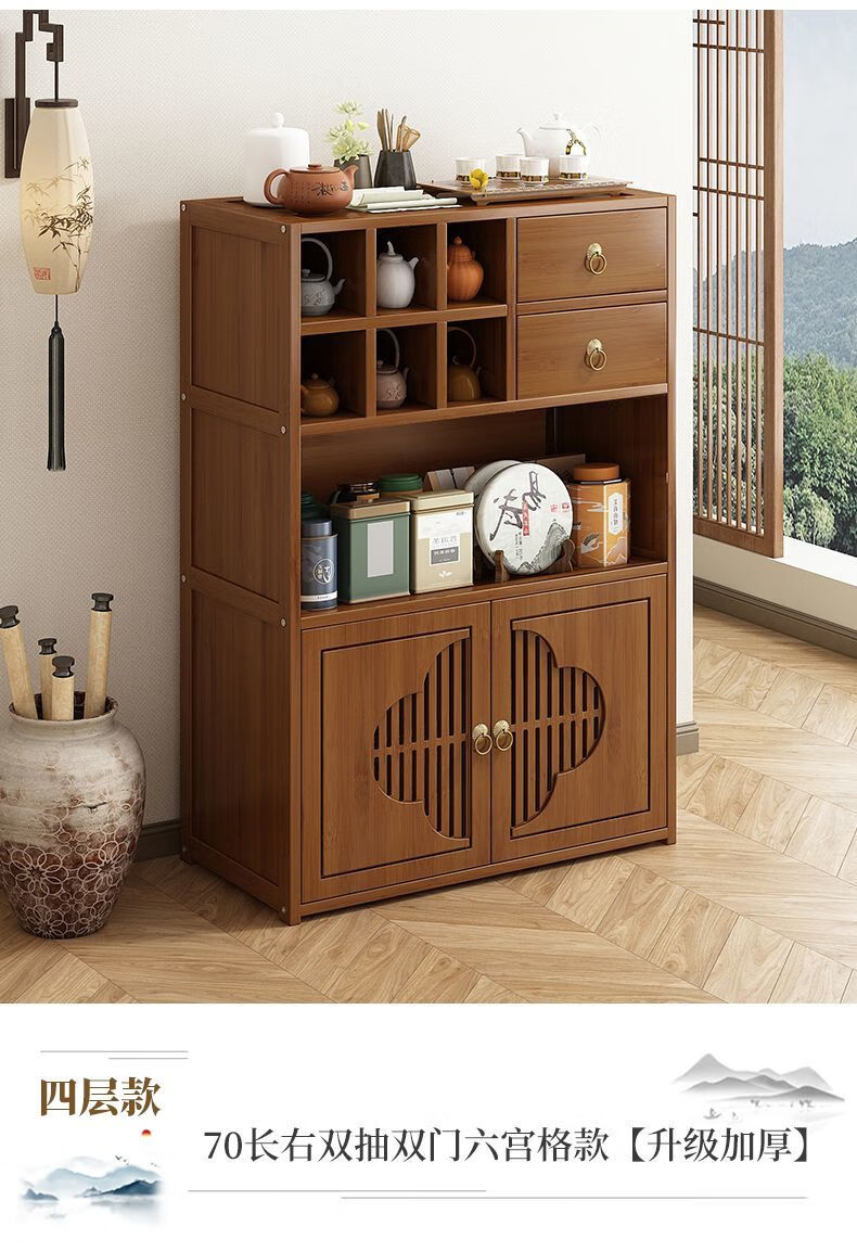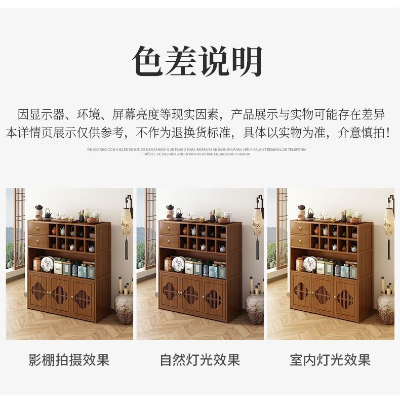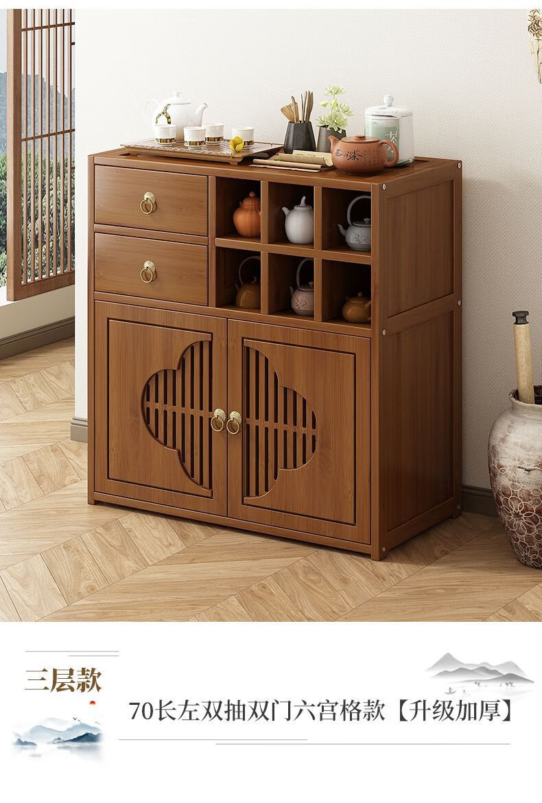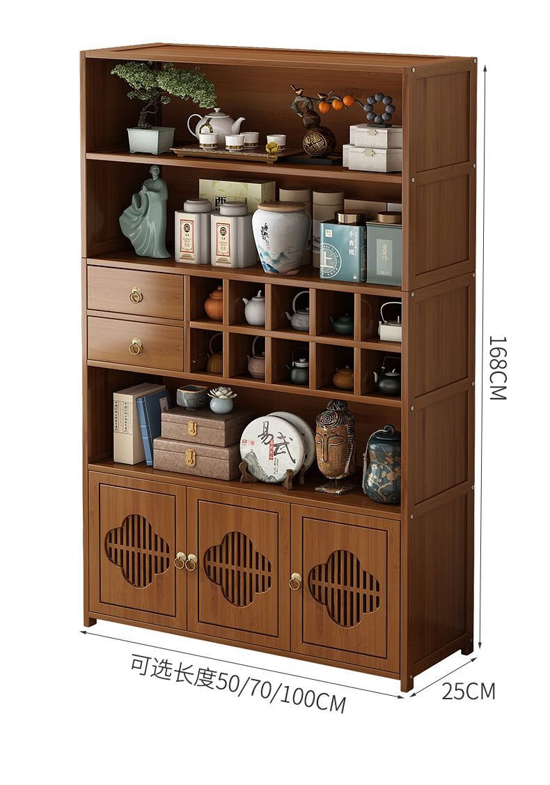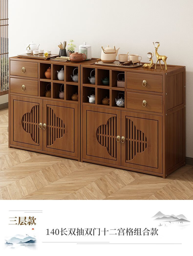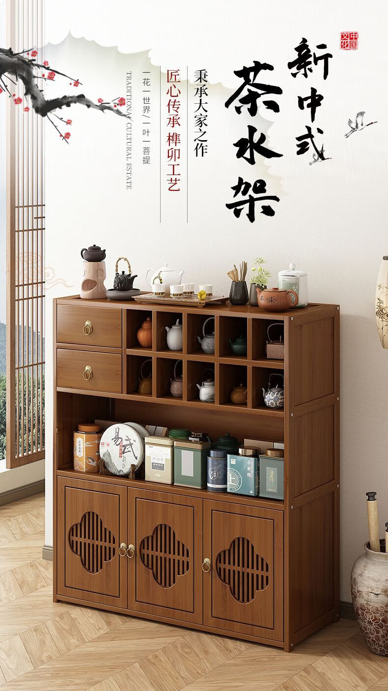 Jingci tea cabinet household tea room tea rack Bogu rack tea cabinet storage rack Chinese tea table table side cabinet tea set storage rack three layers long 50 left double drawer double door style thickened and reinforced