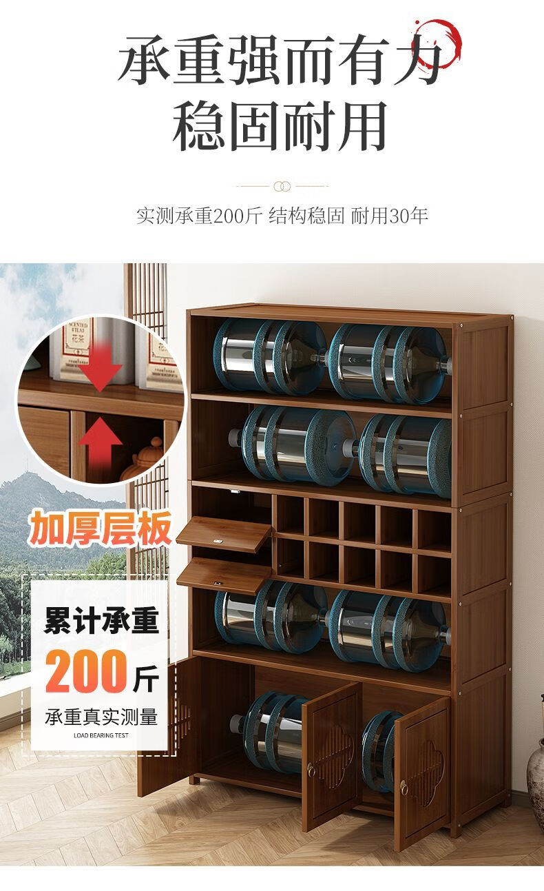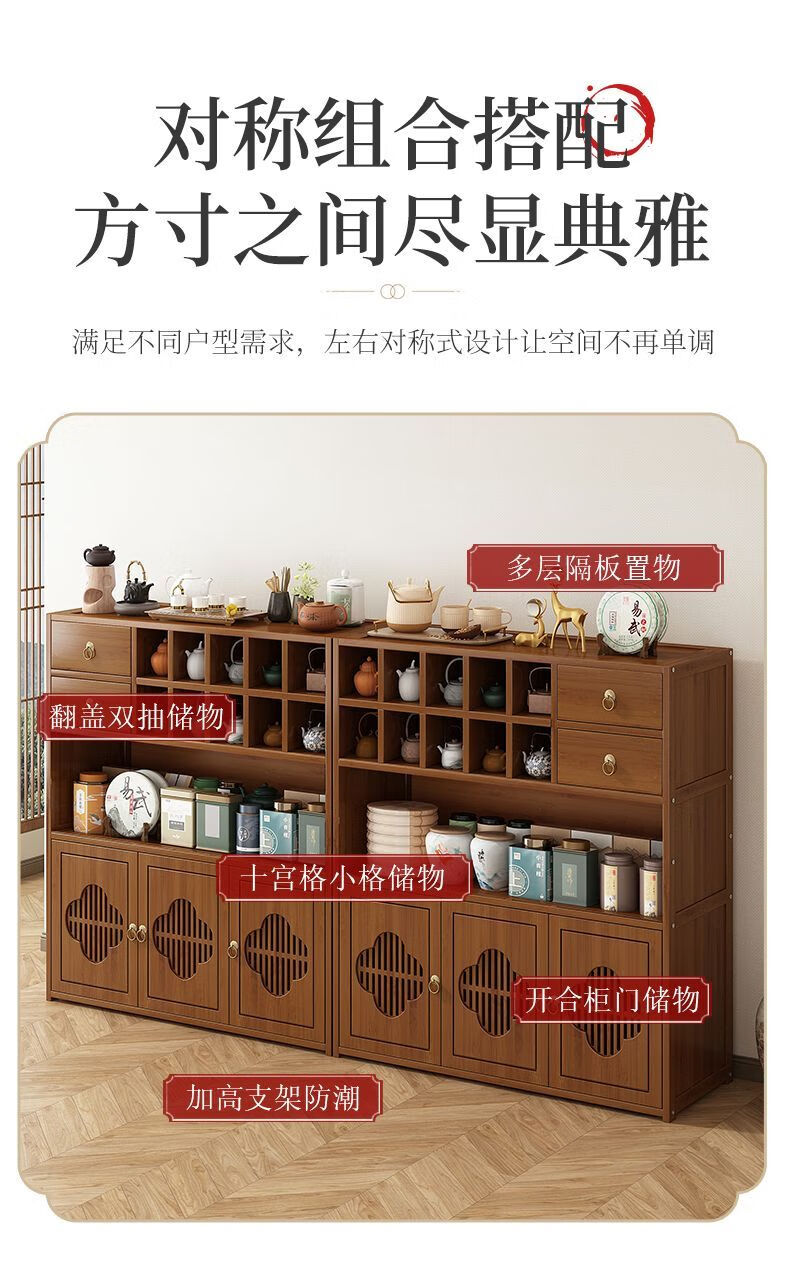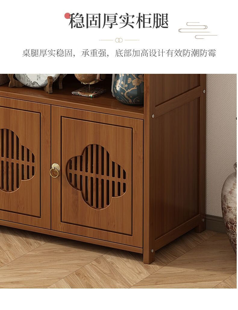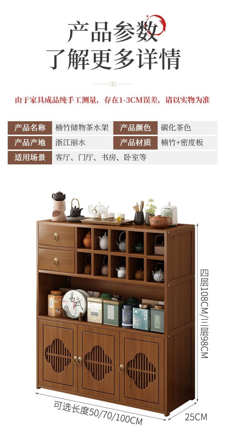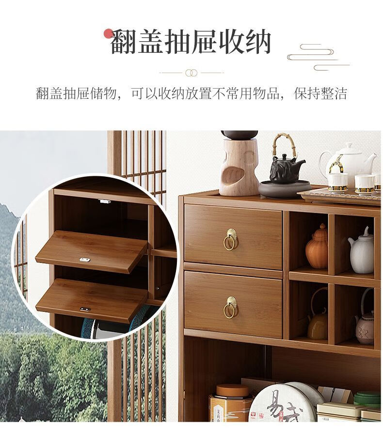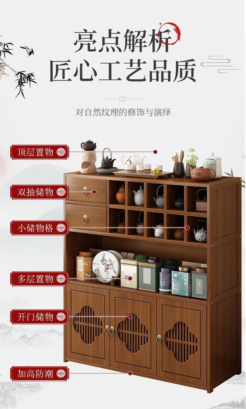 Jingci tea cabinet household tea room tea rack Bogu rack tea cabinet storage rack Chinese tea table table side cabinet tea set storage rack three layers long 50 left double drawer double door style thickened and reinforced