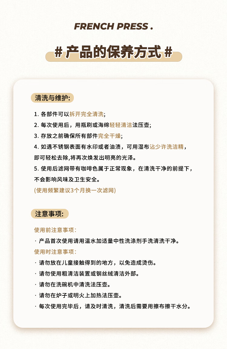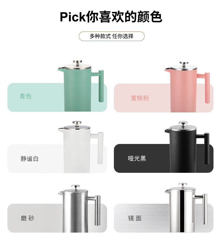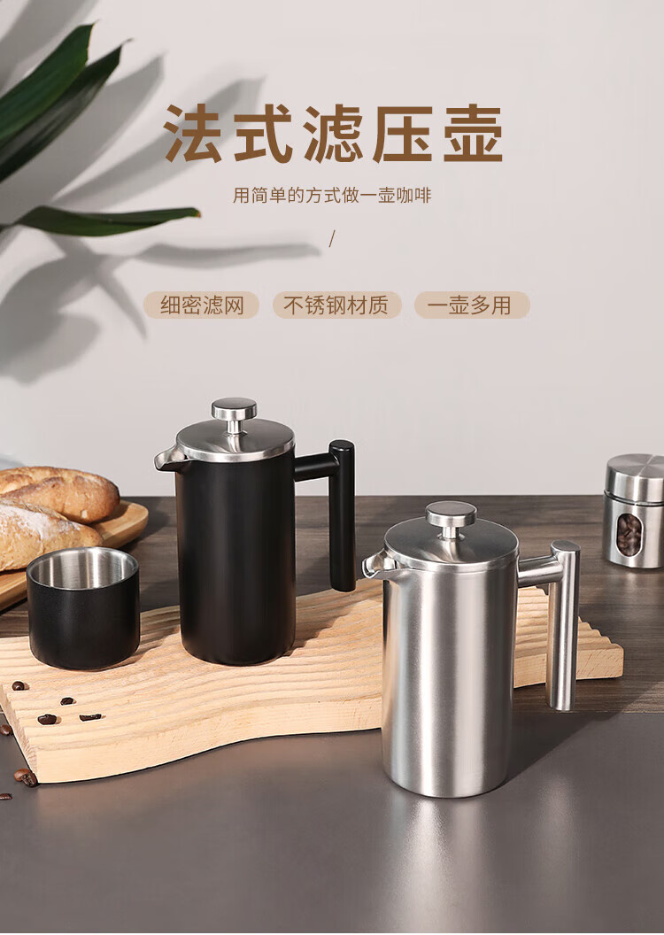 MDUG Stainless Steel French Press Coffee Pot French Hand-brewed Coffee Set Set for Making Tea Double-layer Insulation Matte Black 350ml