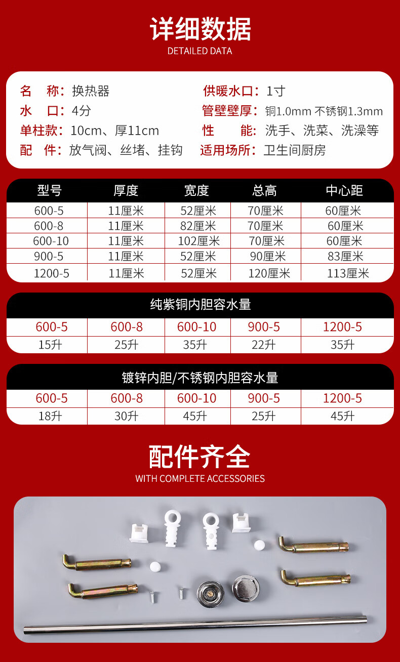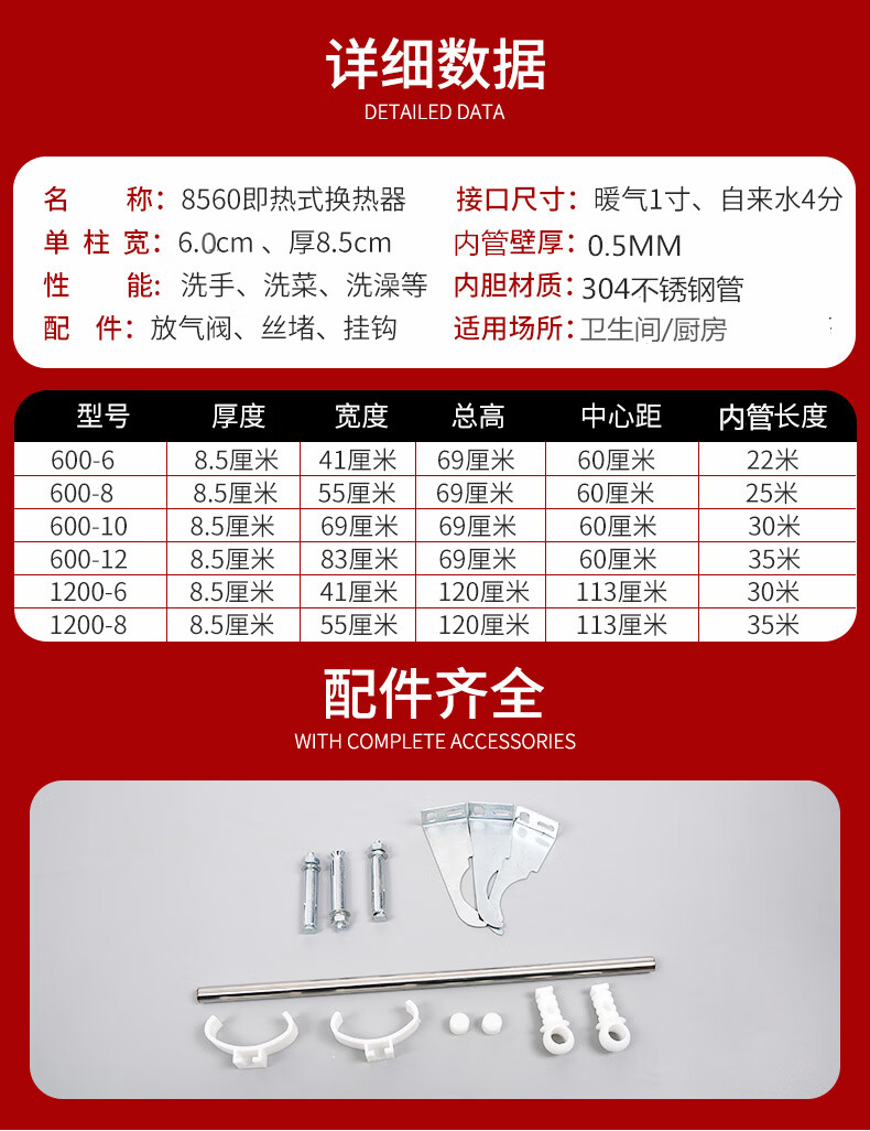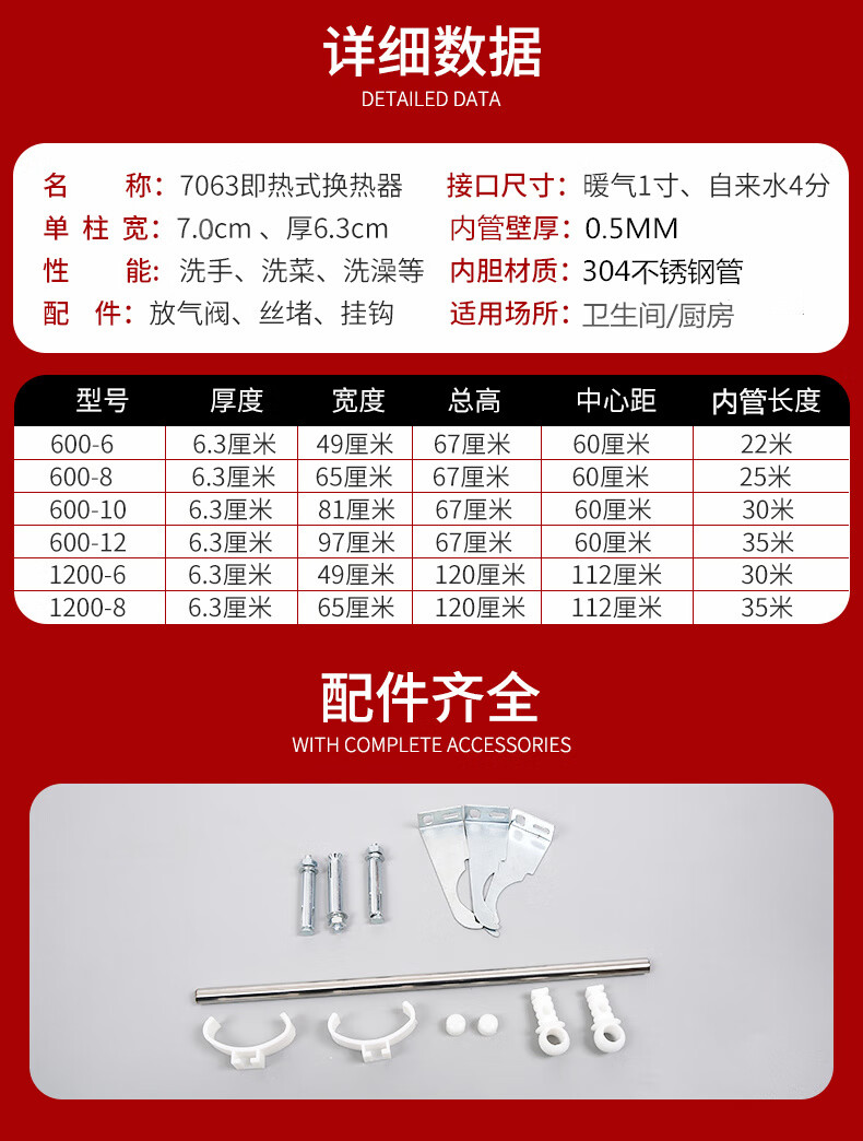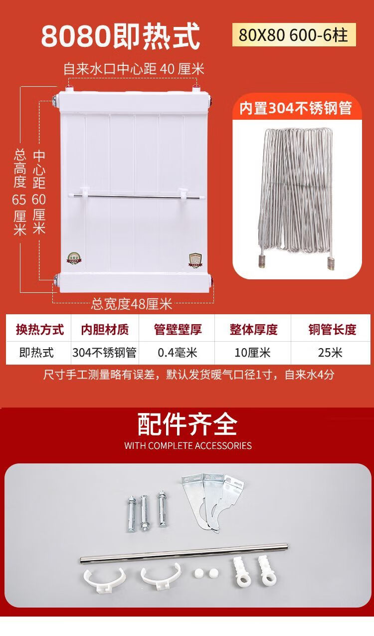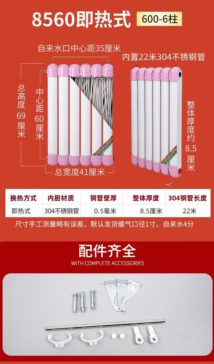 An Junsheng heating hot water exchanger over-water radiator heat exchanger household bathroom water storage floor heating for bathing 70x63 1200-6 columns instant heating