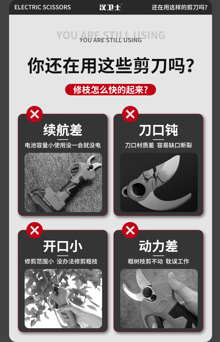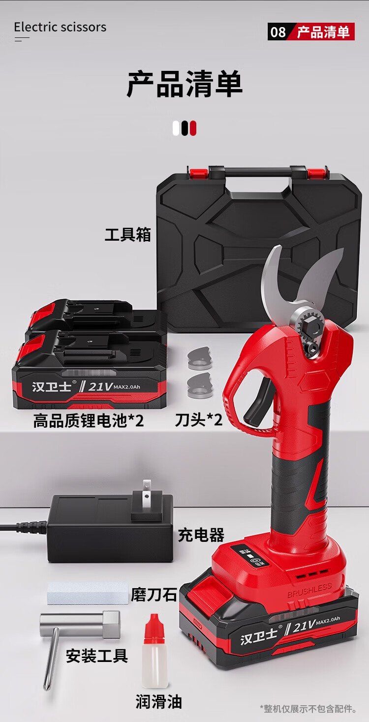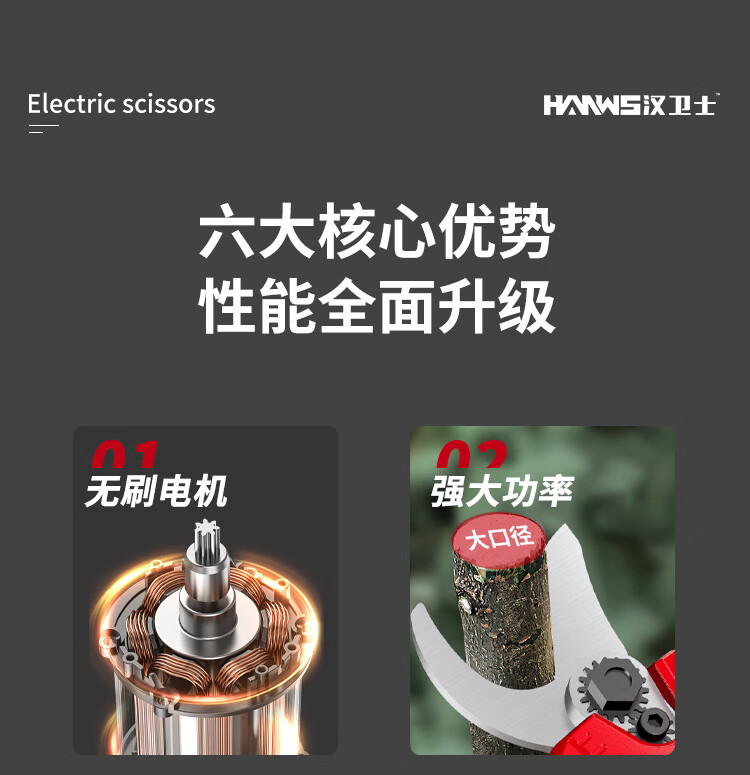Hanweishi electric pruning scissors to cut branches and flowers, fruit tree garden electric shears, brushless dual battery set 2.0Ah dual battery | luxury model
