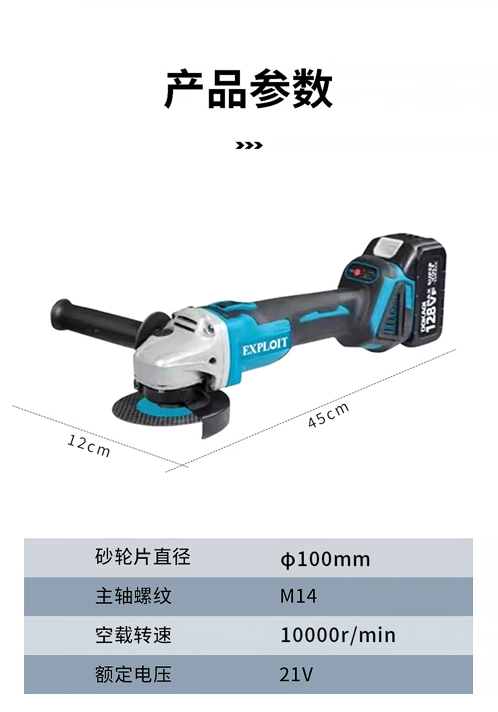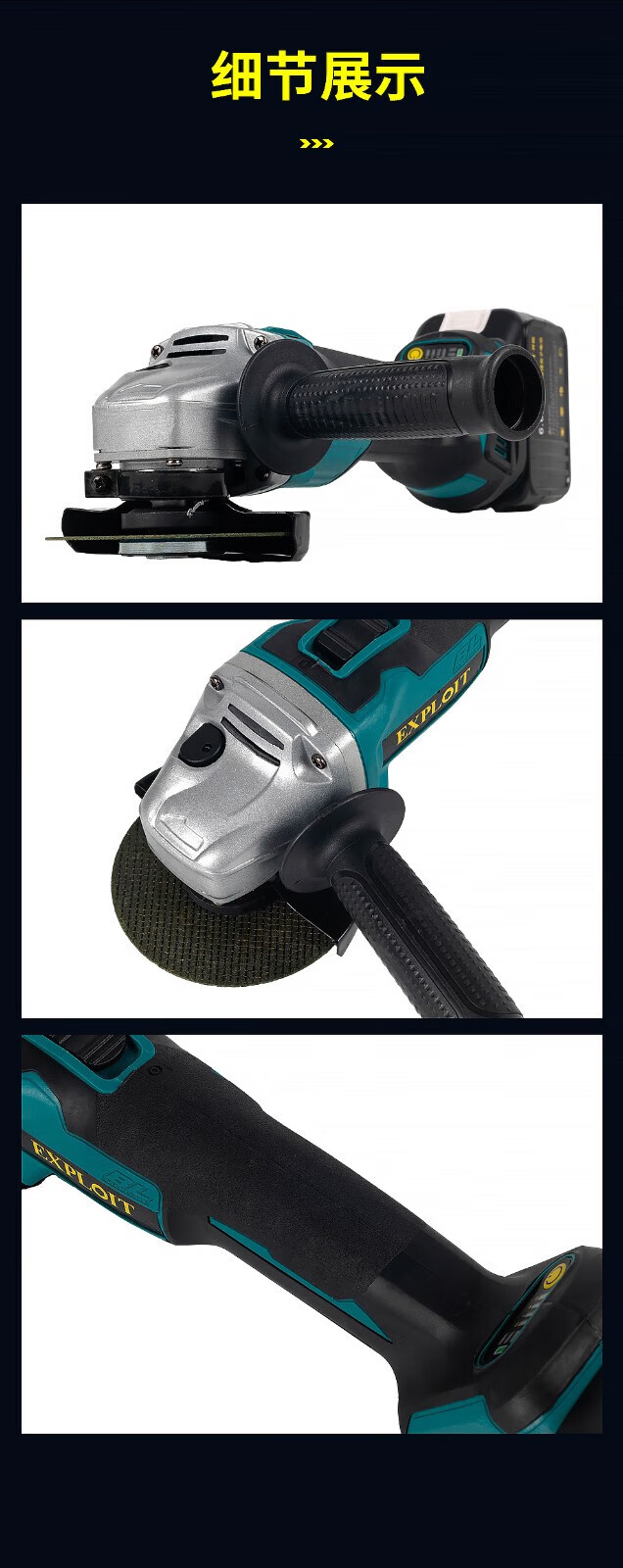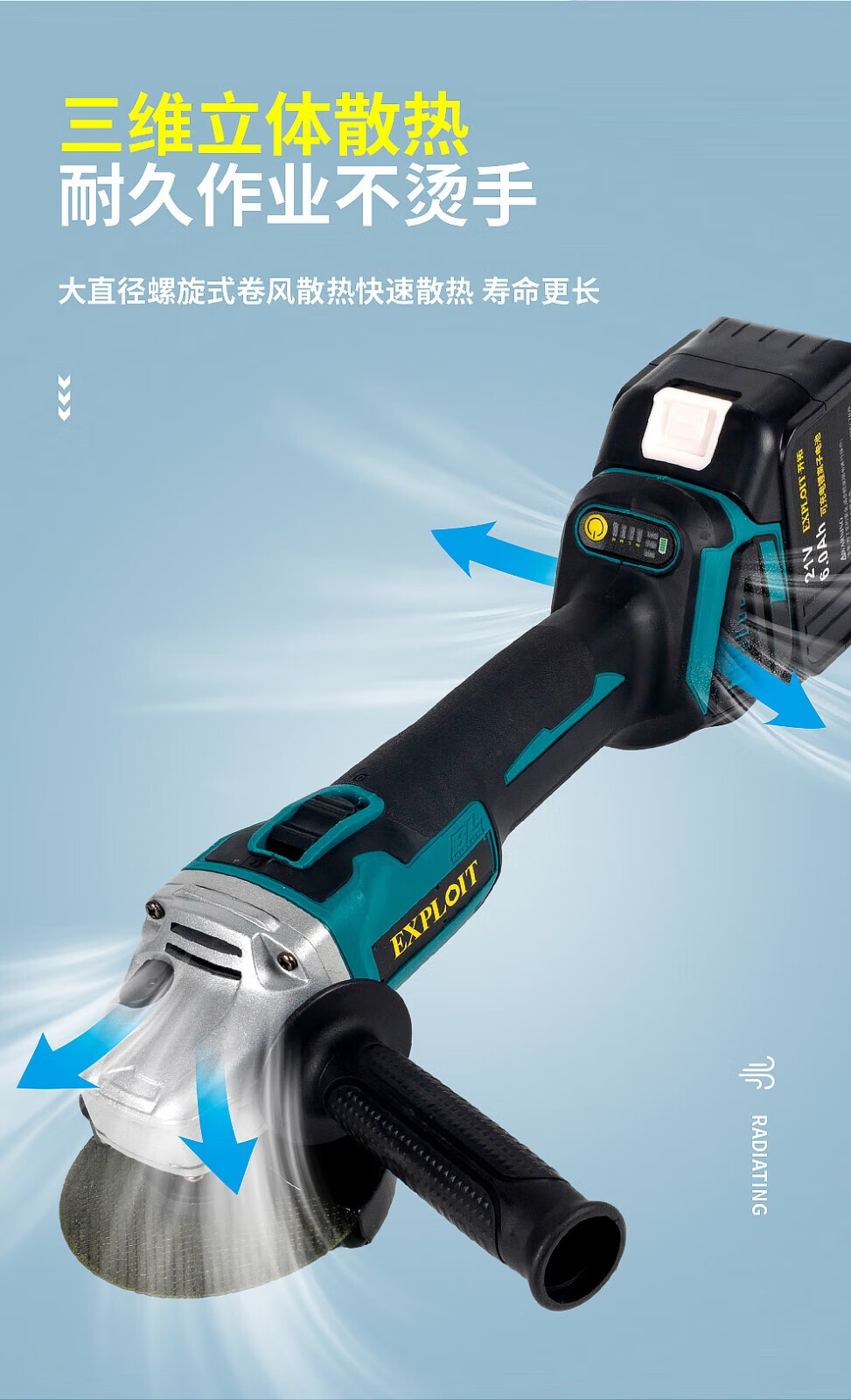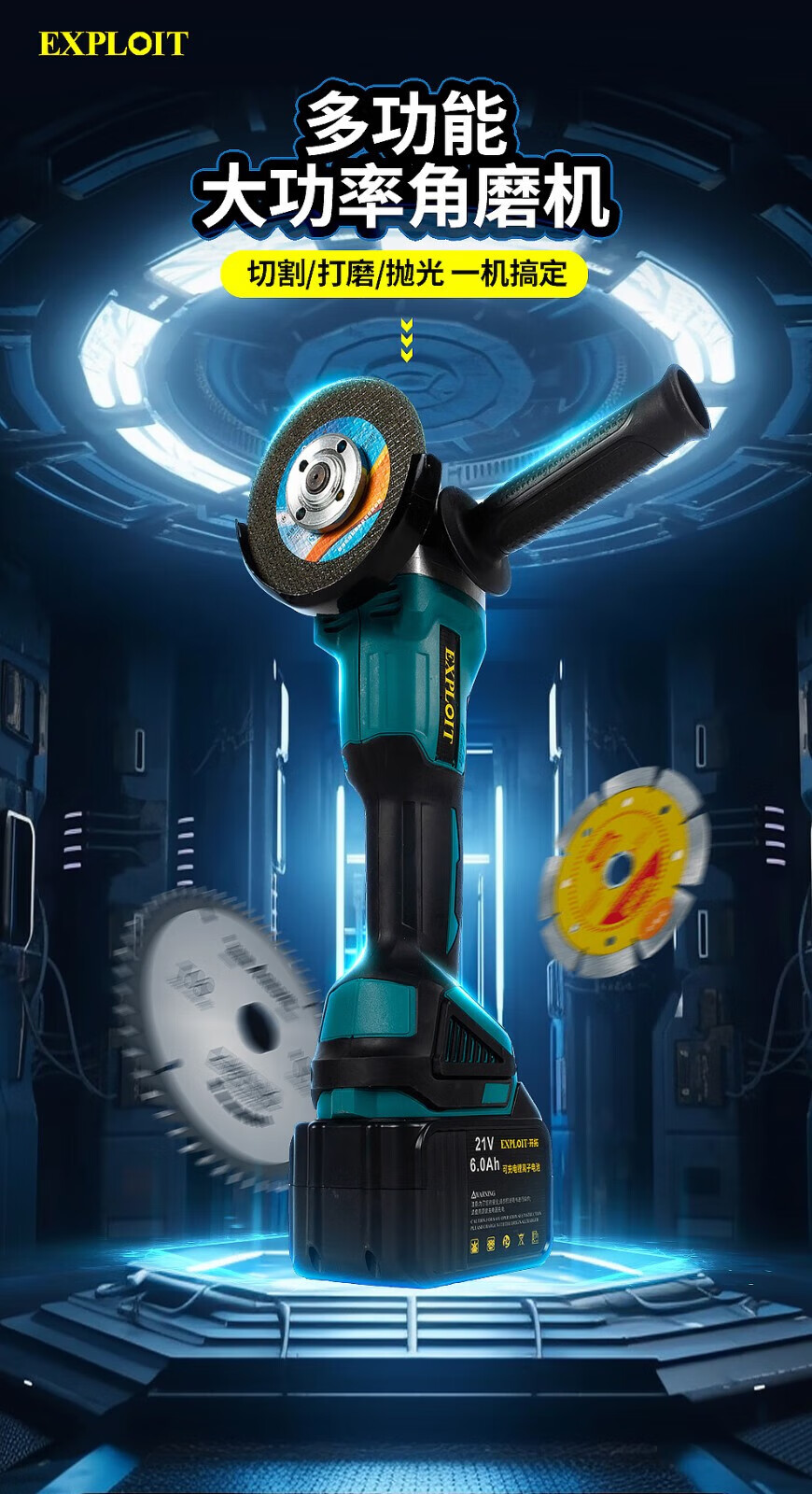 EXPLOIT Lithium Brushless Angle Grinder Rechargeable Hand Grinder 562026 6.0Ah Battery*2