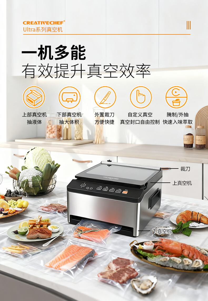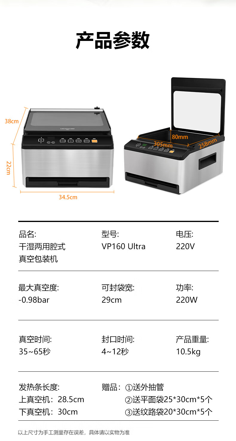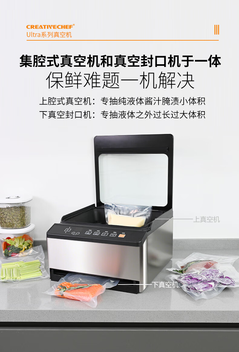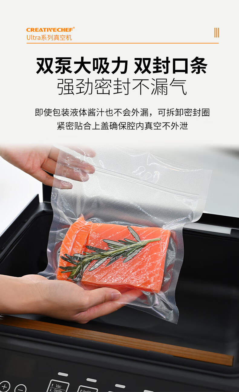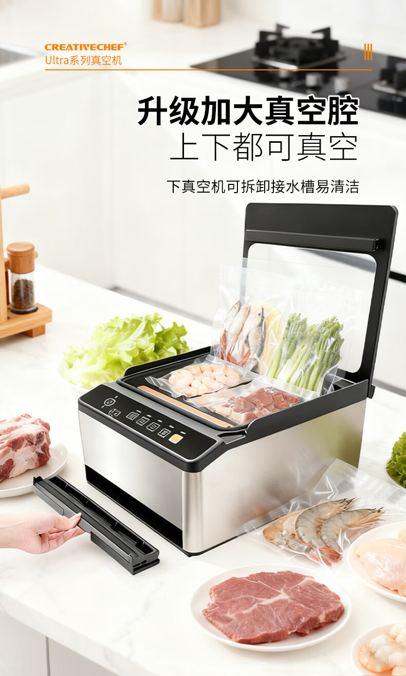 Creativechef vacuum sealing machine, commercial vacuum packaging machine, large-scale high-suction vacuum sealing machine, chamber-type fully automatic food plastic sealing machine, dry and wet dual-use household packaging and sealing machine, top-equipped dual-compartment commercial model vacuum machine (VP160 Ultra)