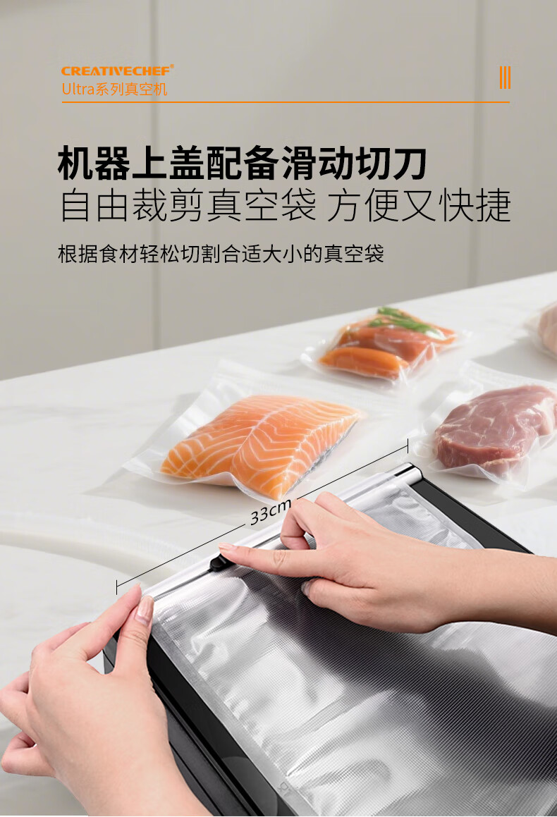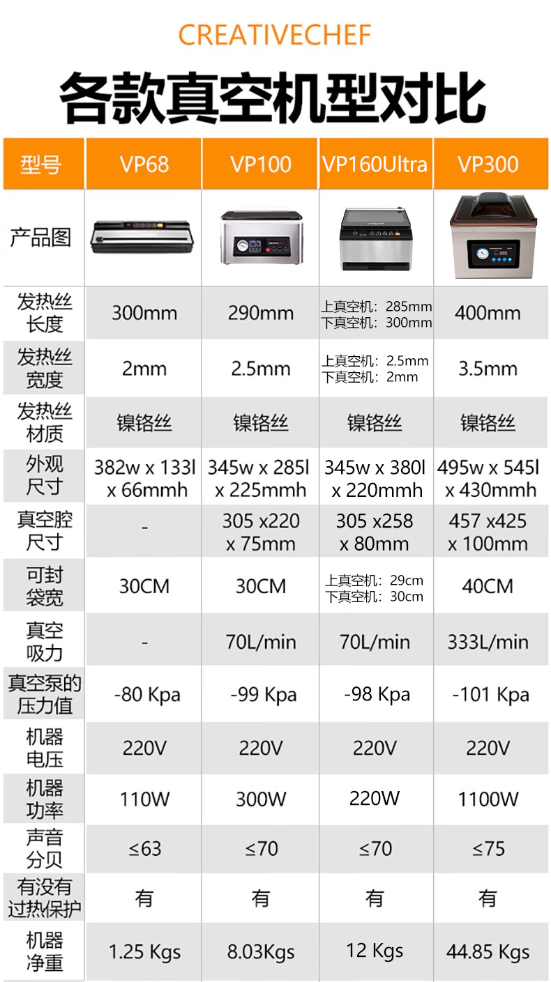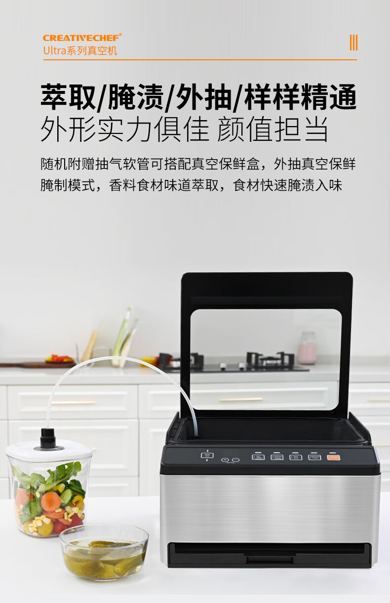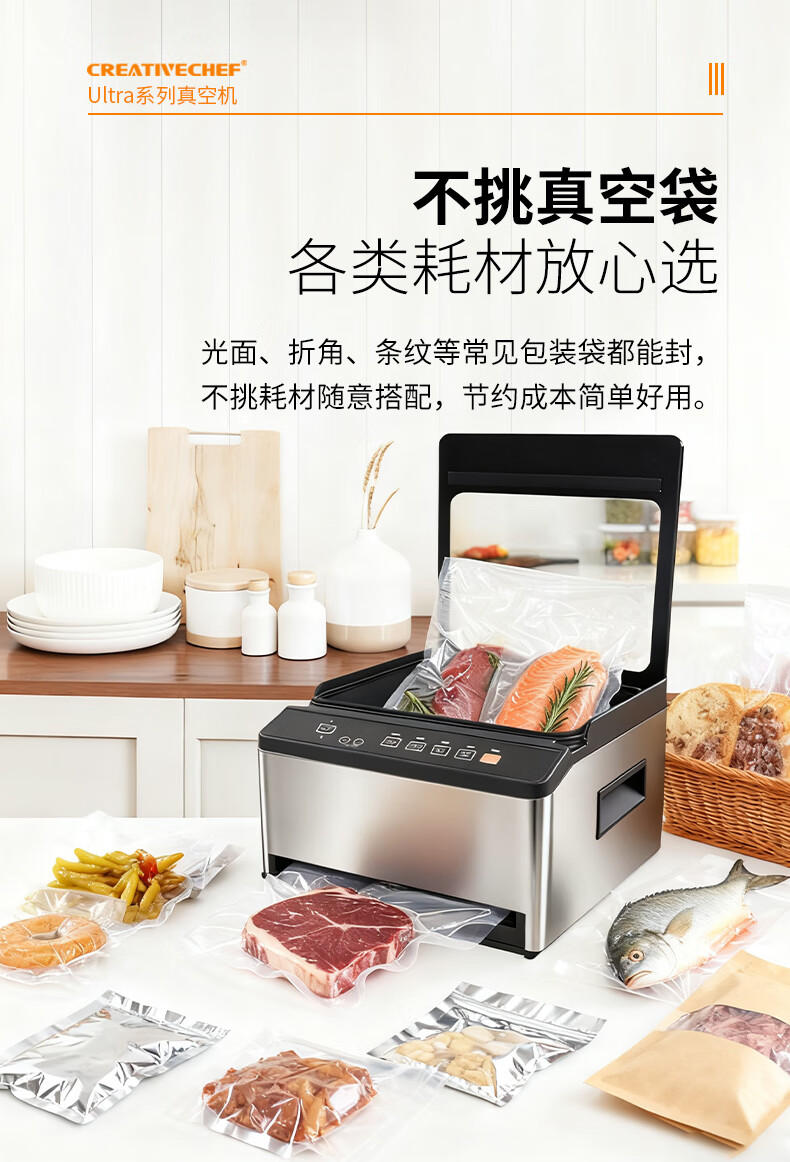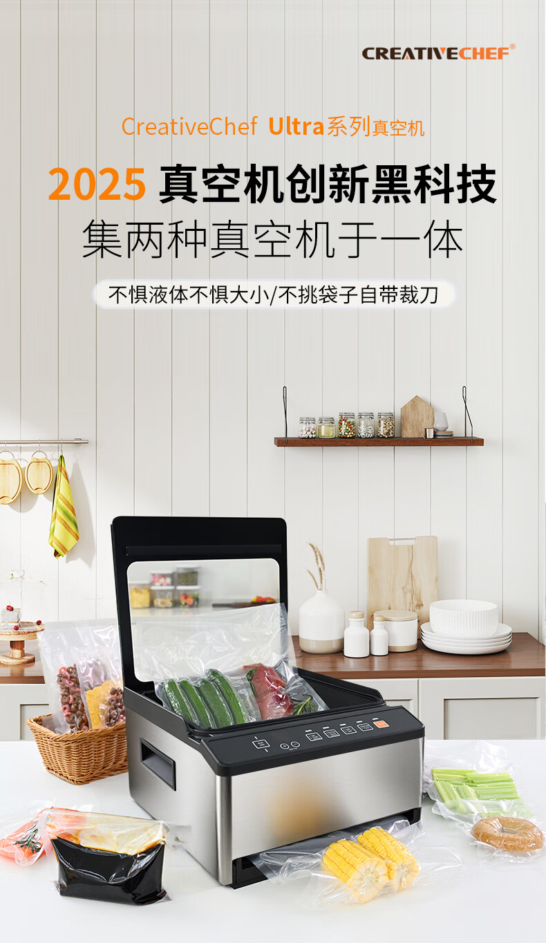 Creativechef vacuum sealing machine, commercial vacuum packaging machine, large-scale high-suction vacuum sealing machine, chamber-type fully automatic food plastic sealing machine, dry and wet dual-use household packaging and sealing machine, top-equipped dual-compartment commercial model vacuum machine (VP160 Ultra)