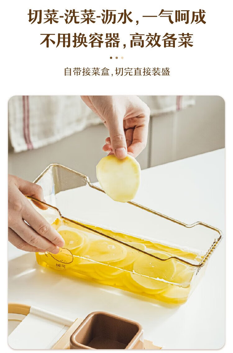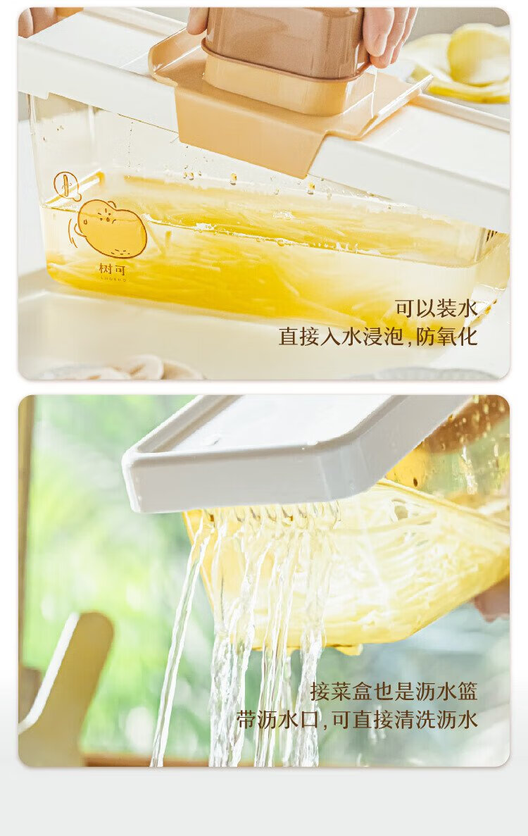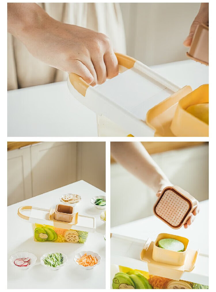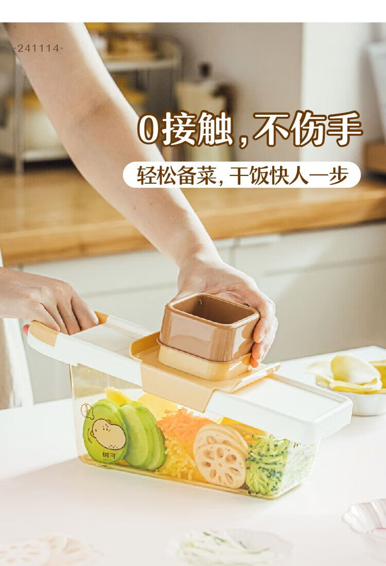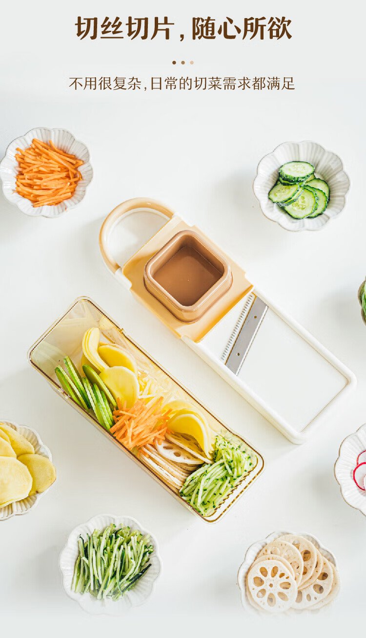 Shuke Yuanqi Caicai multifunctional vegetable cutter and grater, household grating and shredding to prevent hand injury, radish shreds and potato shreds, vegetable cutter + hand guard (shred + slice)