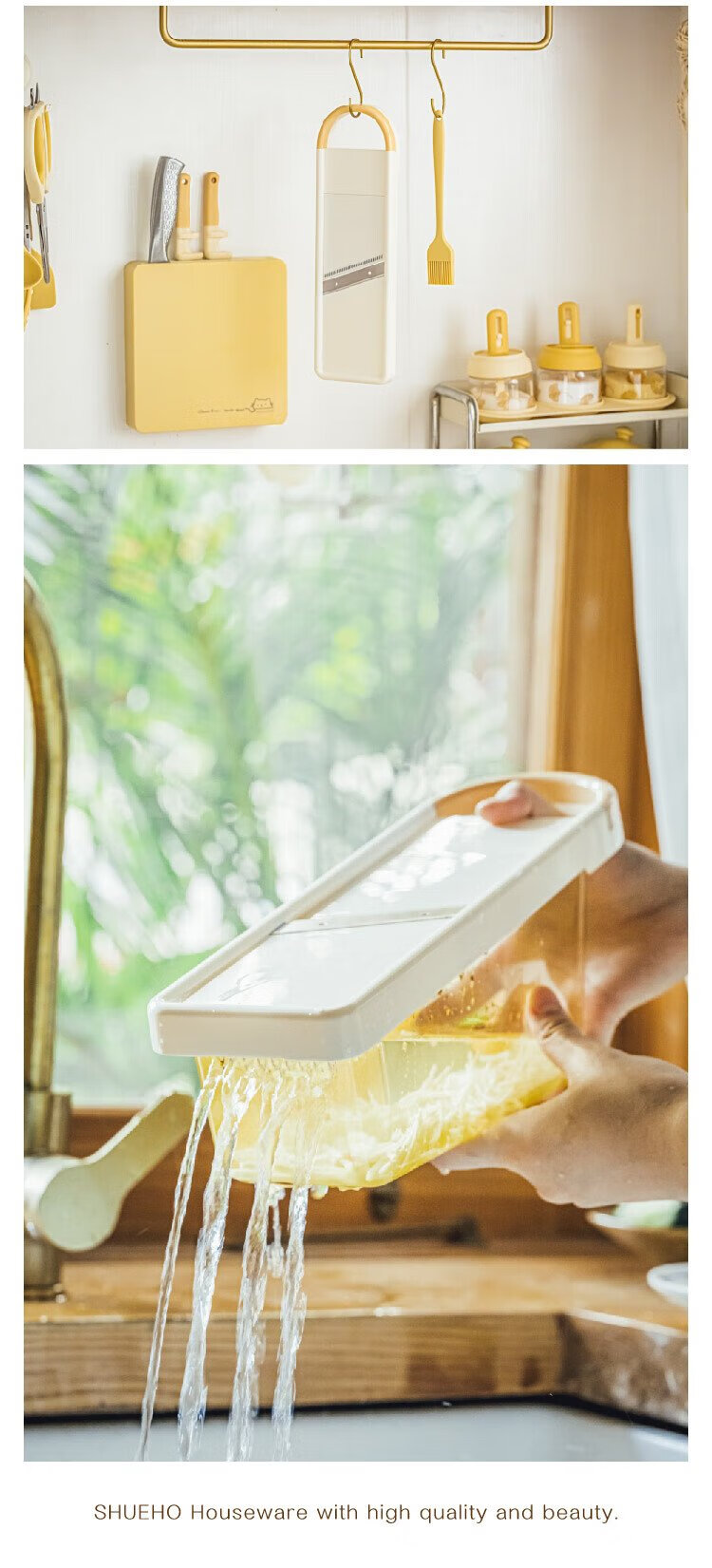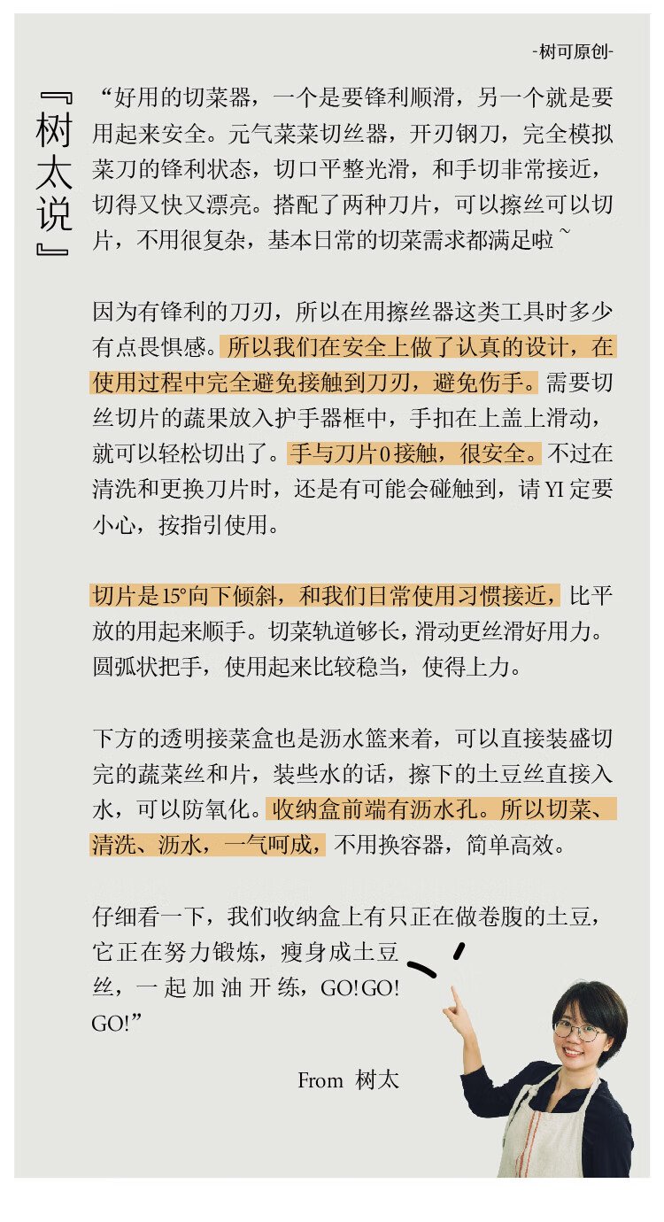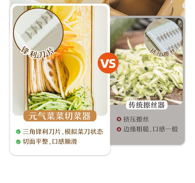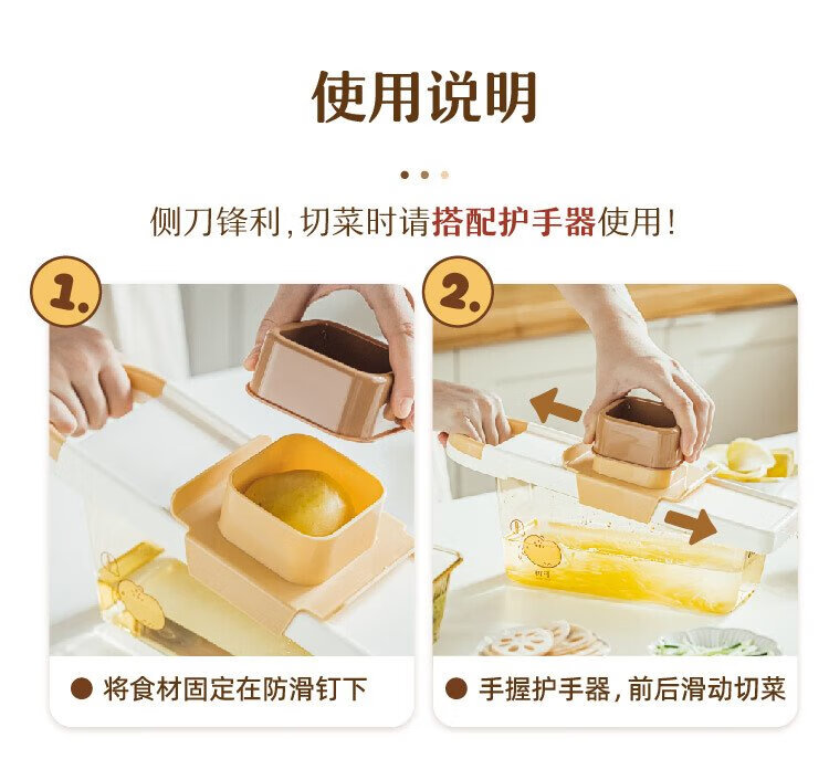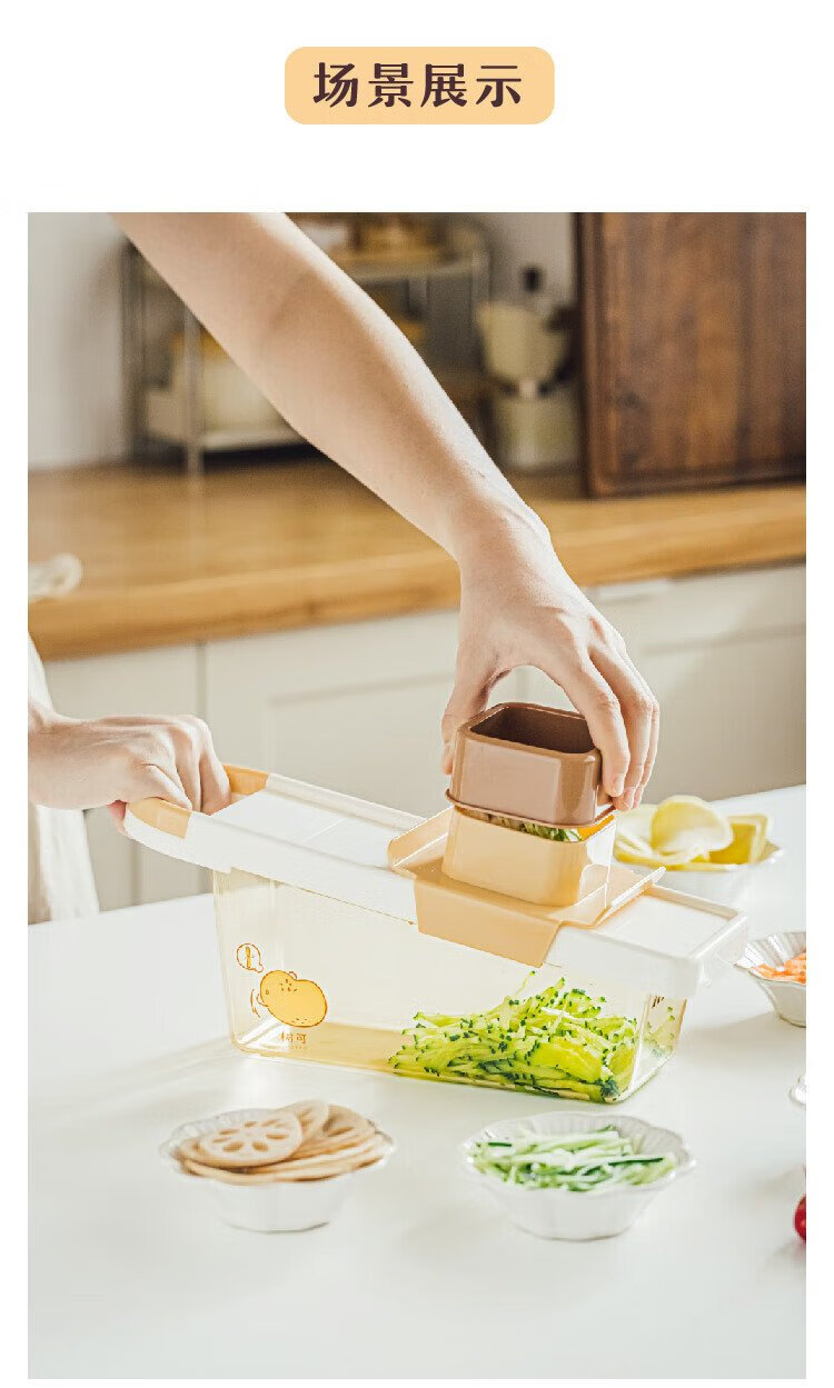 Shuke Yuanqi Caicai multifunctional vegetable cutter and grater, household grating and shredding to prevent hand injury, radish shreds and potato shreds, vegetable cutter + hand guard (shred + slice)