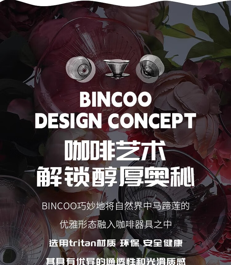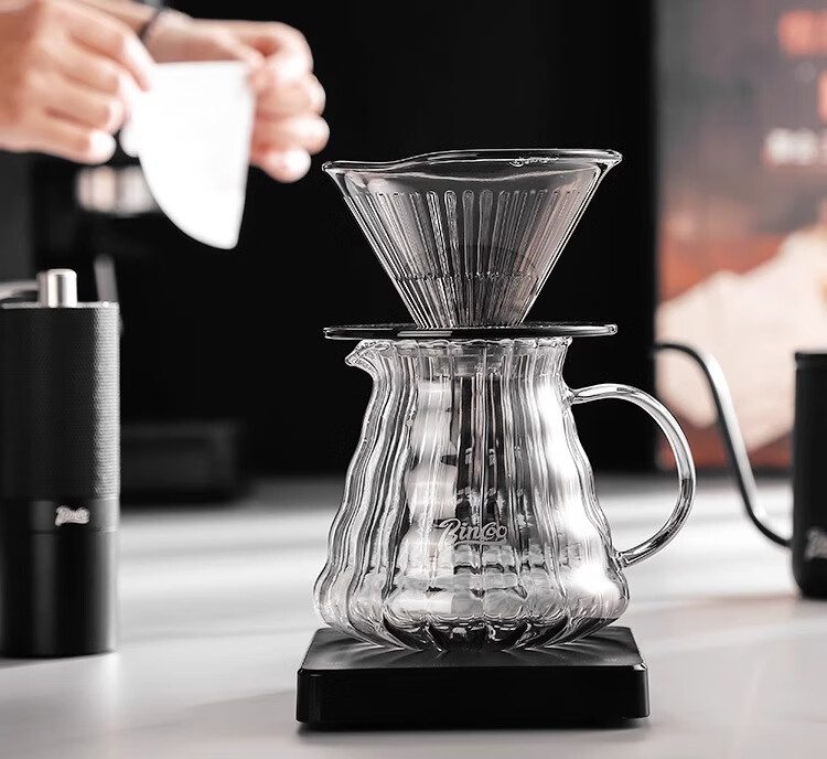 BincooTritan filter cup calla lily hand brewed coffee pot set v60 grinder glass sharing pot set ash | hand brewed 3-piece set