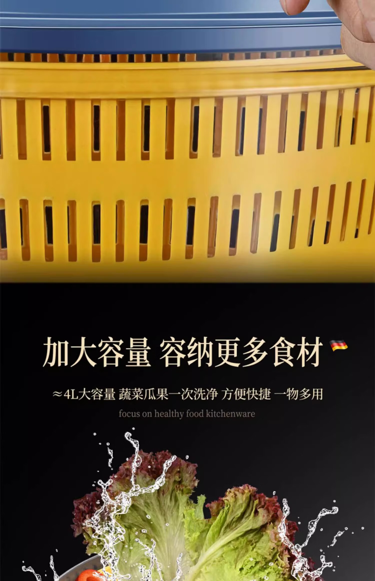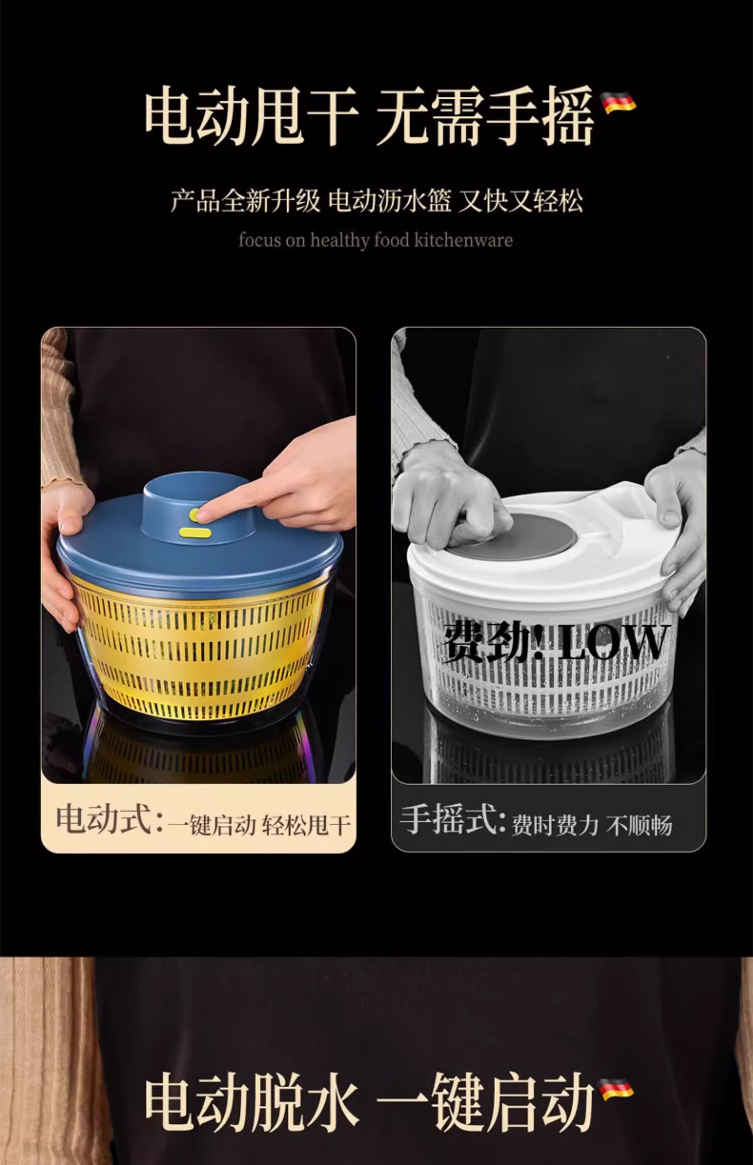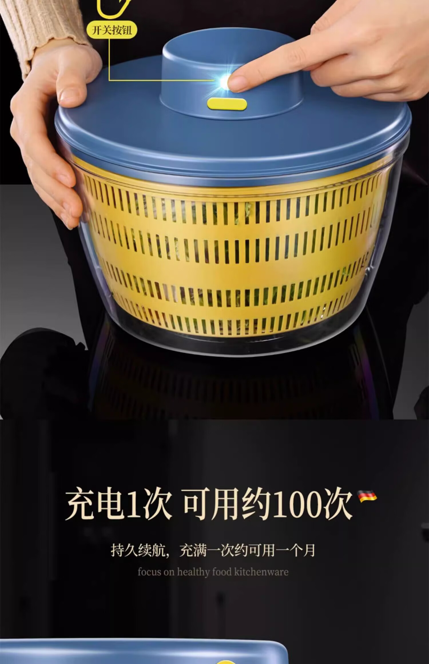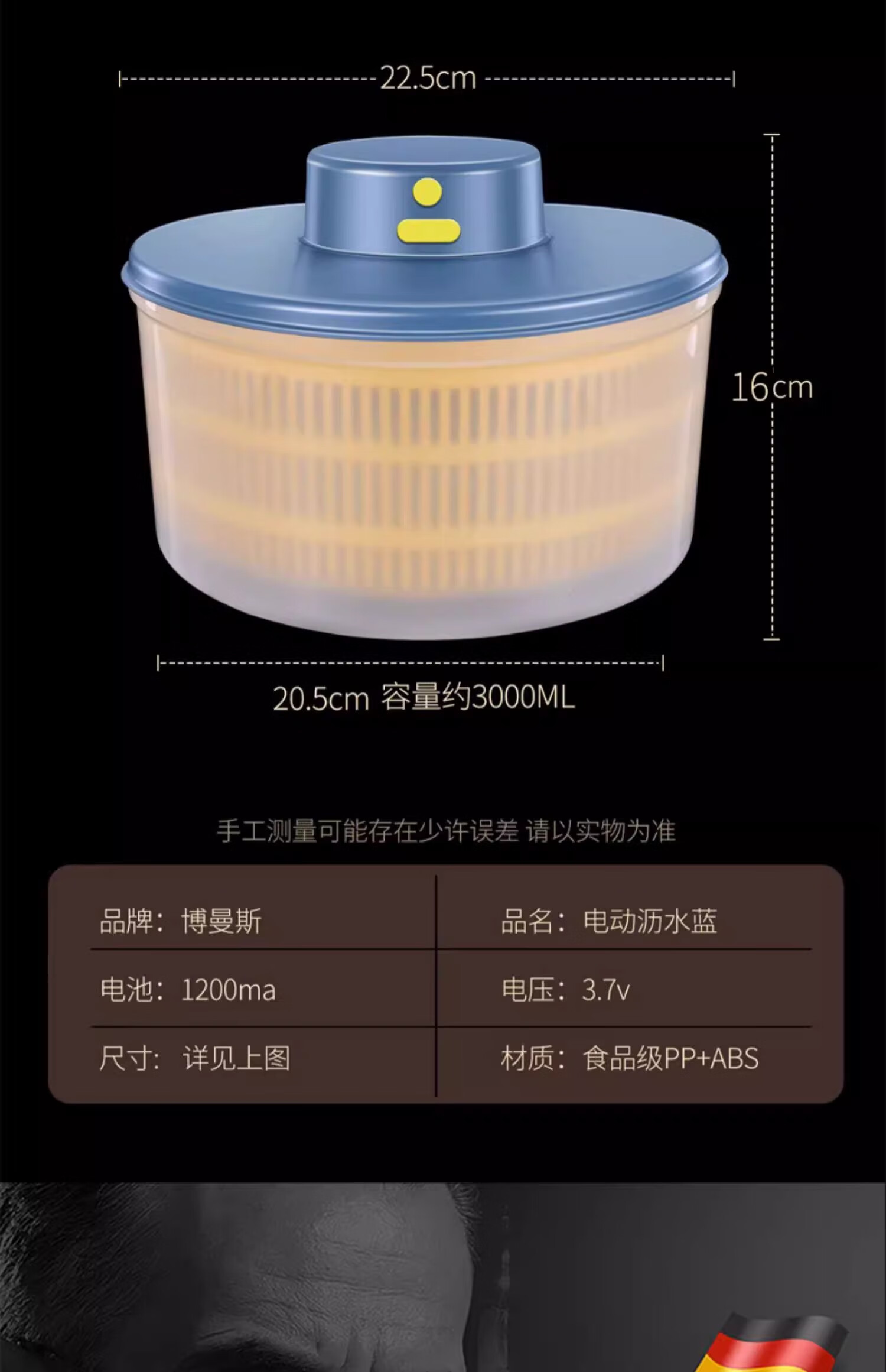 Bomans electric dehydrator, vegetable spinner, vegetable basket drainer, spin dryer, dehydrator, fruit salad water squeezer, blue upgraded model, thickened 4L, degreasing