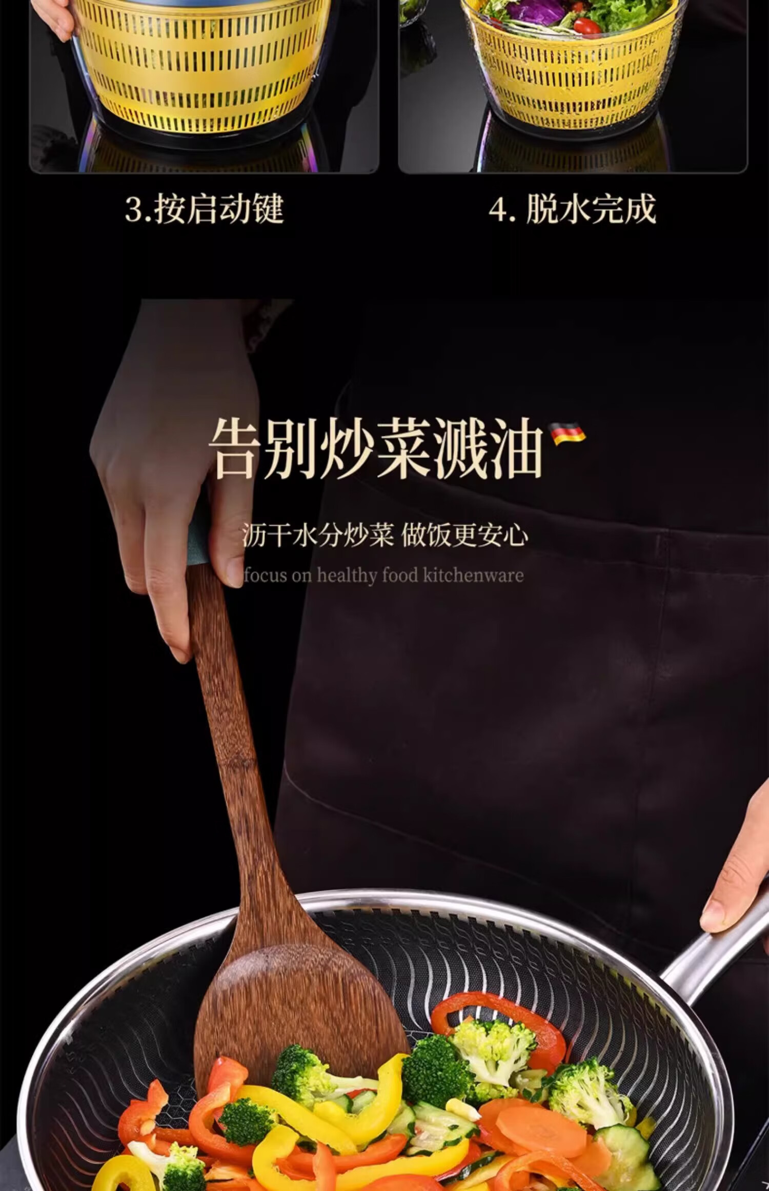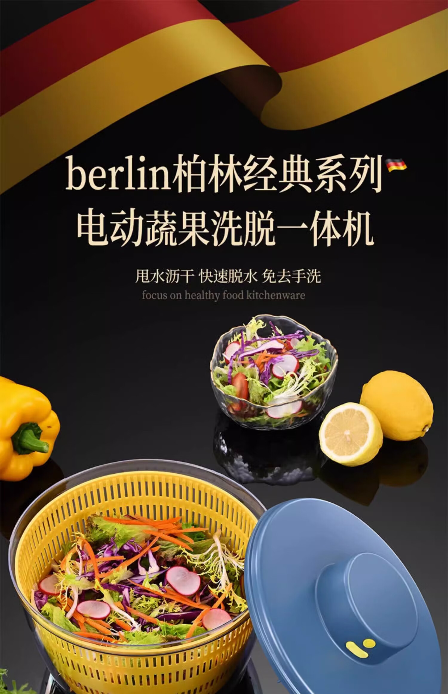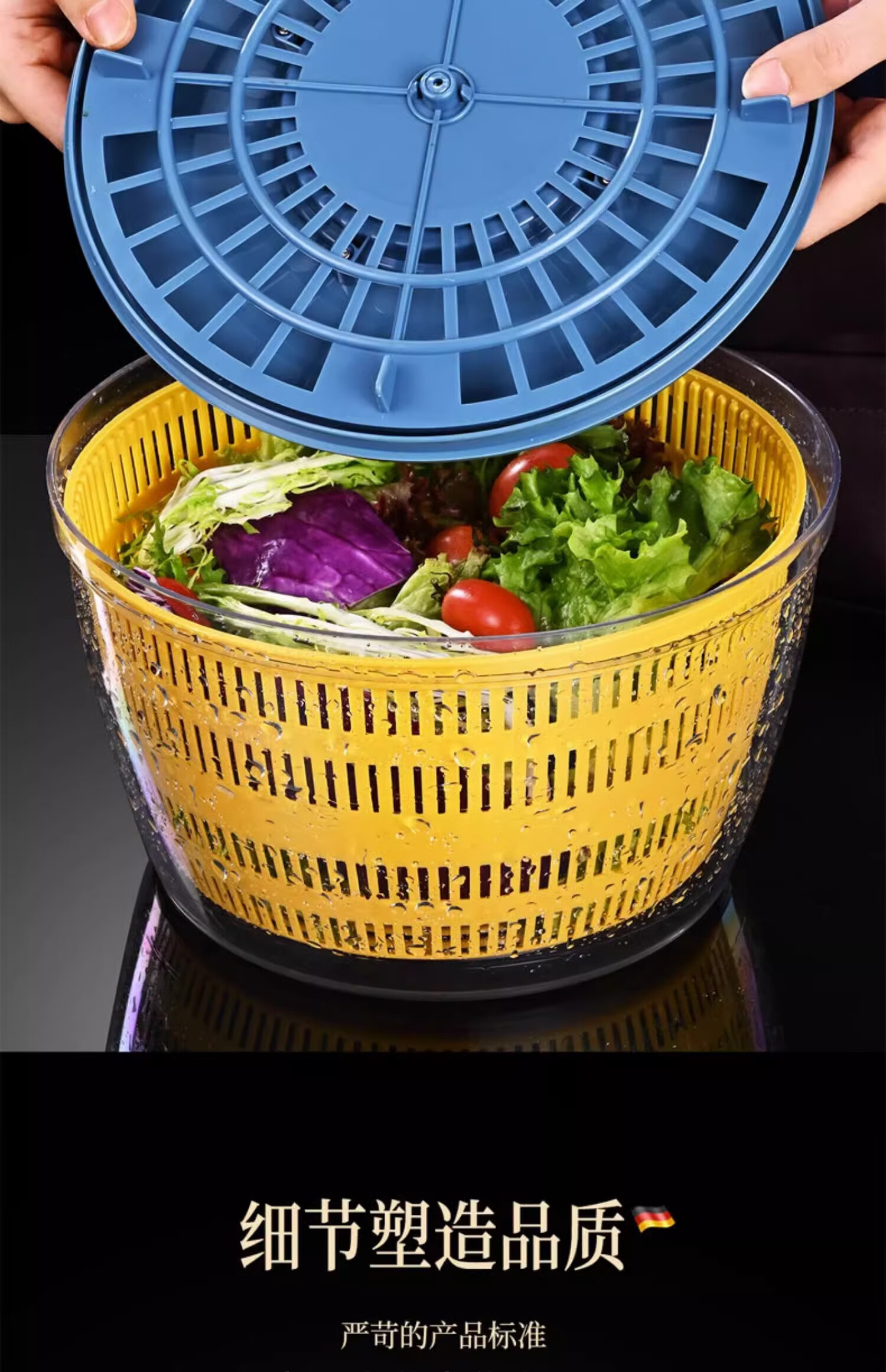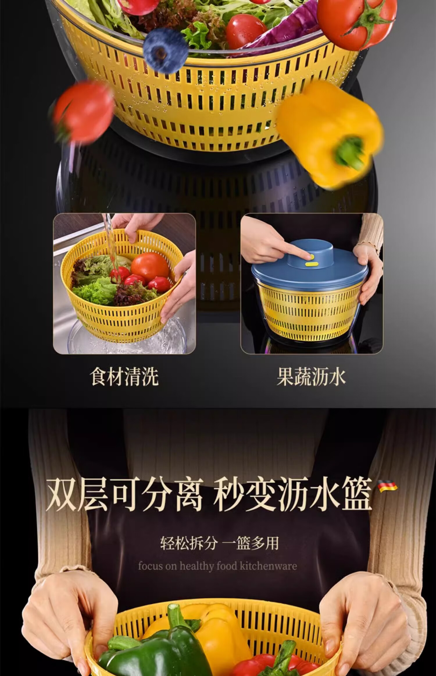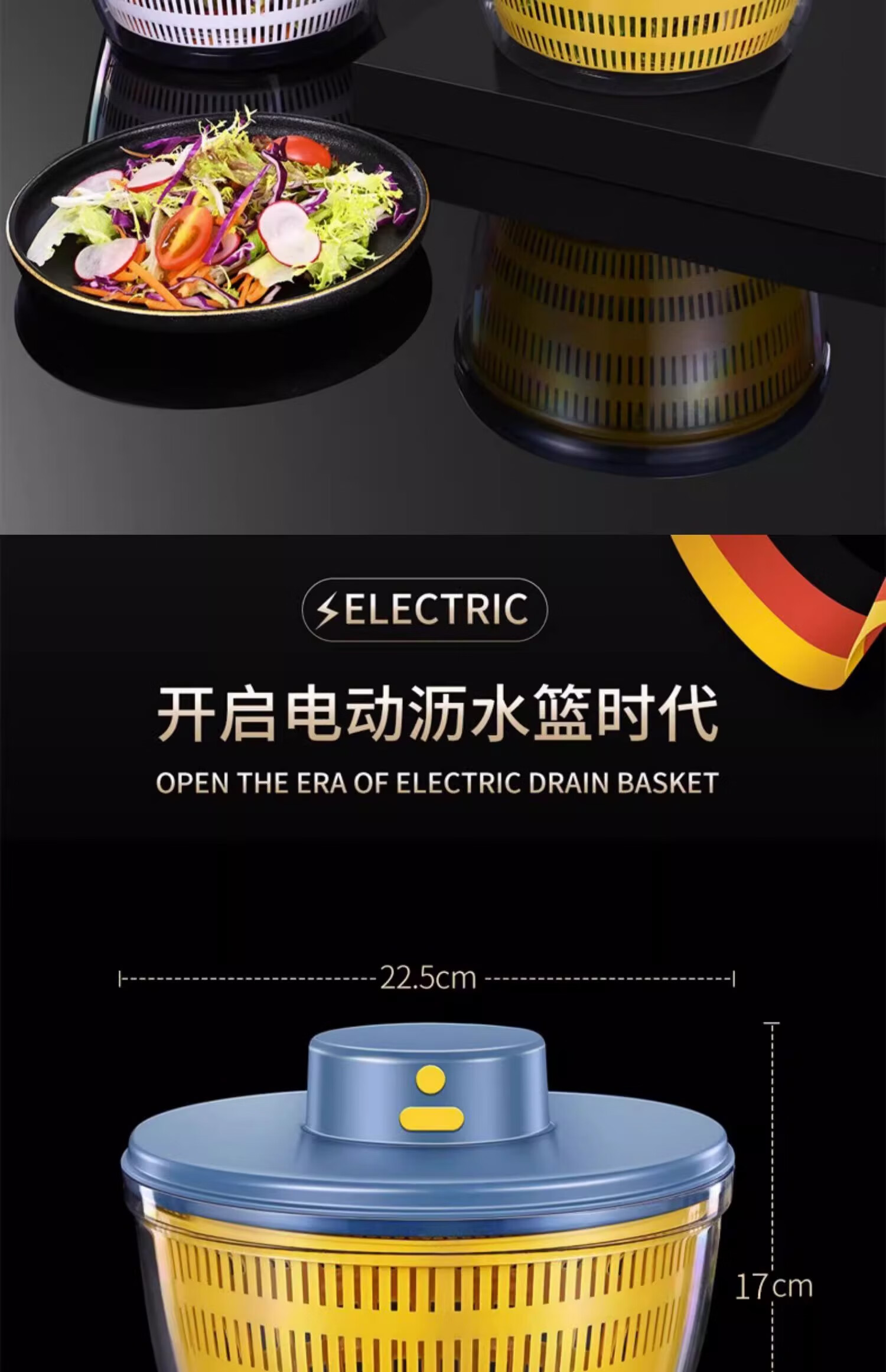 Bomans electric dehydrator, vegetable spinner, vegetable basket drainer, spin dryer, dehydrator, fruit salad water squeezer, blue upgraded model, thickened 4L, degreasing