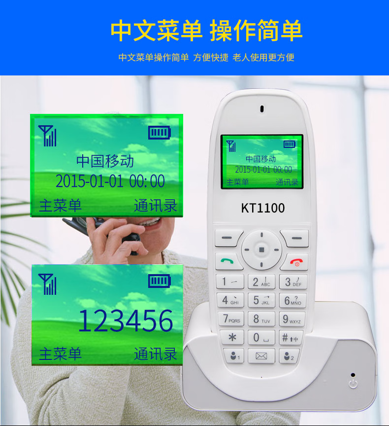 Carl KT1100 plug-in card wireless fixed-line telephone landline mobile Unicom Telecom Tietong Business Cordless Handheld 4G5G full Netcom dual-card VOLTE call recording pluggable headset with base