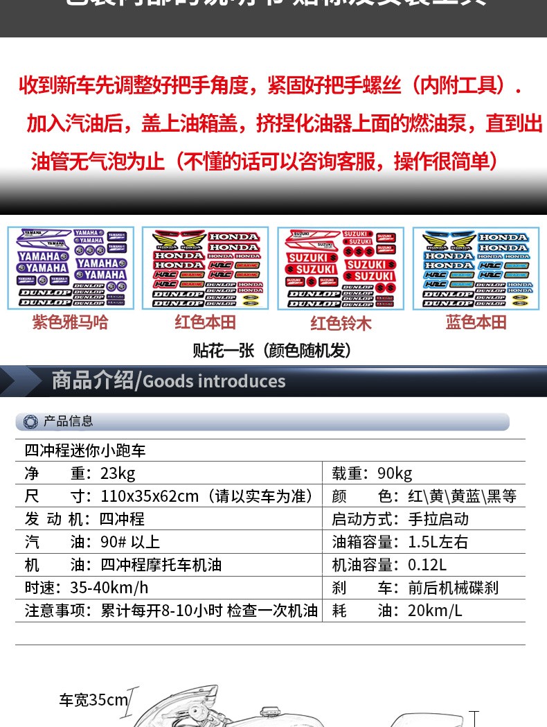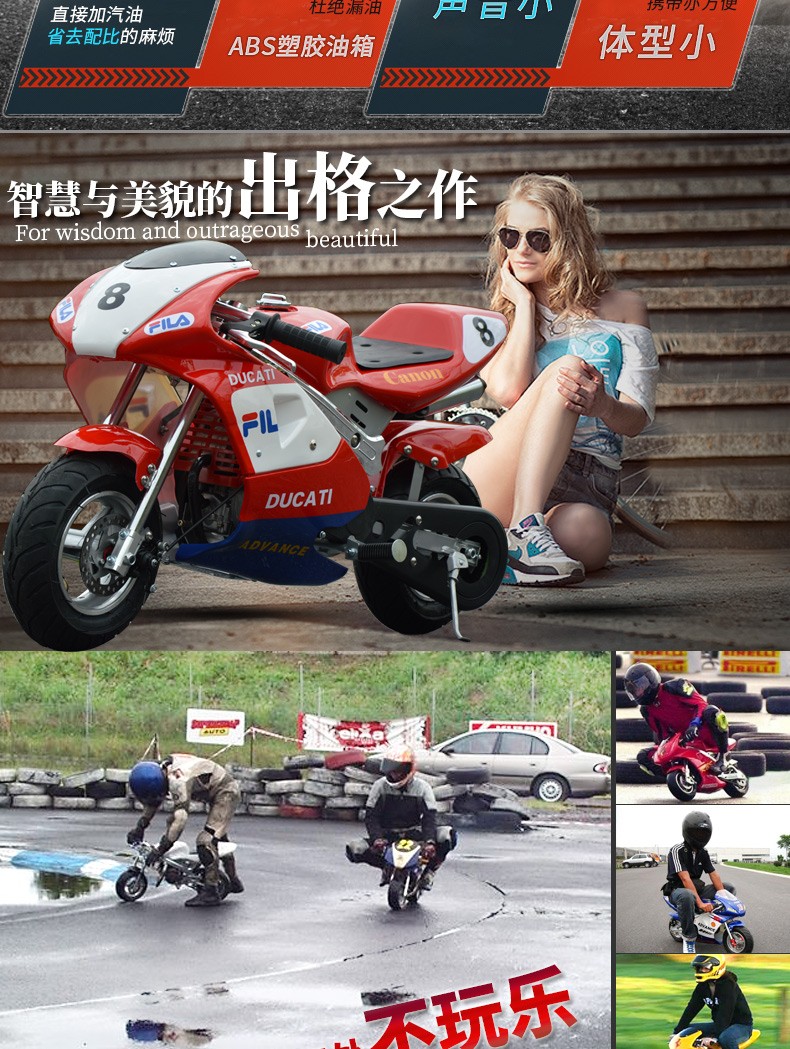 Langchuang 4-stroke mini sports car, small motorcycle, pure gasoline version, small motorcycle, fuel version, electric start, one-button start