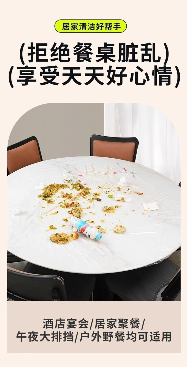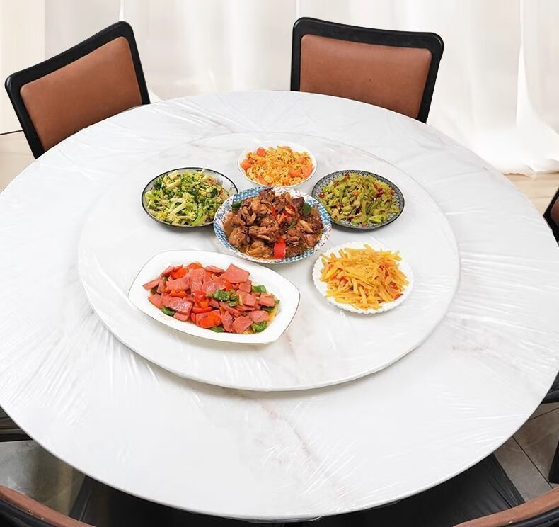Fuyan enlarged and thickened disposable tablecloths with drawstrings, retractable table covers, elastic tablecloths for restaurants, food stalls, hotels, transparent white, one large pack, available丨20 times丨Small 2-5 person table丨universal for square and round tables 1.62