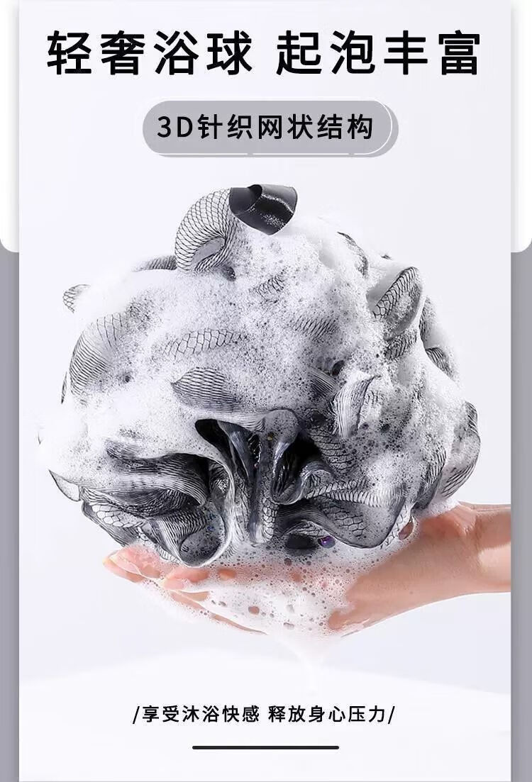 Antibacterial and Mite-Removing Bath Ball, Large Bath Ball, Super Soft and Non-Falling Bath Ball, Back Rubbing, New Style Bath Ball, 1 Pack