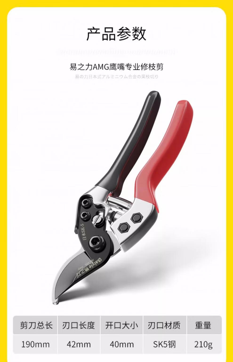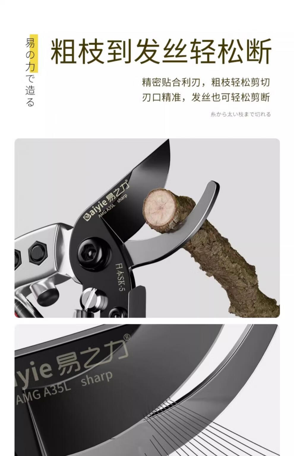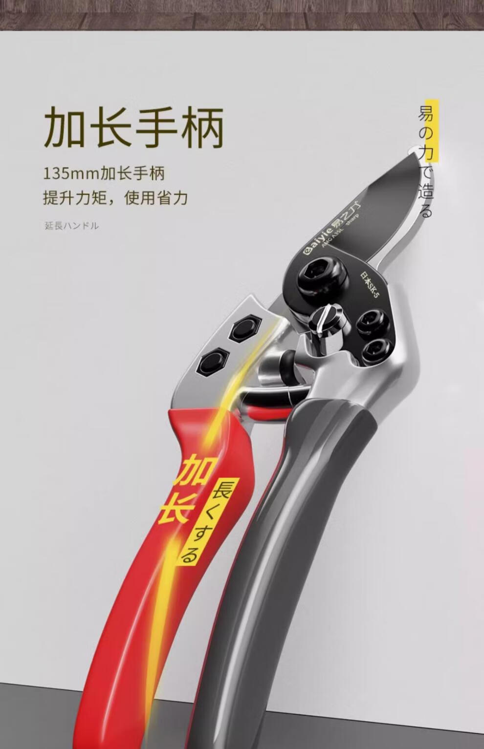 Meishute Japanese Seiko sk5 special scissors for cutting branches, pruning shears, garden fruit trees, household thick branch gardening pruning shears, Japanese sk5 steel, free spare blade