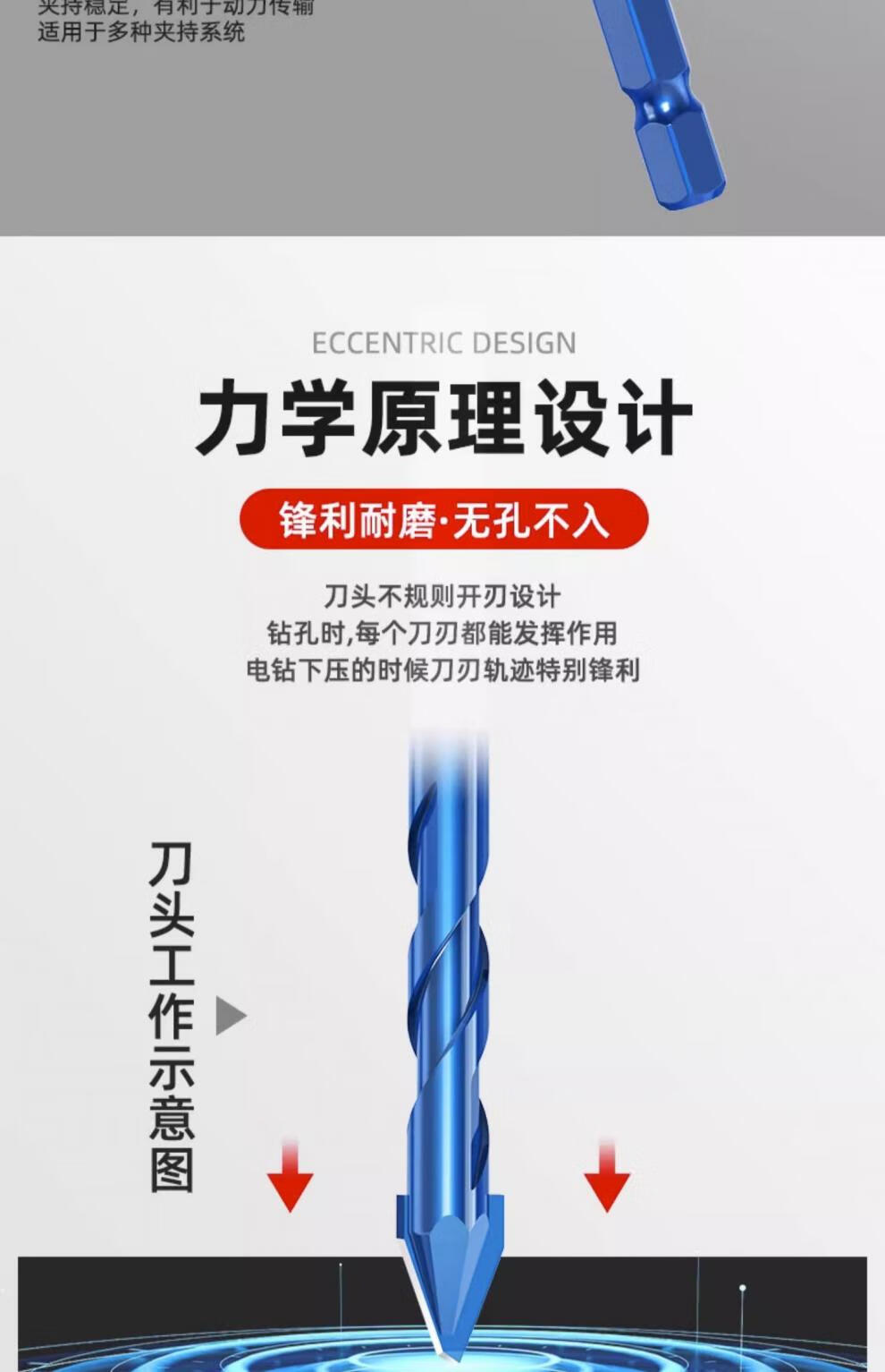 Meschute German eccentric eccentric drill bit super hard tile drilling drill concrete high hardness cement tile special triangle drill super hard eccentric drill 6mm 2 pieces