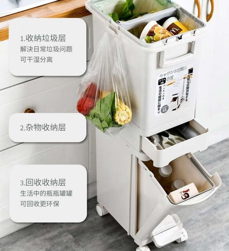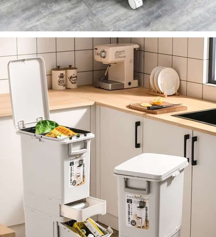 Japanese-style home creative kitchen double-layer classification trash can with lid large deodorant simple dry and wet separation trash can double lid 2 layers 45L