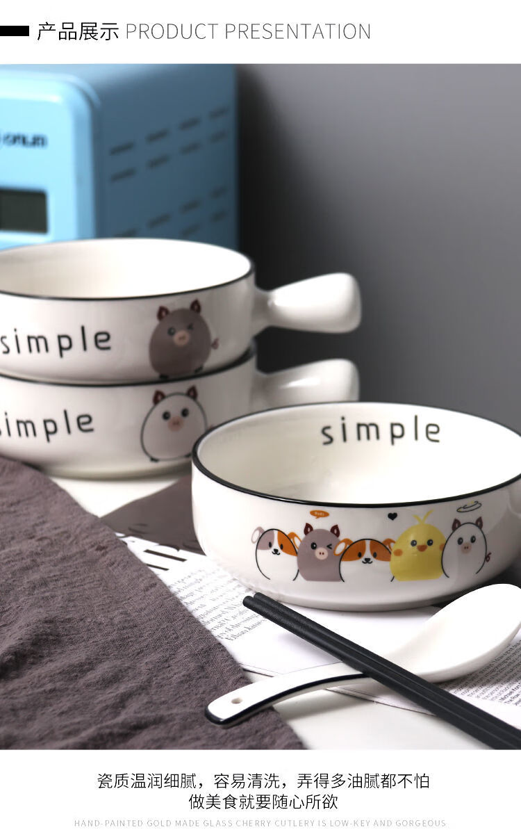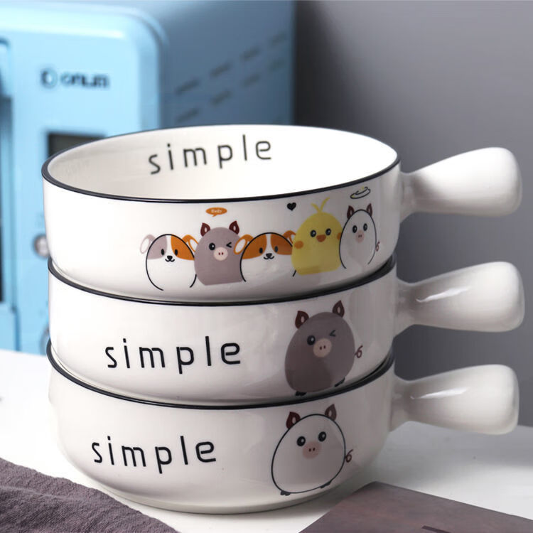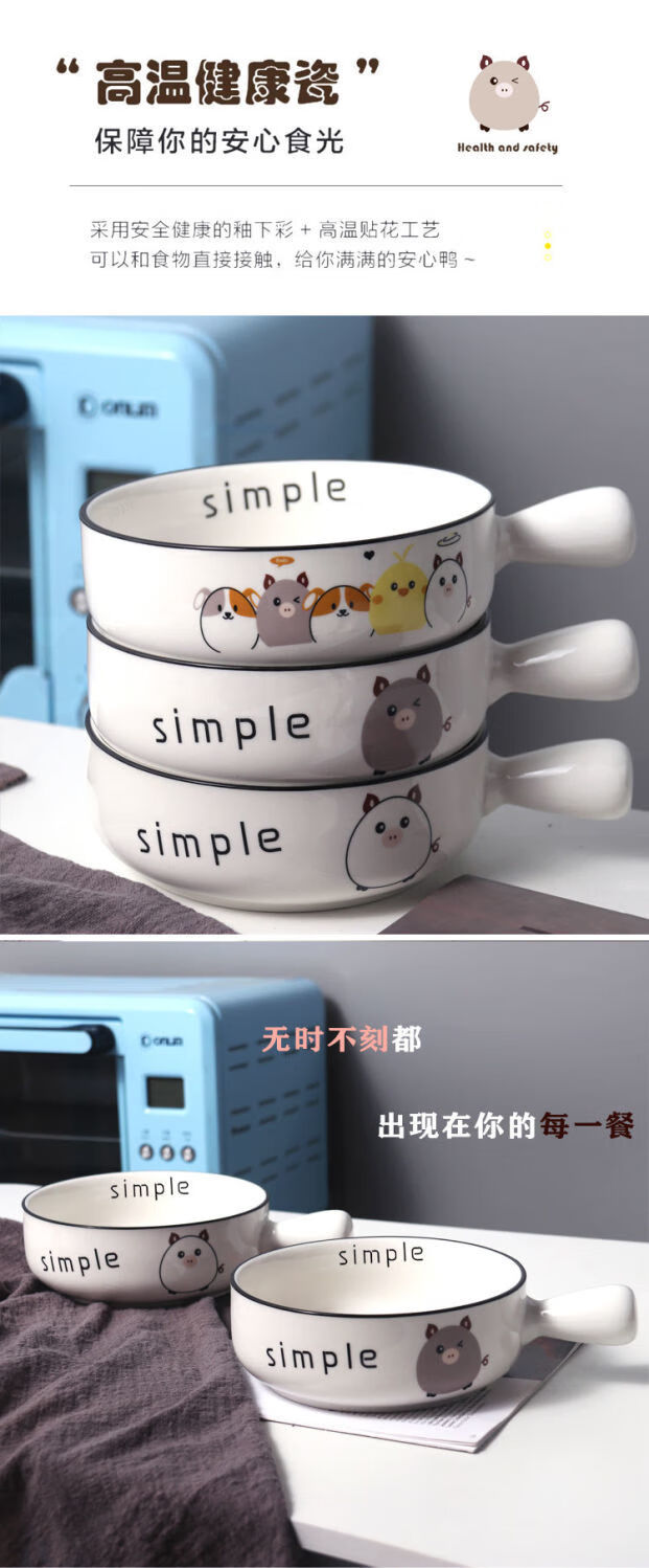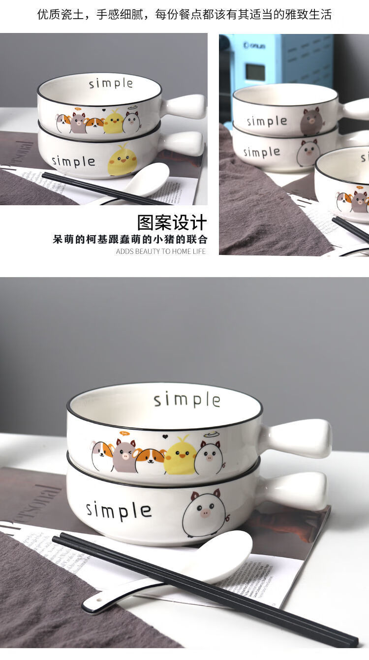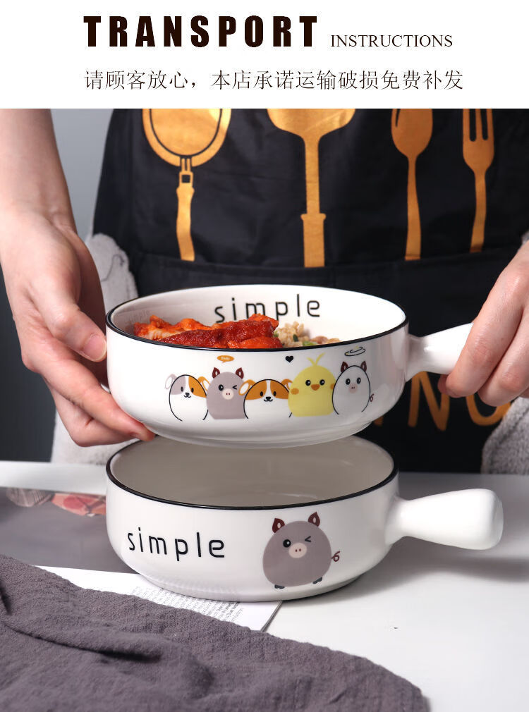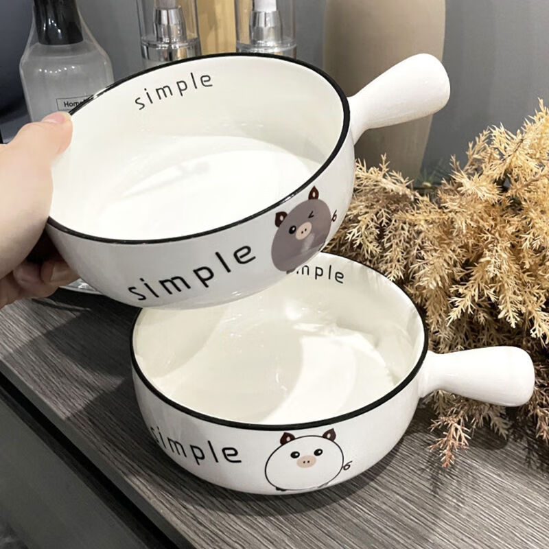 Enshousu Cartoon Cute Ceramic Noodle Bowl Handle Bowl Simple Creative Tableware Household Bowl Baked Breakfast Bowl Microwave Baked Rice Bowl Main Image (Choose One from Two)