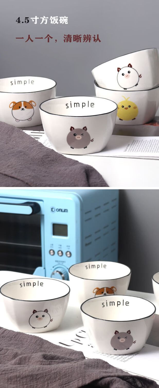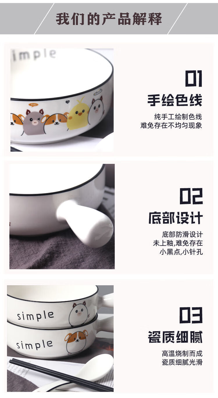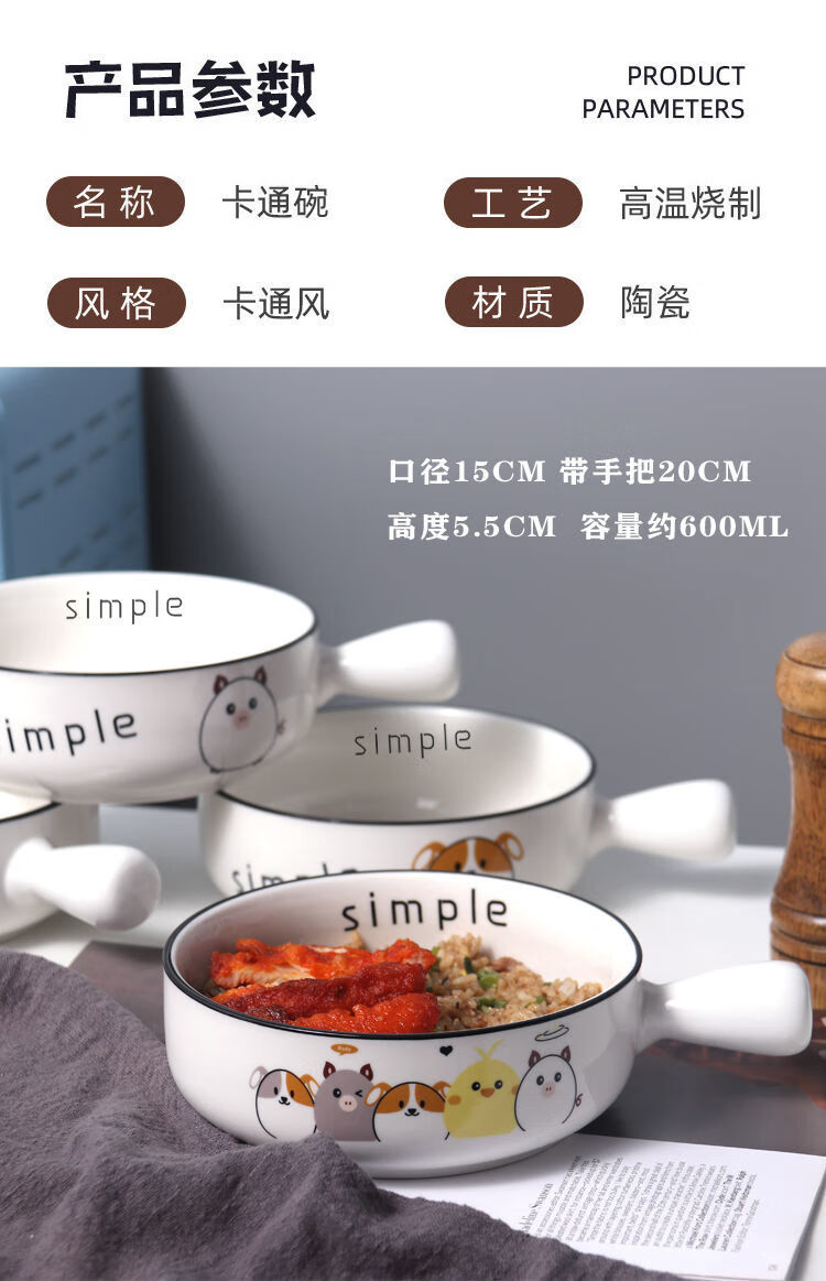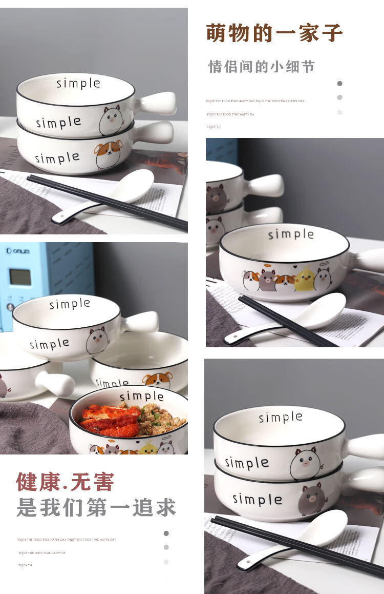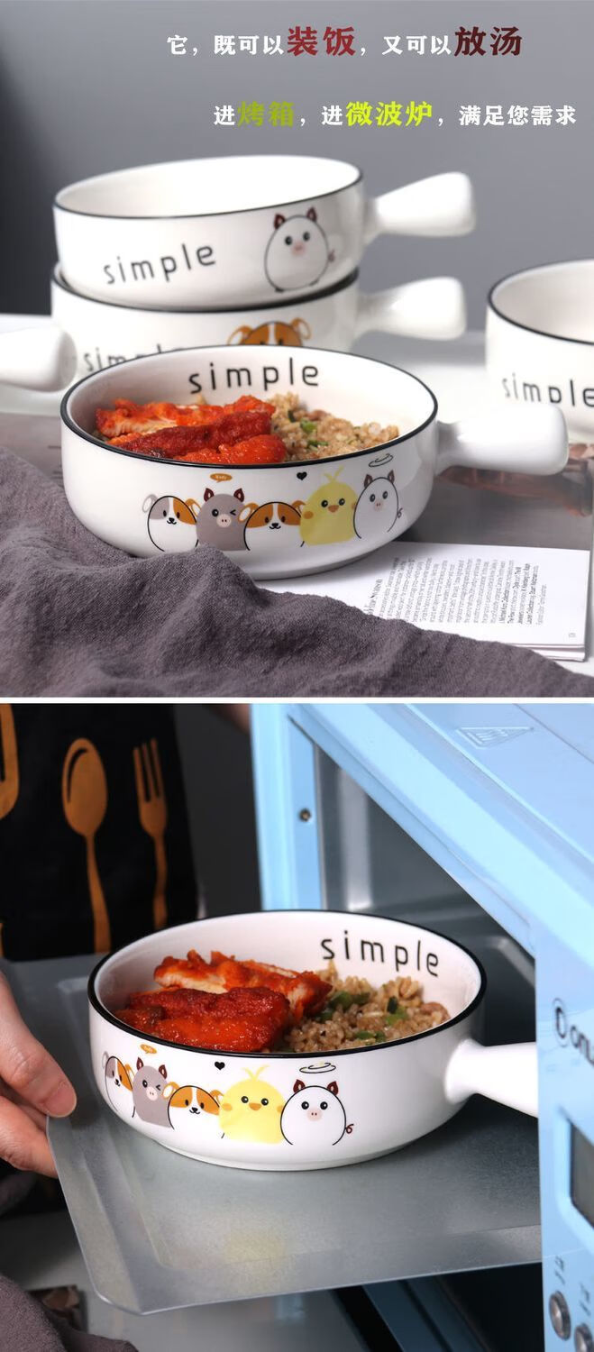 Enshousu Cartoon Cute Ceramic Noodle Bowl Handle Bowl Simple Creative Tableware Household Bowl Baked Breakfast Bowl Microwave Baked Rice Bowl Main Image (Choose One from Two)