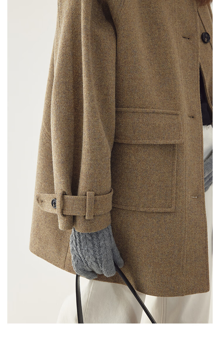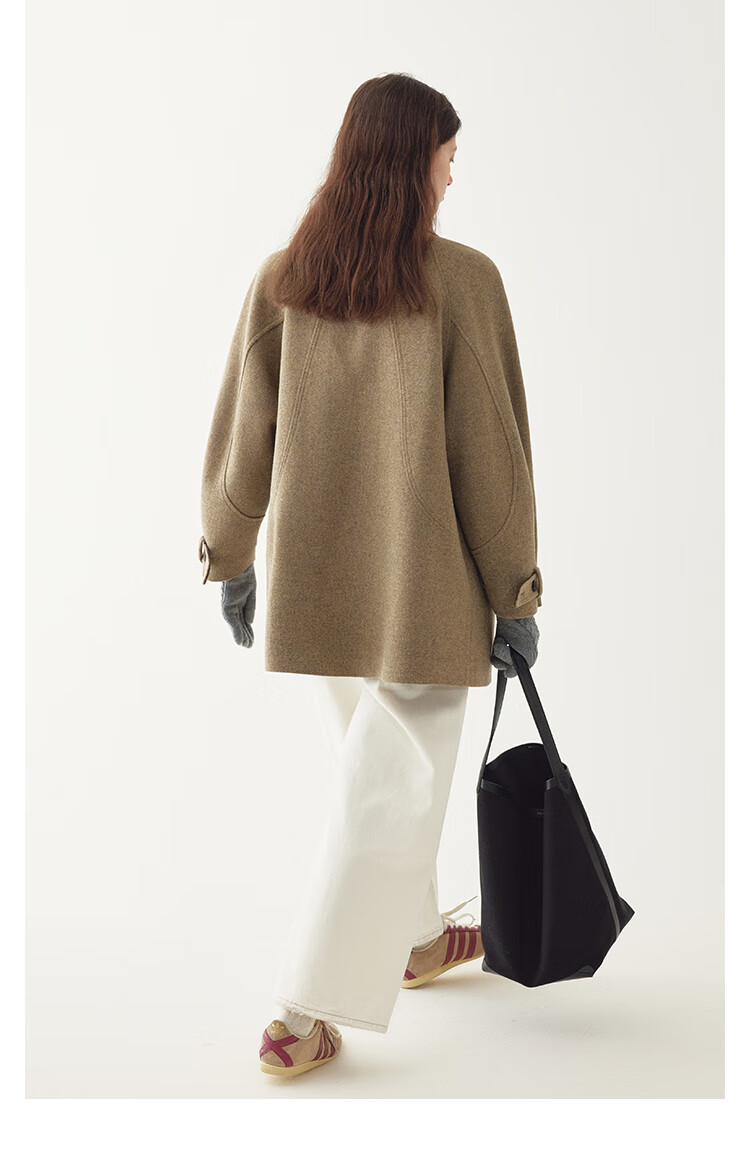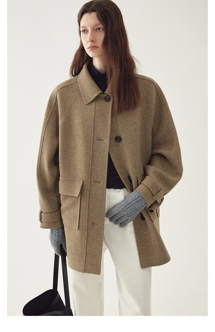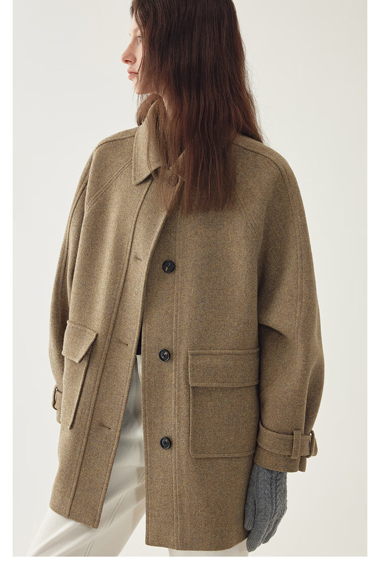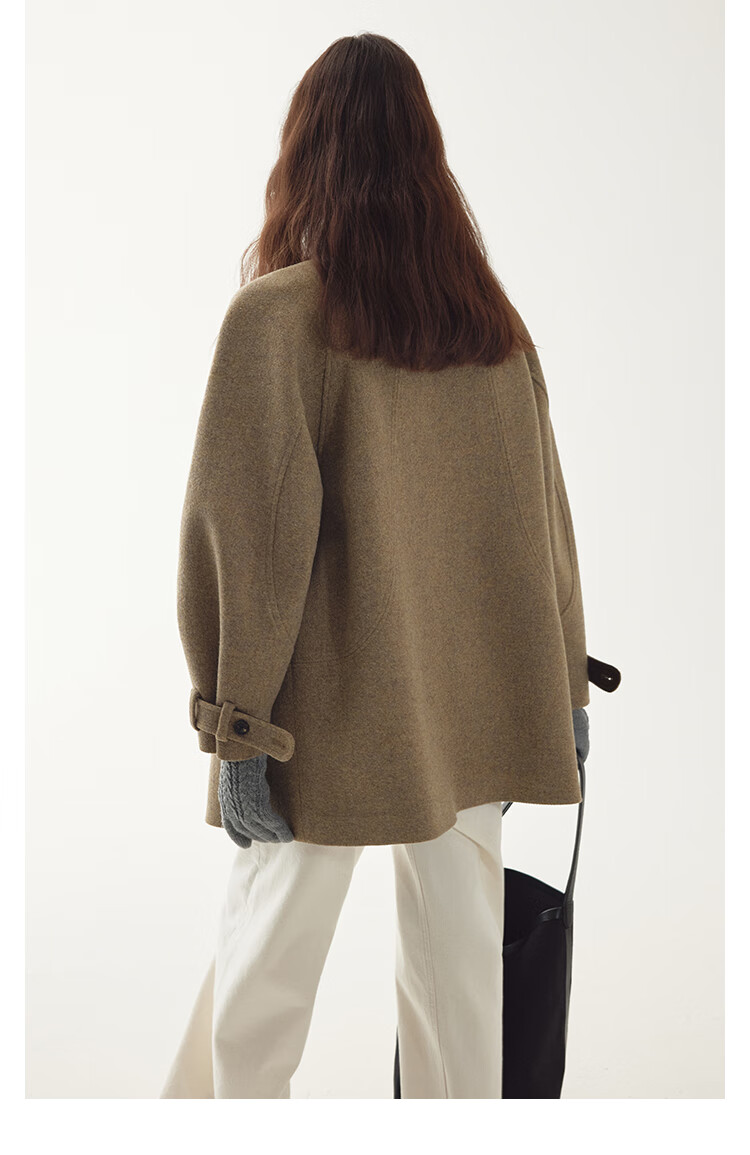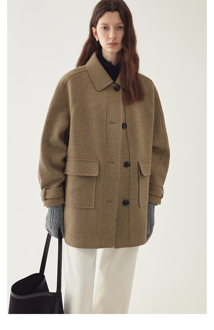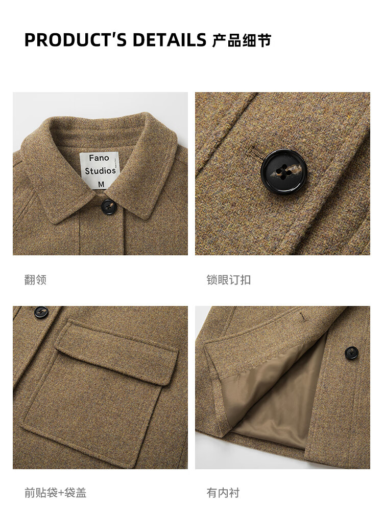 Fano studios Fan Luo Fano 50 wool French woolen short coat for women 2025 winter high-end commuting lapel woolen coat tobacco green S