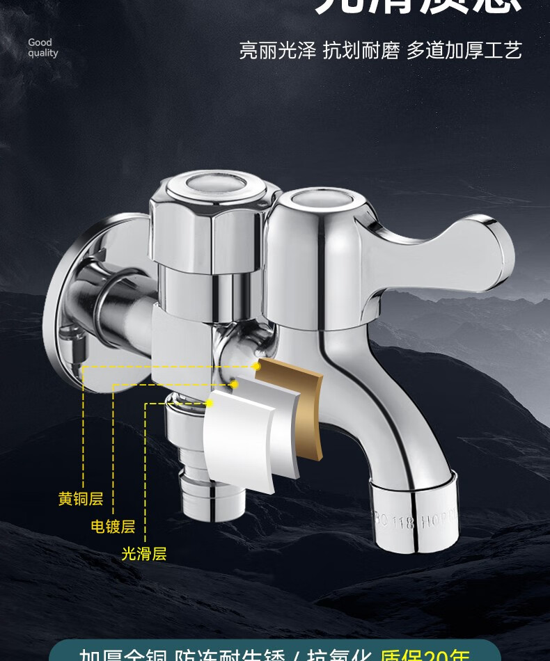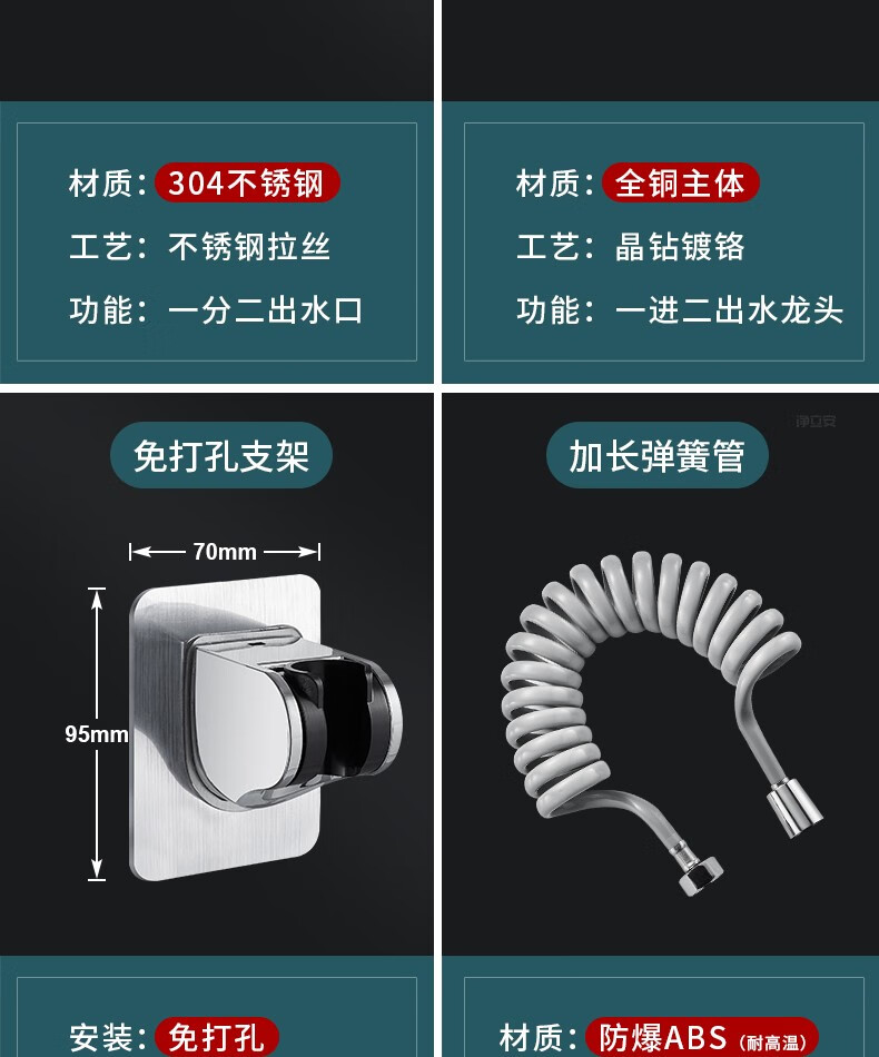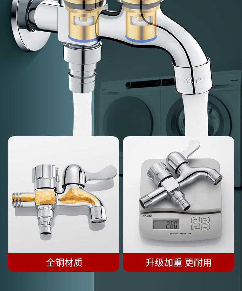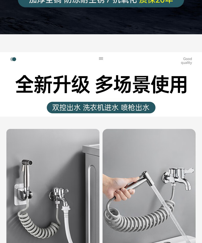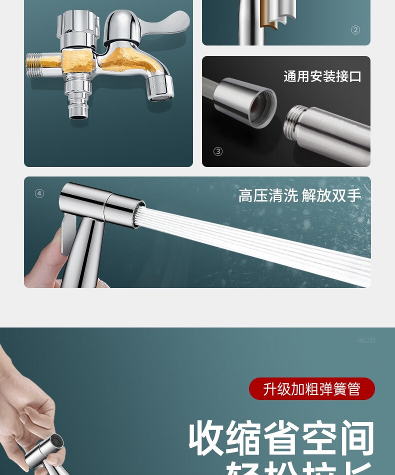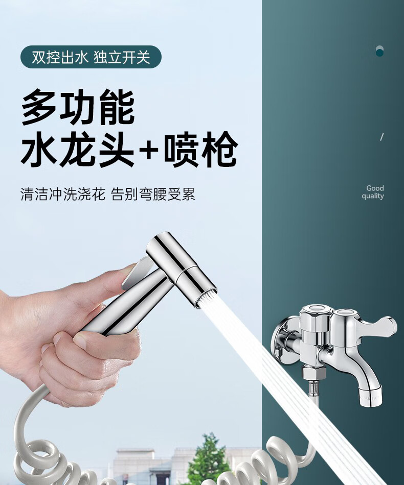 OLEWA Germany Balcony Mop Pool Faucet with Spray Gun Full Copper Body One In and Two Out Bathroom Toilet Companion Copper Faucet + Bracket + 304 Spray Gun + 3 Meter Pipe Independent Dual Control | High-Pressure Spray Gun