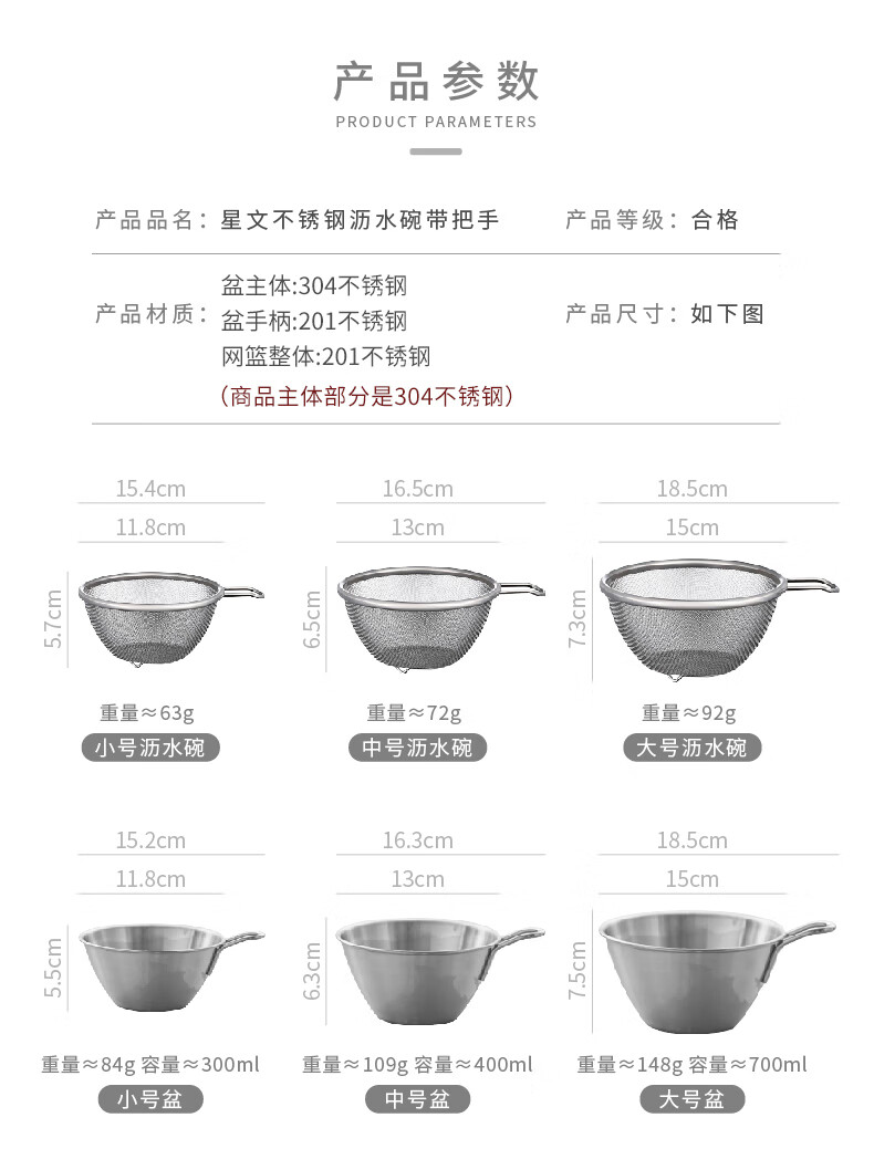 Carlo Le Siyue mini 304 stainless steel drain basket small with handle washing fruit and vegetable basin drain bowl mesh basket rice cleaning artifact 12cm mesh basket 201 stainless steel with handle