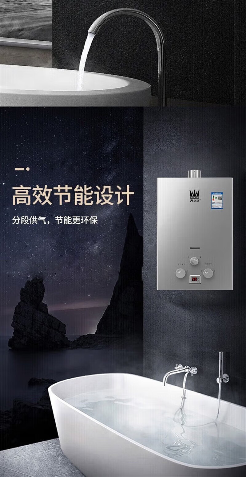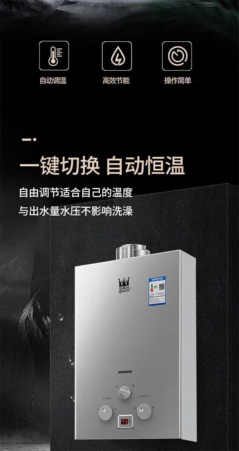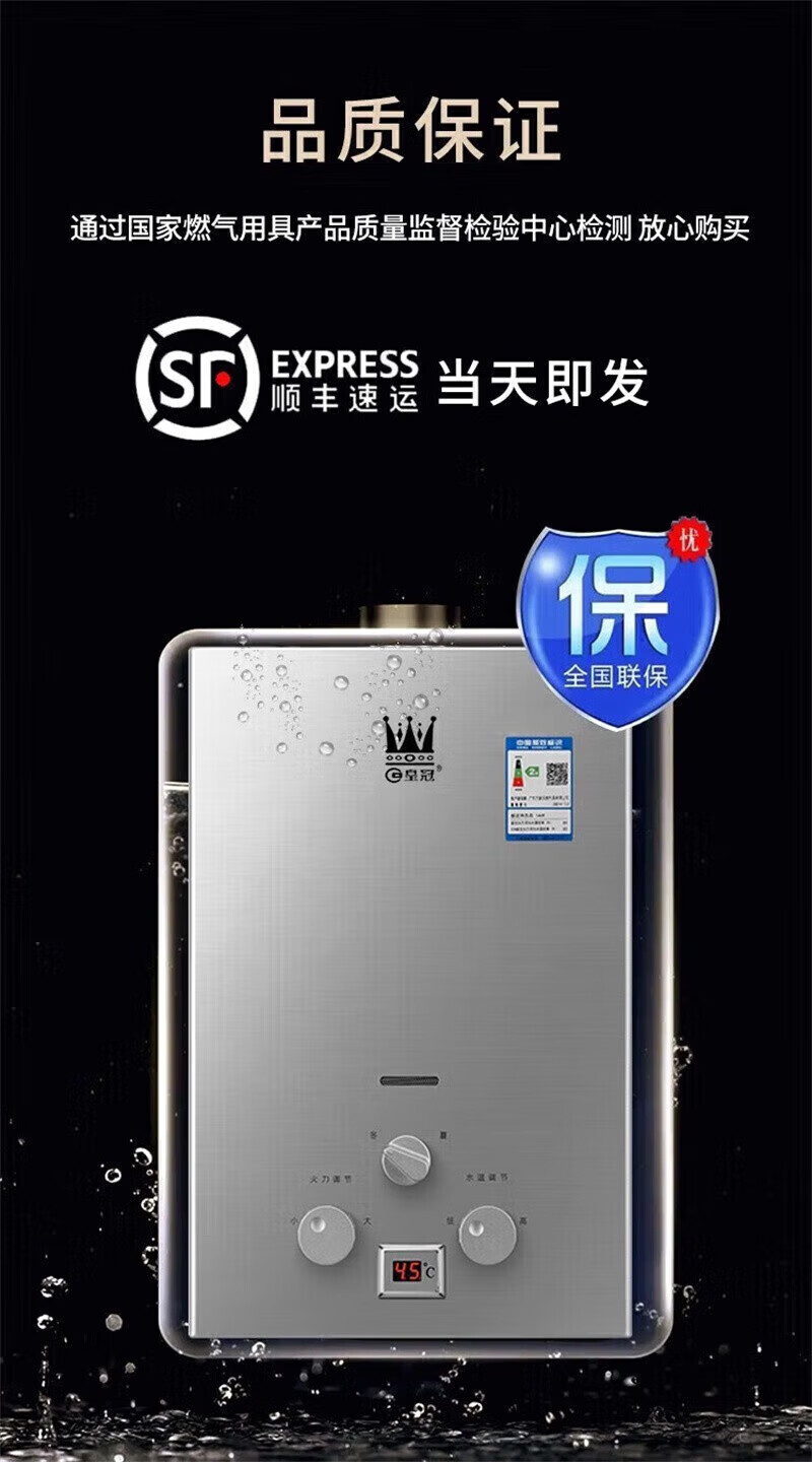 Crown Guangdong next day delivery gas model water heater gas natural gas liquefied gas 10,000 household battery model namely Rele 7L battery model + copper water tank + gas