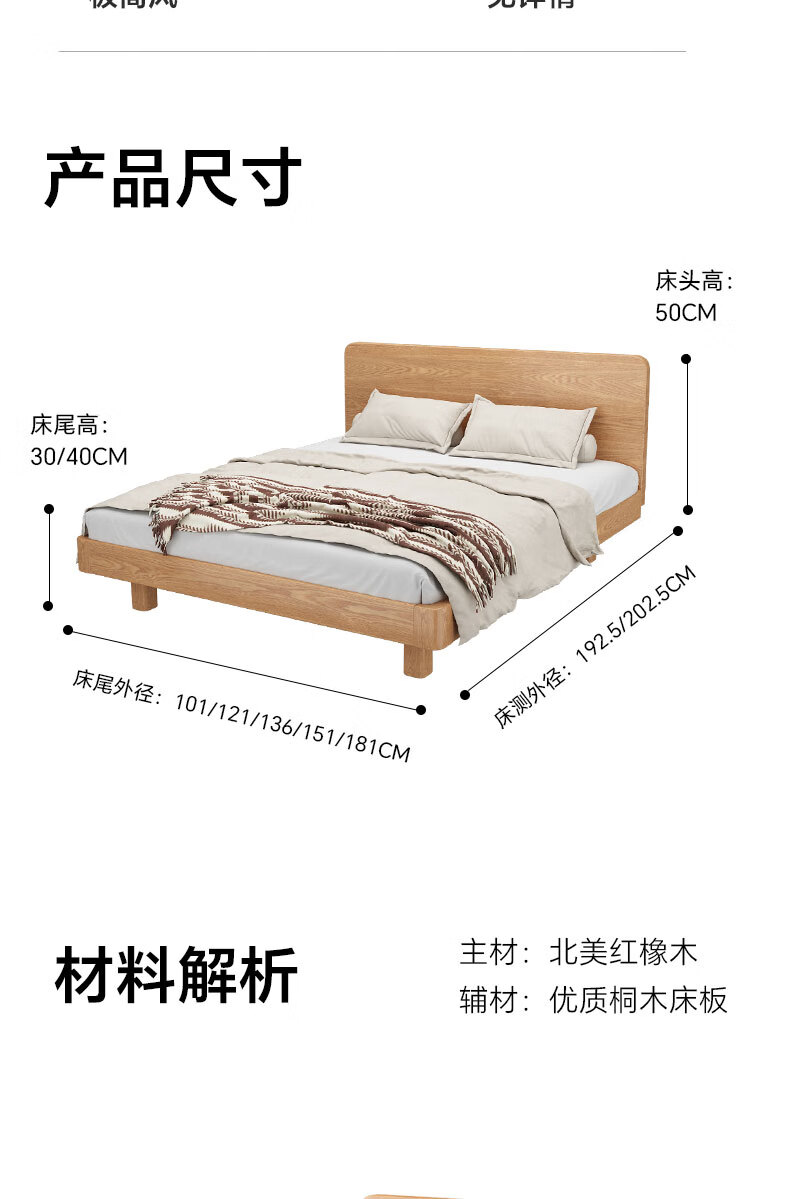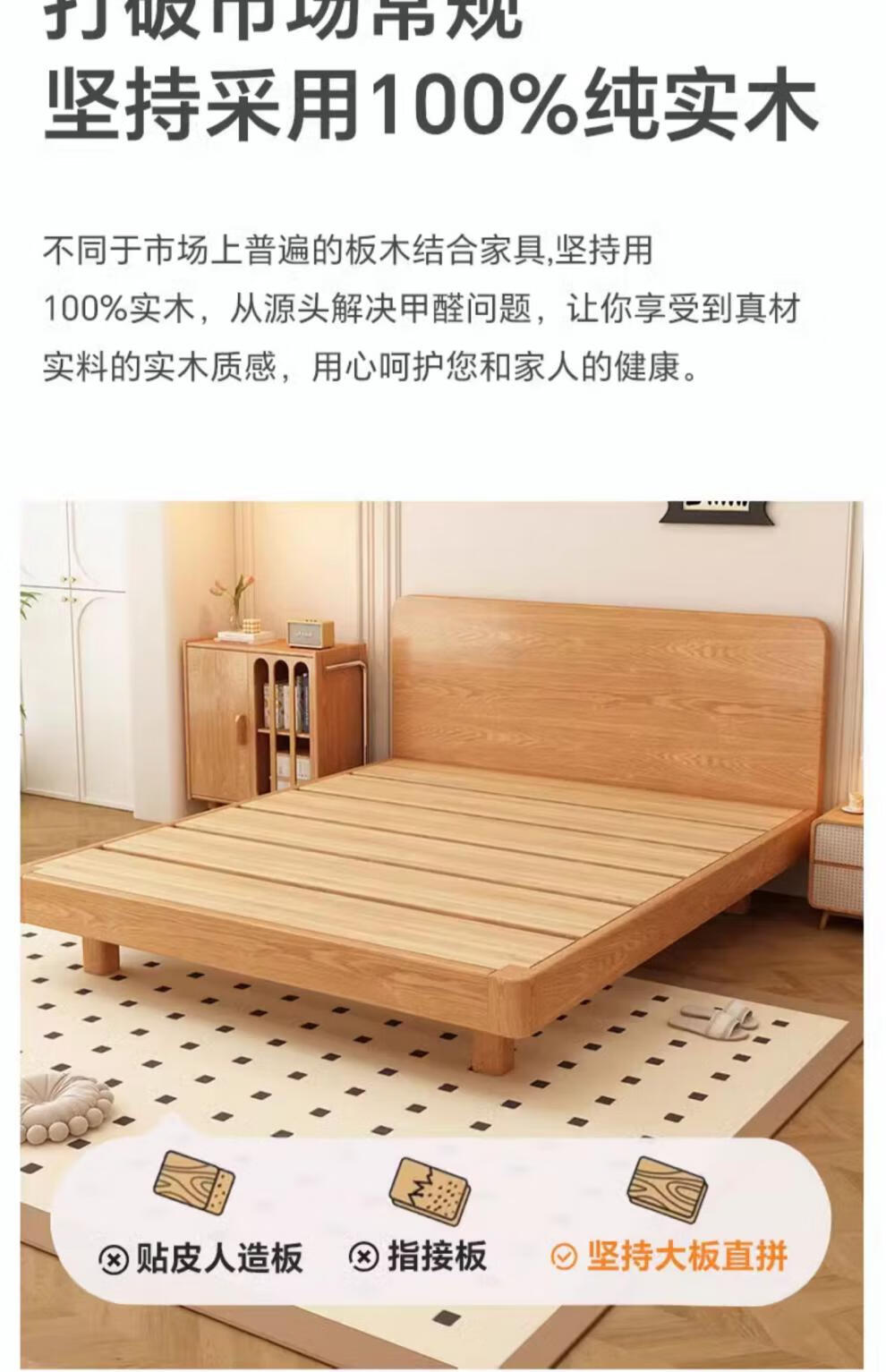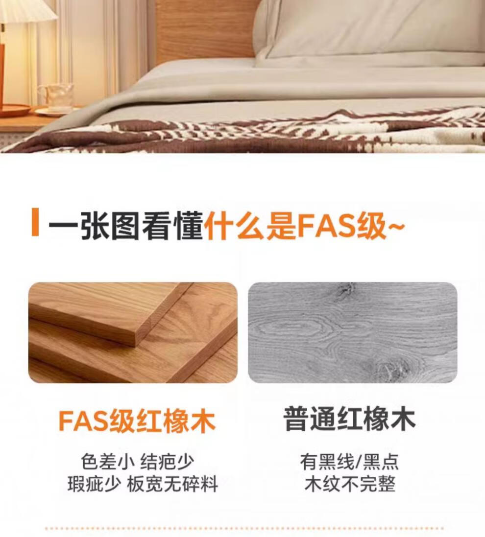 Visibility bed 2024 new FAS North American red oak solid wood bed 1.8 meters double bed 180x200 bed frame home bedroom solid wood color suspended bed bed height 30CM +10CM 1800mm*1900mm