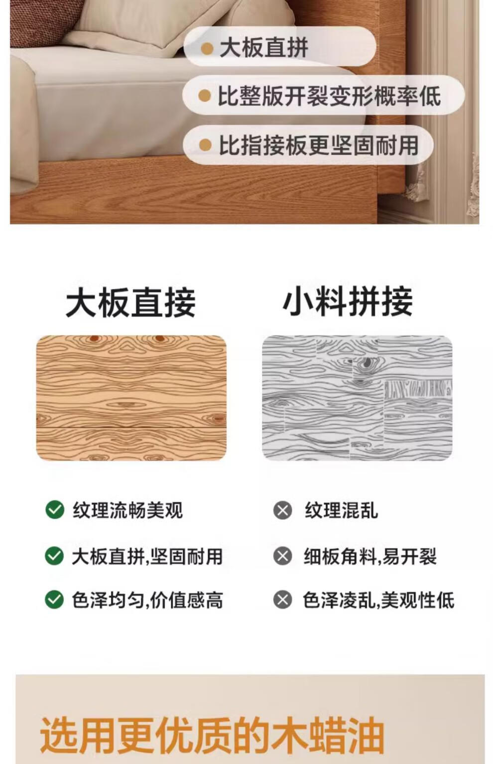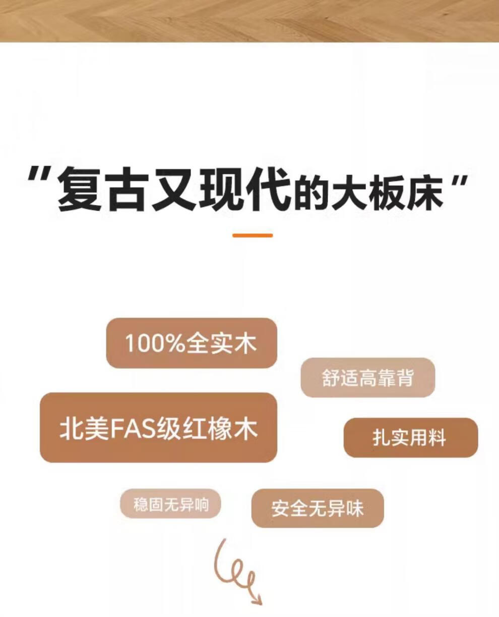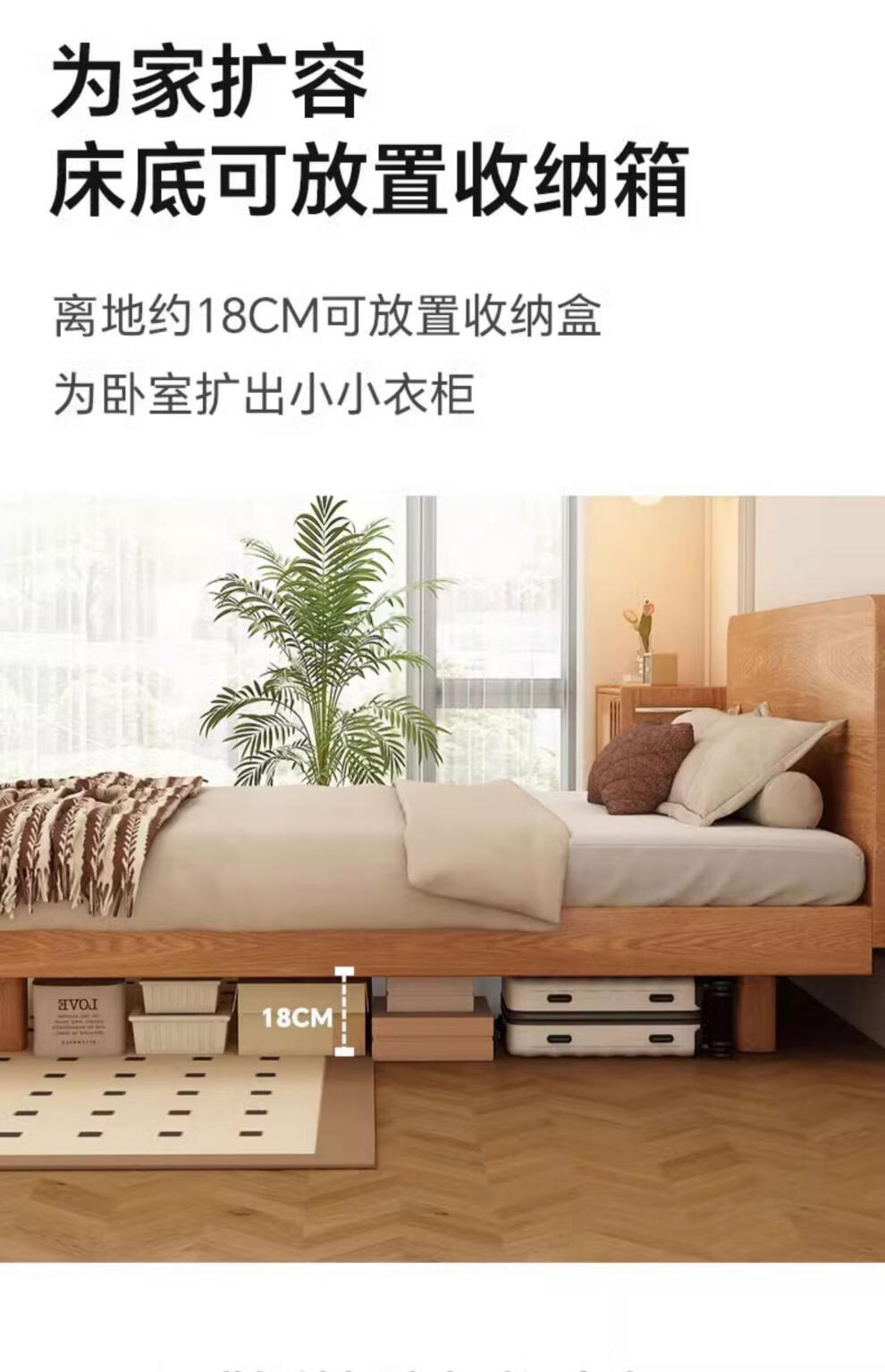 Visibility bed 2024 new FAS North American red oak solid wood bed 1.8 meters double bed 180x200 bed frame home bedroom solid wood color suspended bed bed height 30CM +10CM 1800mm*1900mm