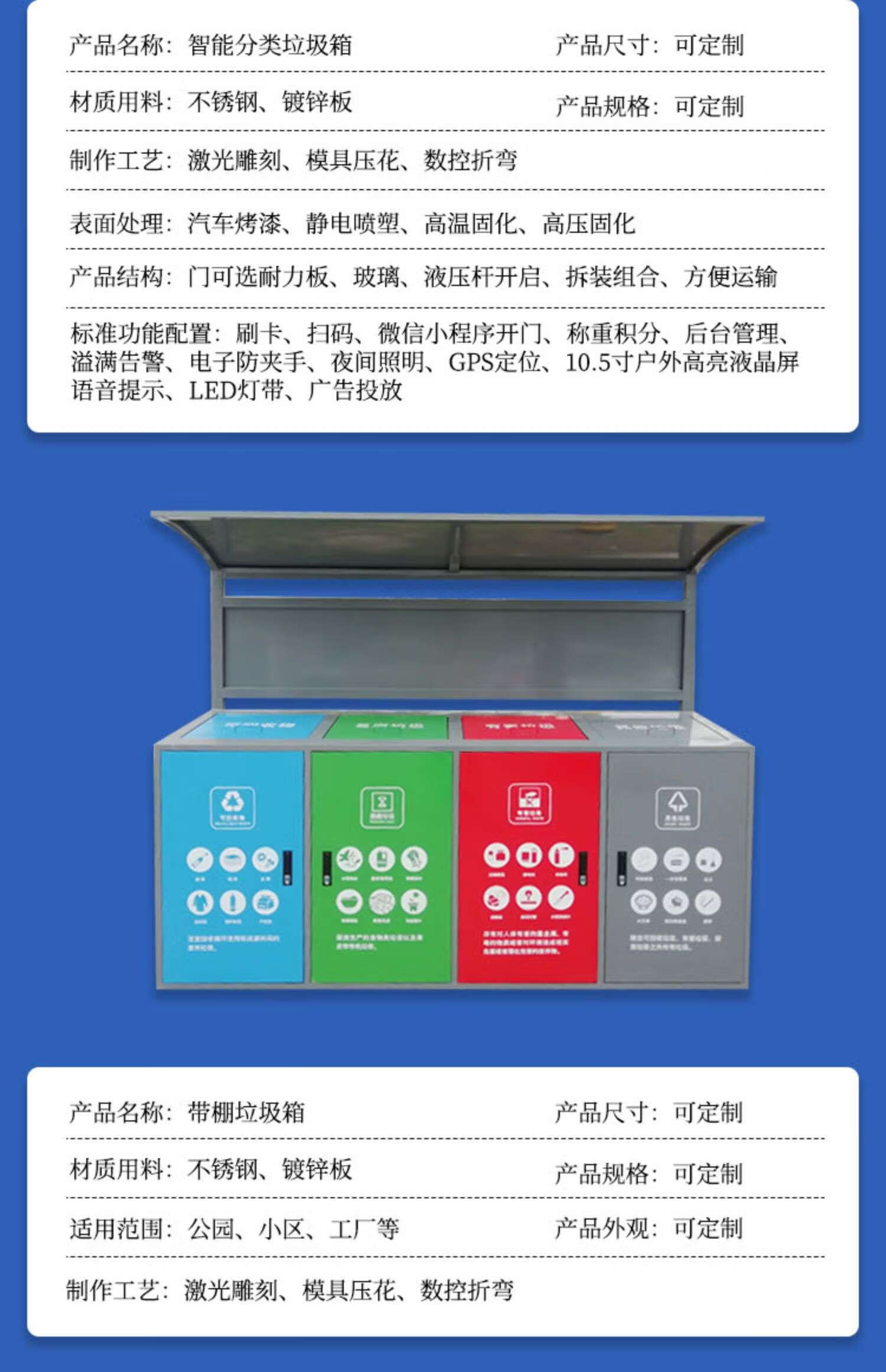 Outdoor smart garbage classification box customized community garbage classification collection kiosk commercial sanitation solar recycling box gray