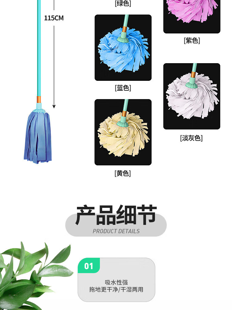 Buckskin towel mop, round head, old-fashioned absorbent mop, chicken skin floor mop, property cleaning company household beige, one size fits all