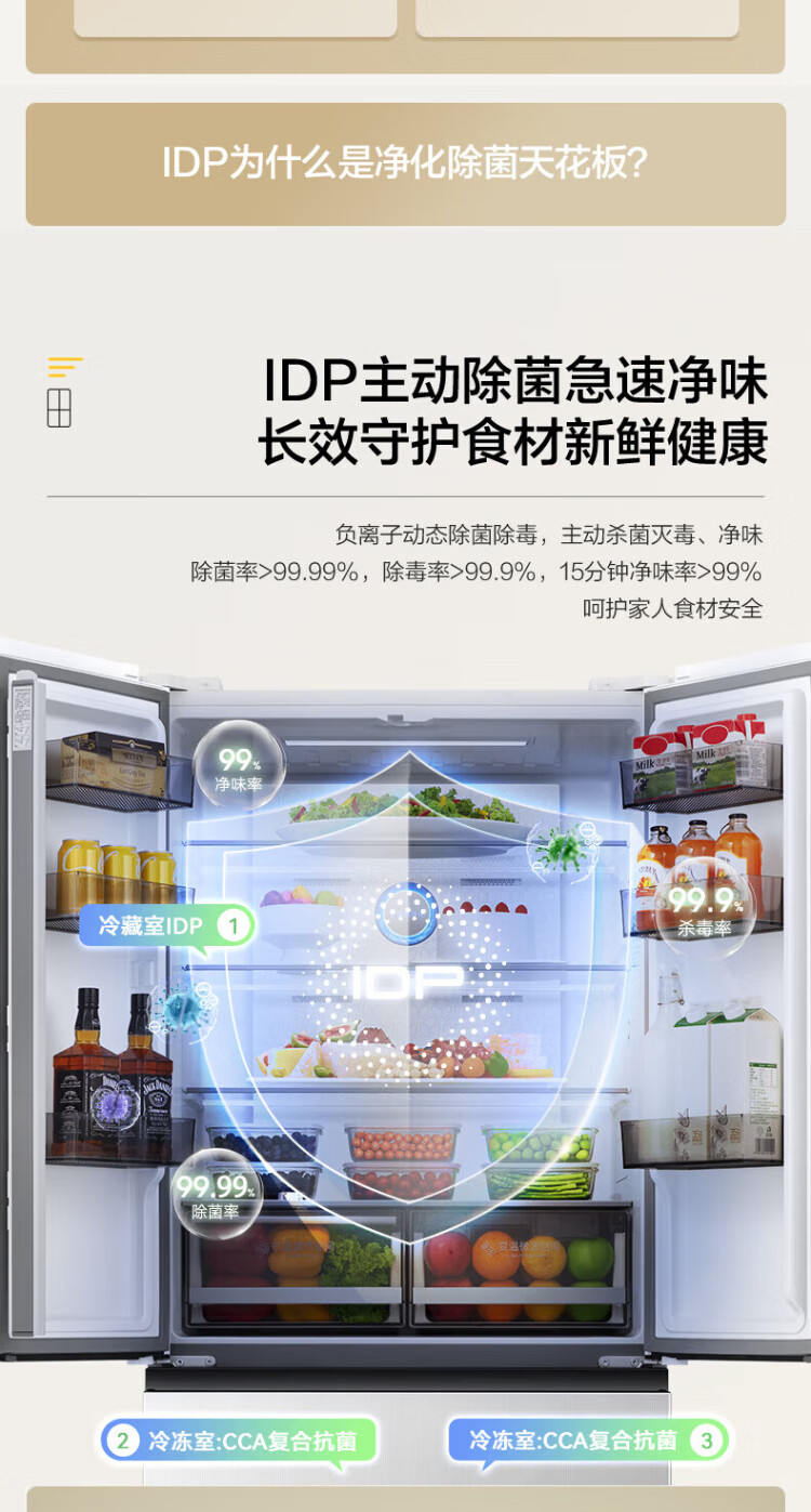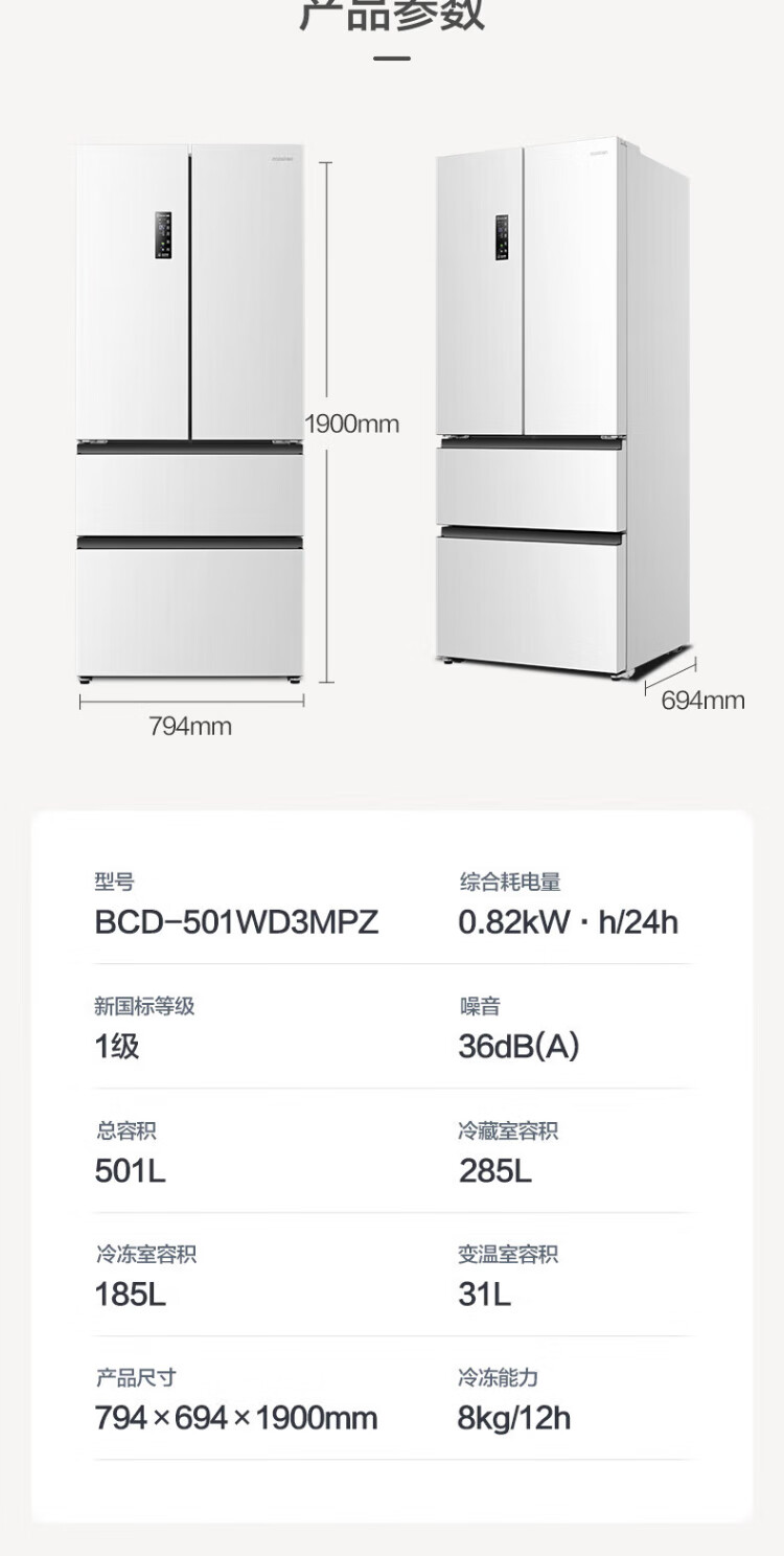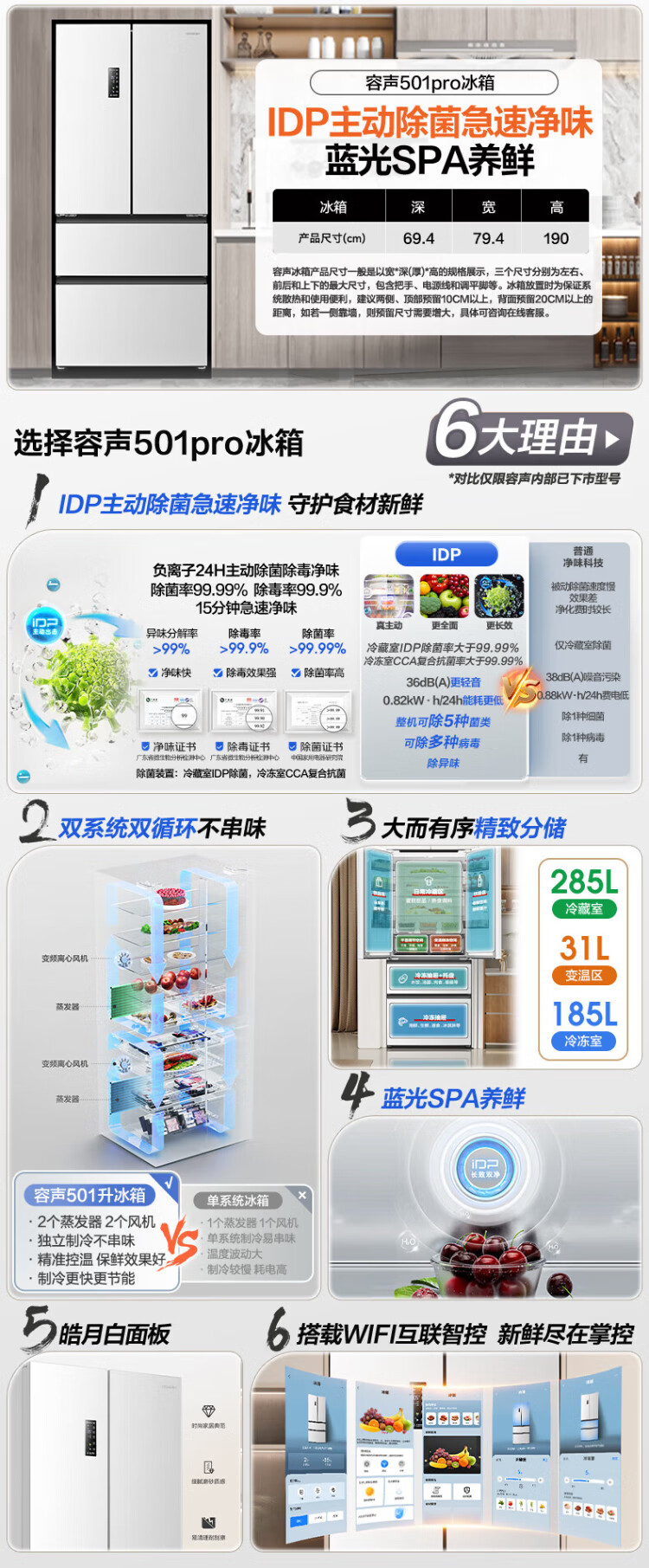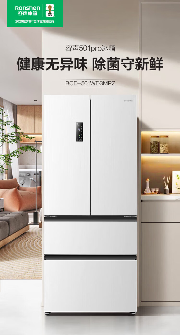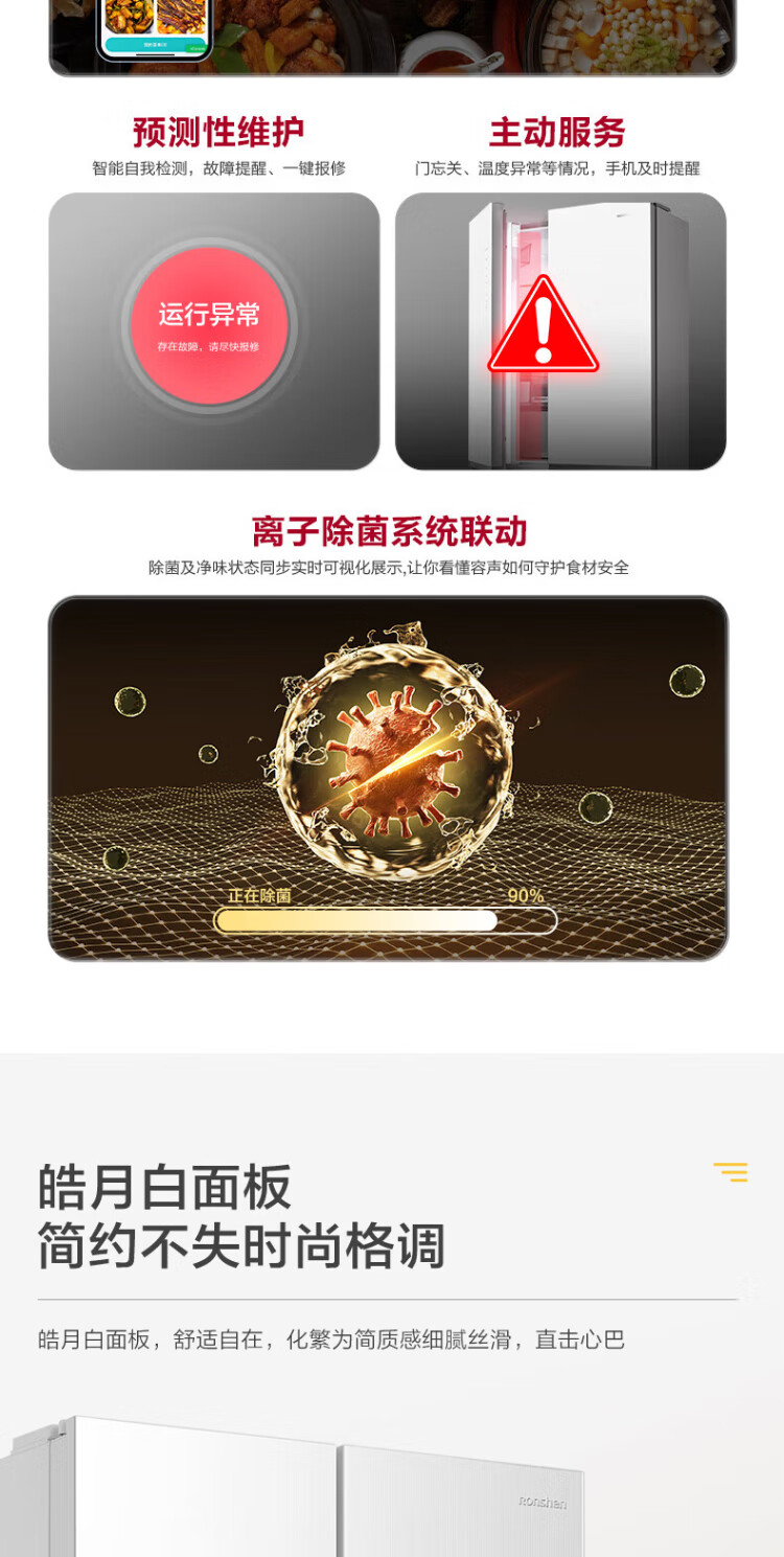 Rongsheng 501pro IDP double purification French multi-door refrigerator embedded first-class energy efficiency variable frequency ultra-thin active sterilization dual cycle dual system refrigerator Home appliances national subsidy 20% IDP active sterilization | dual system | 501L white
