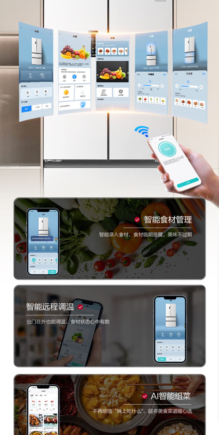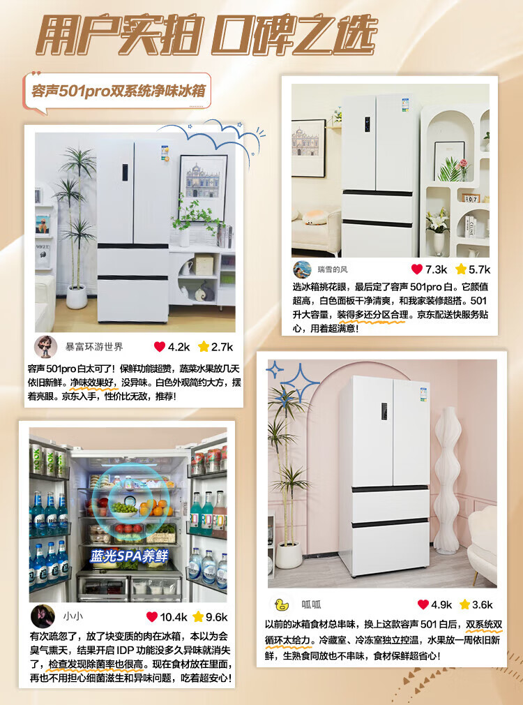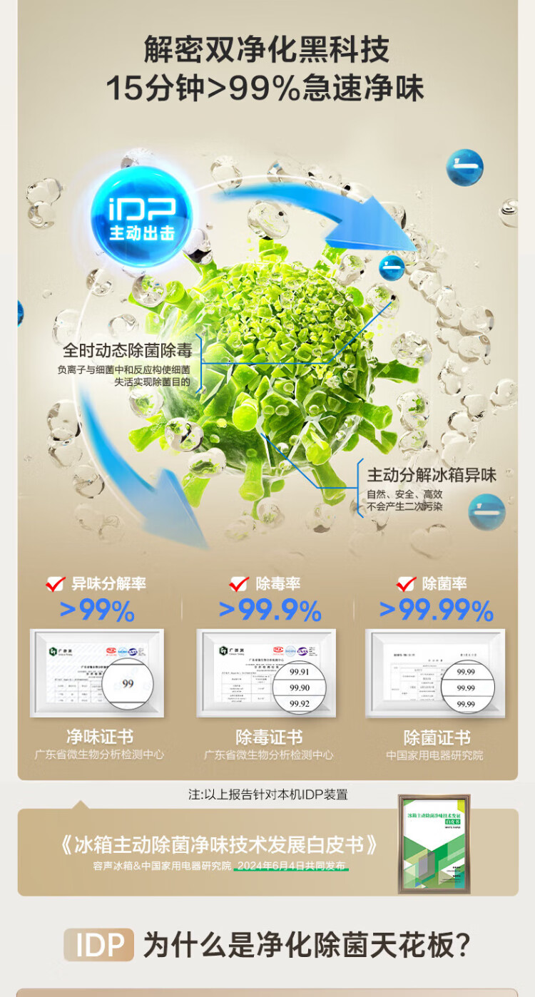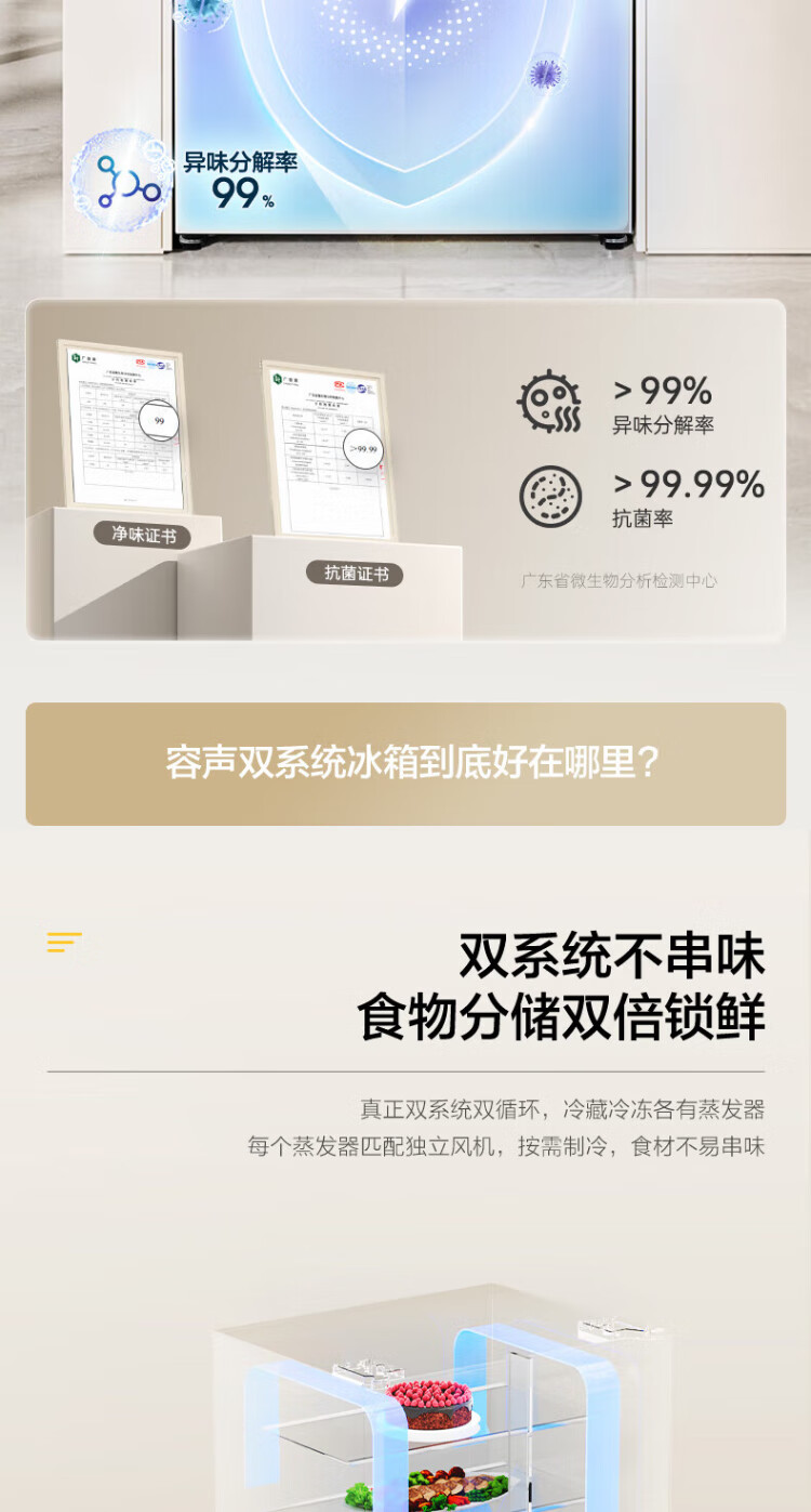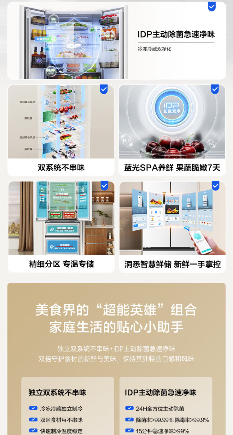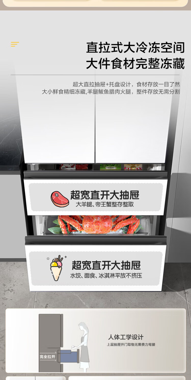 Rongsheng 501pro IDP double purification French multi-door refrigerator embedded first-class energy efficiency variable frequency ultra-thin active sterilization dual cycle dual system refrigerator Home appliances national subsidy 20% IDP active sterilization | dual system | 501L white