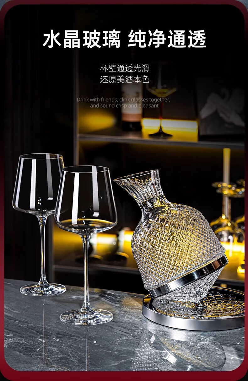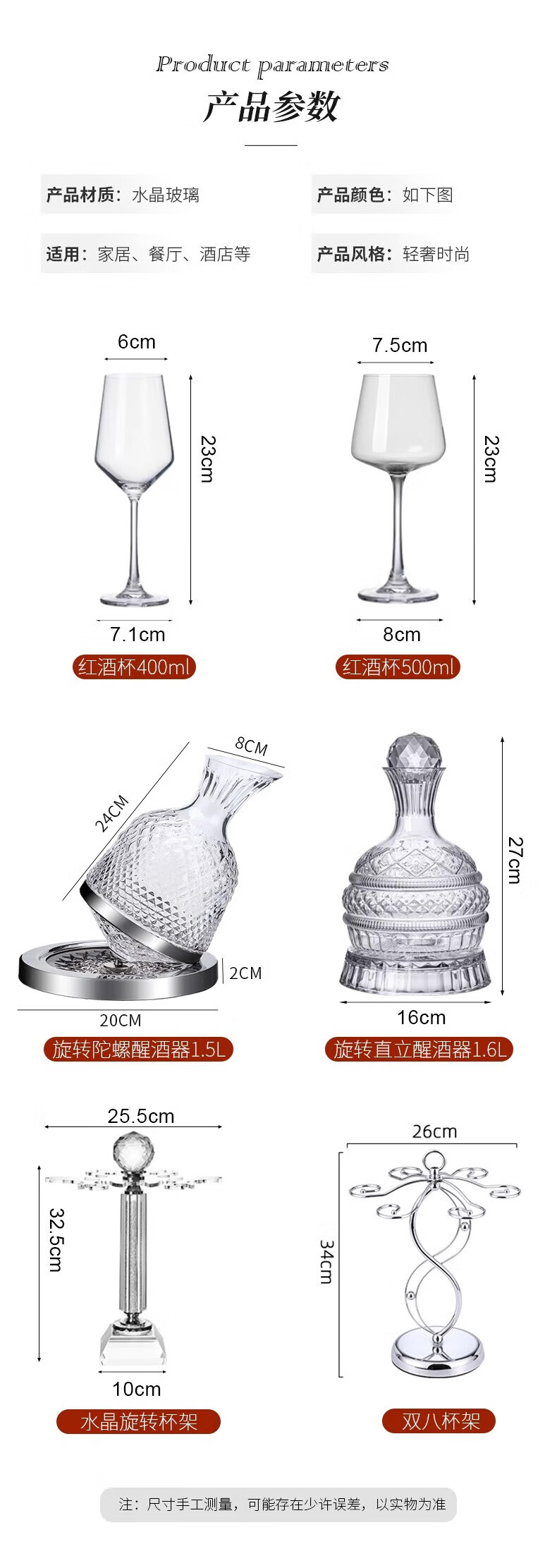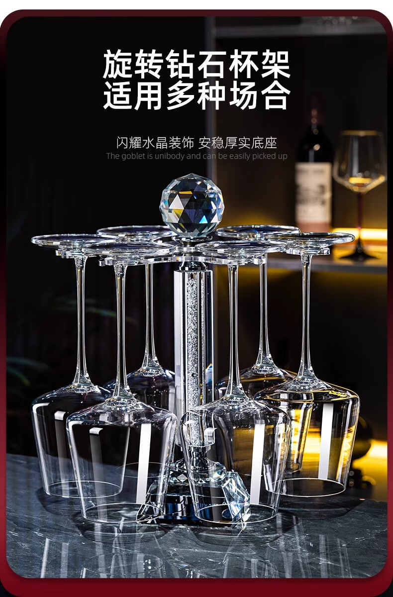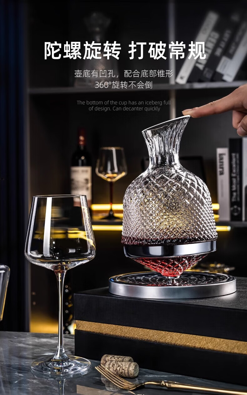 Depinte Crystal Red Wine Glass Rotating Decanter Goblet Wine Glass Home Light Luxury High-end Creative Wine Set 6 Crystal 425ml Red Wine Glass Silver Diamond Cup Holder Decanter