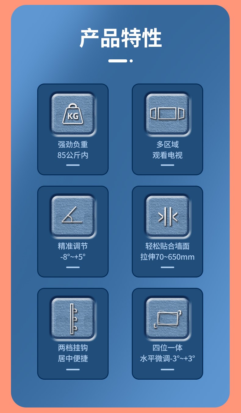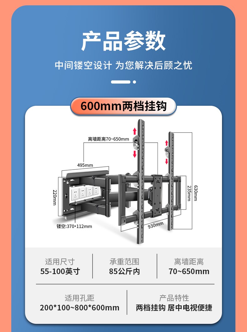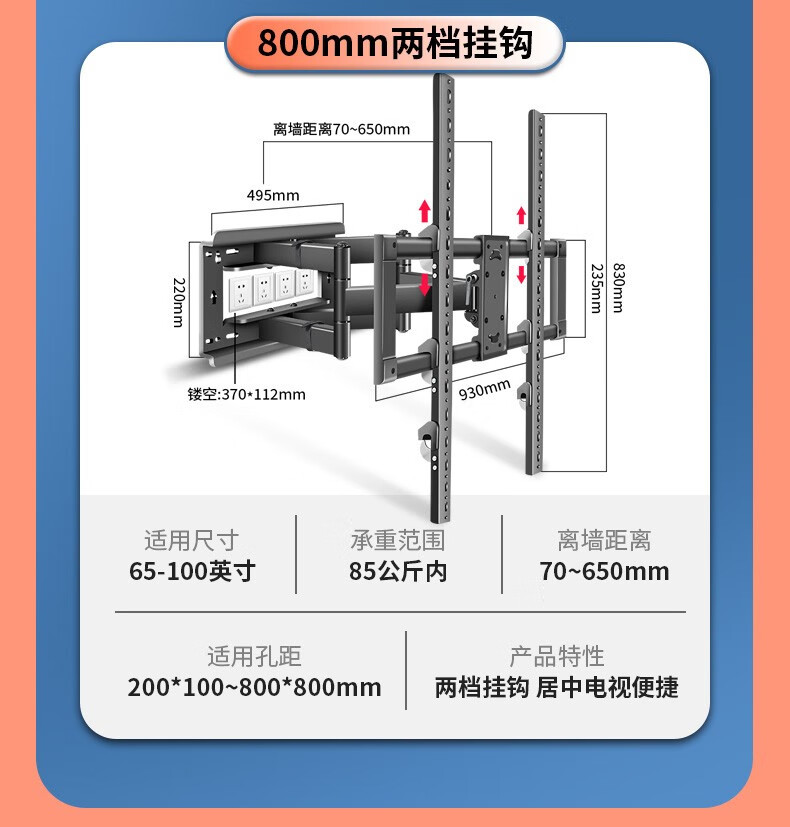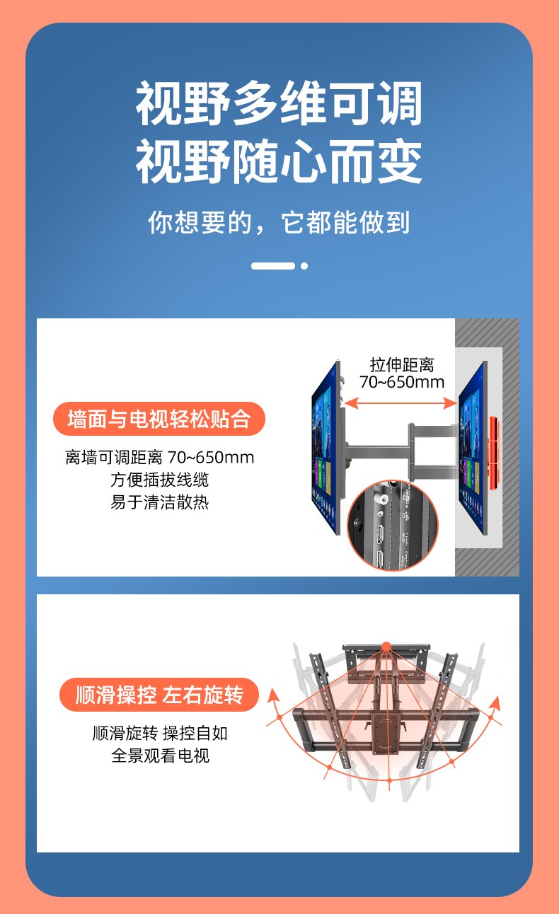 Sance (HILLPORT) 60-65-75-85 inches suitable for Xiaomi, Redmi, Hisense Thunderbird, Huawei Skyworth TV telescopic rotating rack 8-arm 10-arm universal bracket DY999S 55-120 inches ultra-thin rack industry - DY1030