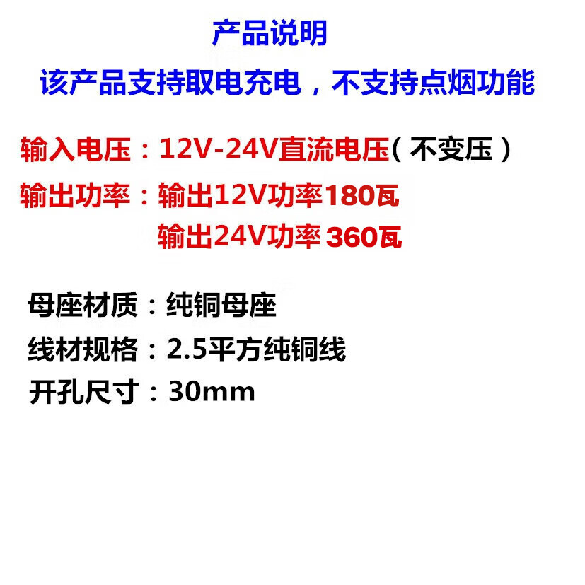 Wing Ying car cigarette lighter female base 12V24V universal high-power car cigarette lighter power socket car charger base 2.5 2.5 square meters without insurance without copper nose 1 meter wire