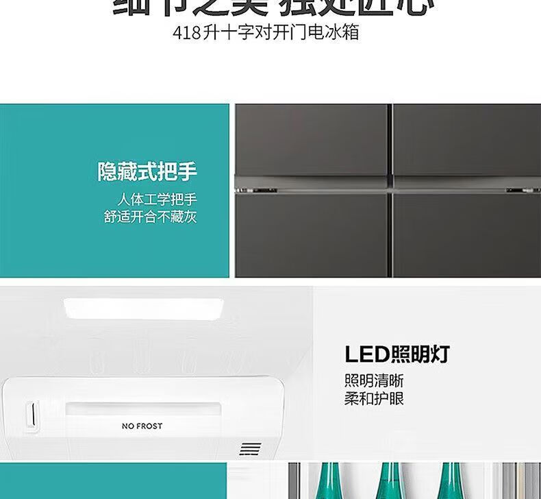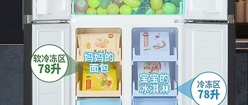 KEPCO four-door double-door household direct cooling air-cooled frost-free refrigerator mini small energy-saving dormitory rental room fresh-keeping refrigerator folio silver gray 1.77 meters high 508 liters air-cooled 1 level