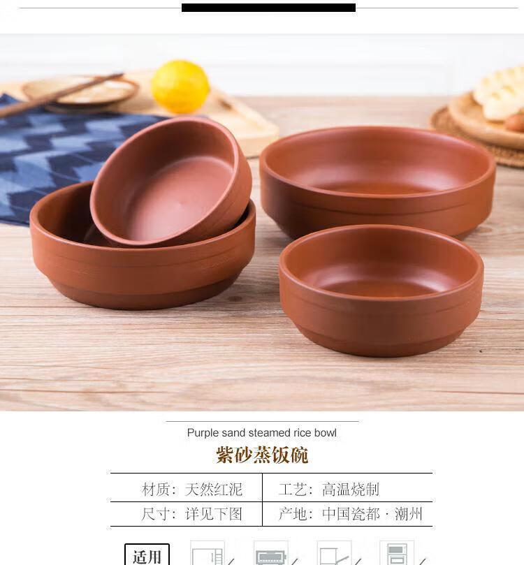 Jingle purple clay steamed rice bowl, steamed vegetable bowl, steamed egg bowl, clay ceramic bowl, stoneware bowl, hotel restaurant sanded soup bowl 5 inches