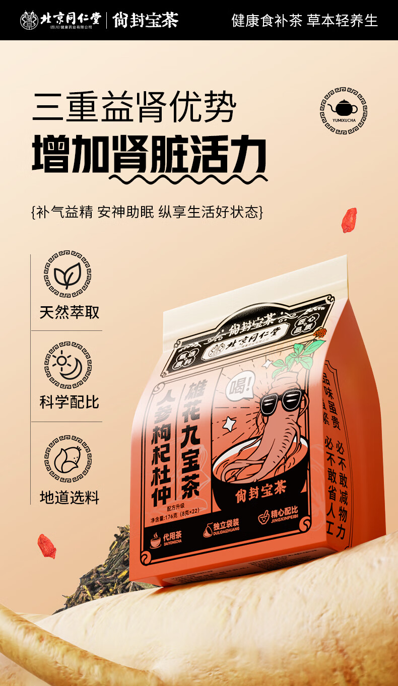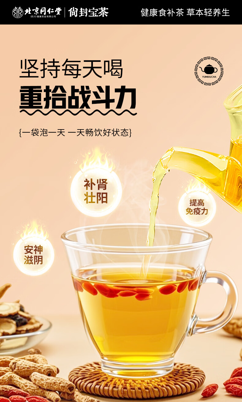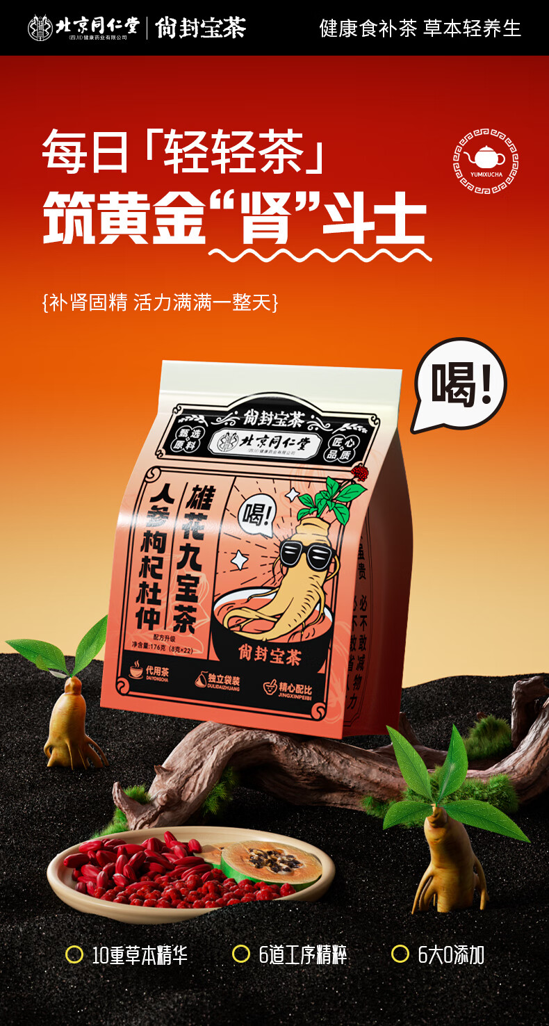 Beijing Tong Ren Tang ginseng, wolfberry nine treasures health tea, wolfberry mulberries, kidney-tonifying tea, black wolfberry, red dates, kidney-tonifying and yang eight-treasure and six-treasure tea, one bag of 22 packs of kidney-tonifying, impotence-enhancing eight-treasure and six-treasure tea, four-treasure tea for sensitive kidney deficiency, traditional Chinese medicine ten-treasure tea, combined with aphrodisiacs, long-lasting erection without ejaculation, delayed hardening, thickening, premature ejaculation, health-care eight-treasure tea.