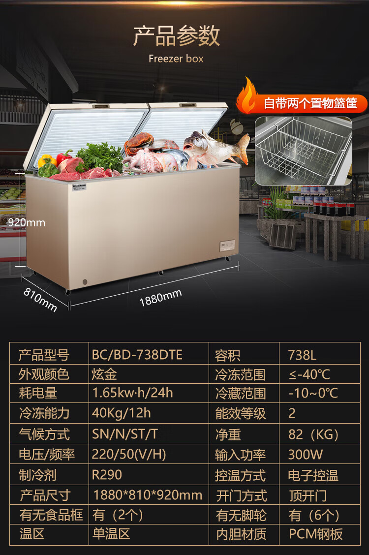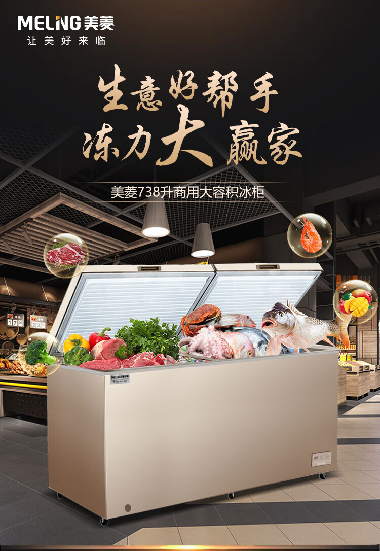 Meiling - 40 degrees ultra-low temperature | Meiling commercial freezer 738 liters large capacity horizontal refrigeration freezer single temperature refrigerator 426 liters - 40 degrees deep freezing quick freezing computer temperature control